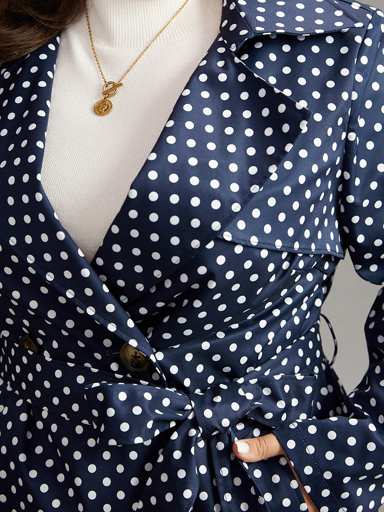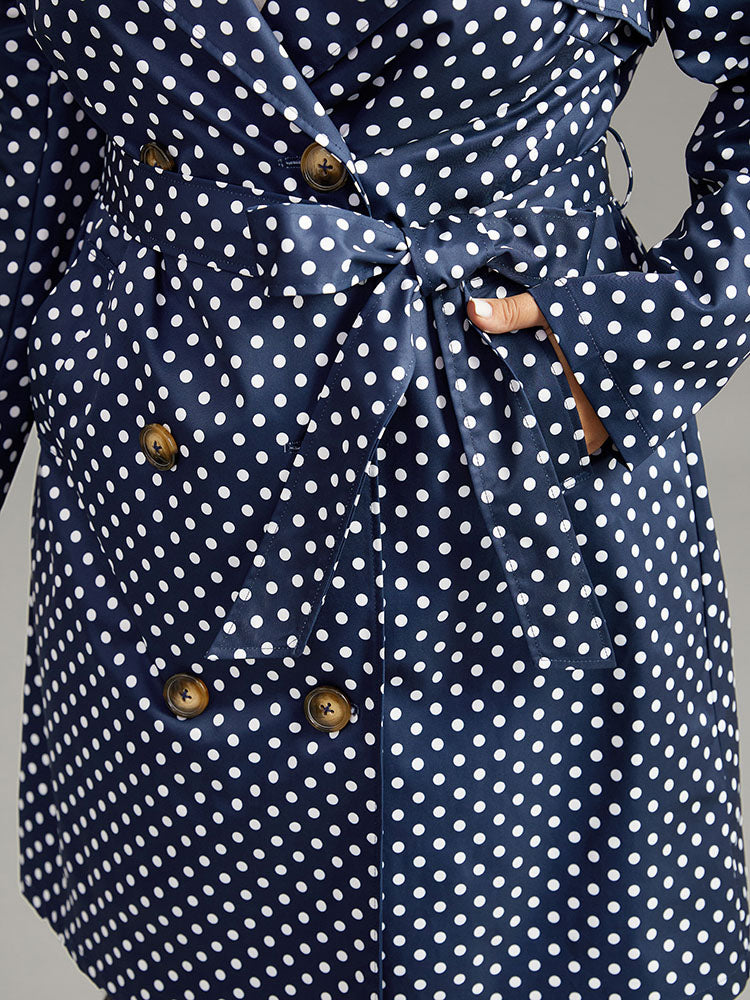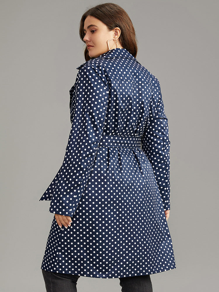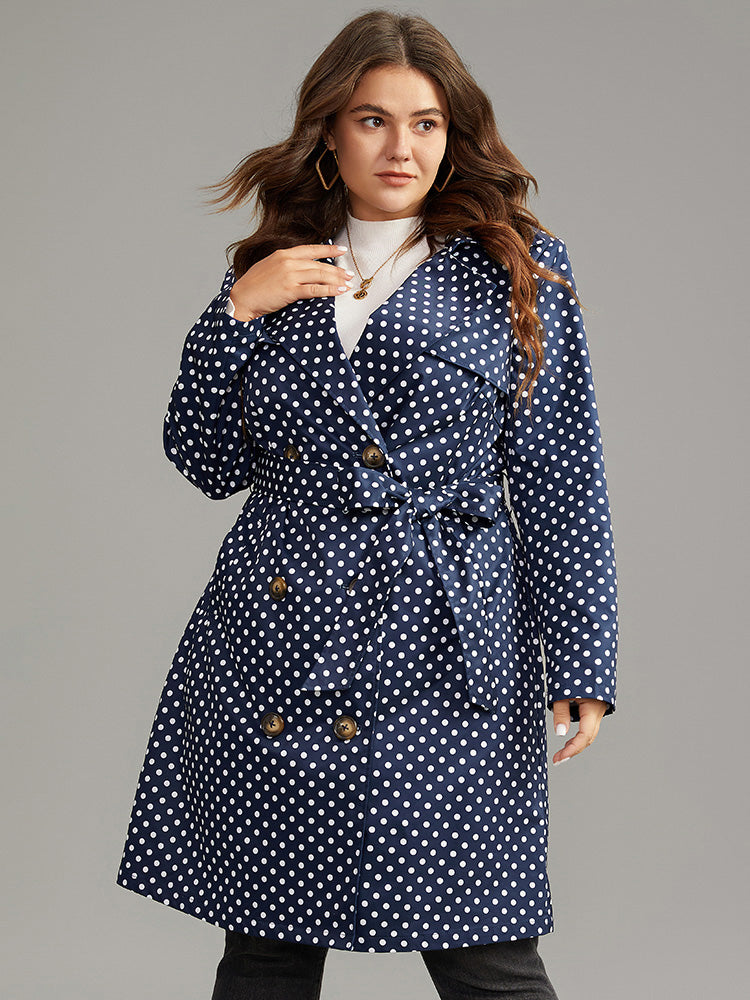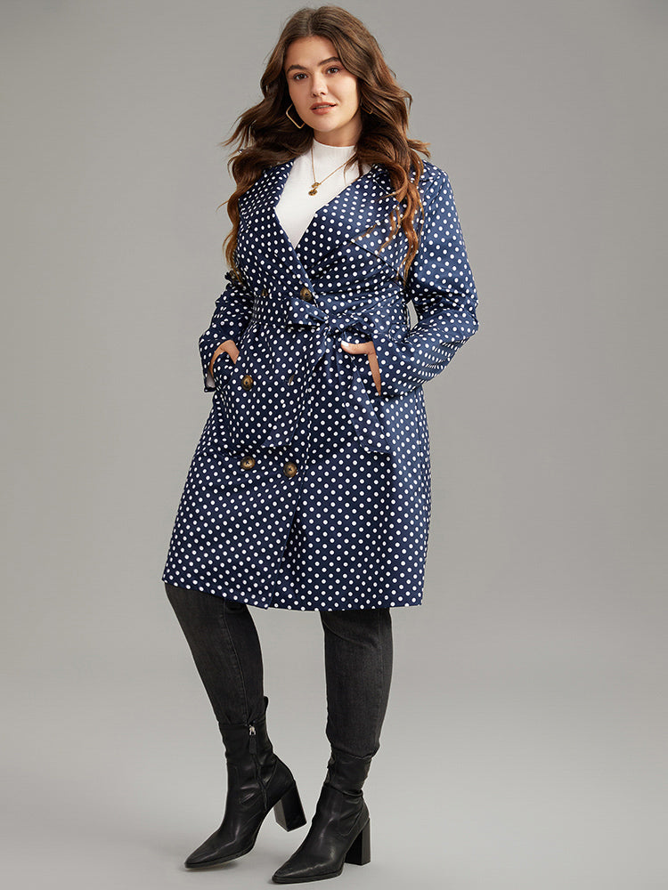 Shop Static-Free Polka Dot Belted Double Breasted Coat now and redefine your style with confidence at BloomChic. Tailored for mid and plus-size women. This trendy Outerwear Women, sizes 10-30. Season:Winter;Color:Indigo;Style:Casual;Pattern Type:Polka Dot;Details:Pocket, Belted, Contrast, Double-Breasted;Pocket:It is perfectly sized to carry a phone.;Belt:Belt;Closure Type:Button;Lining:No-lining