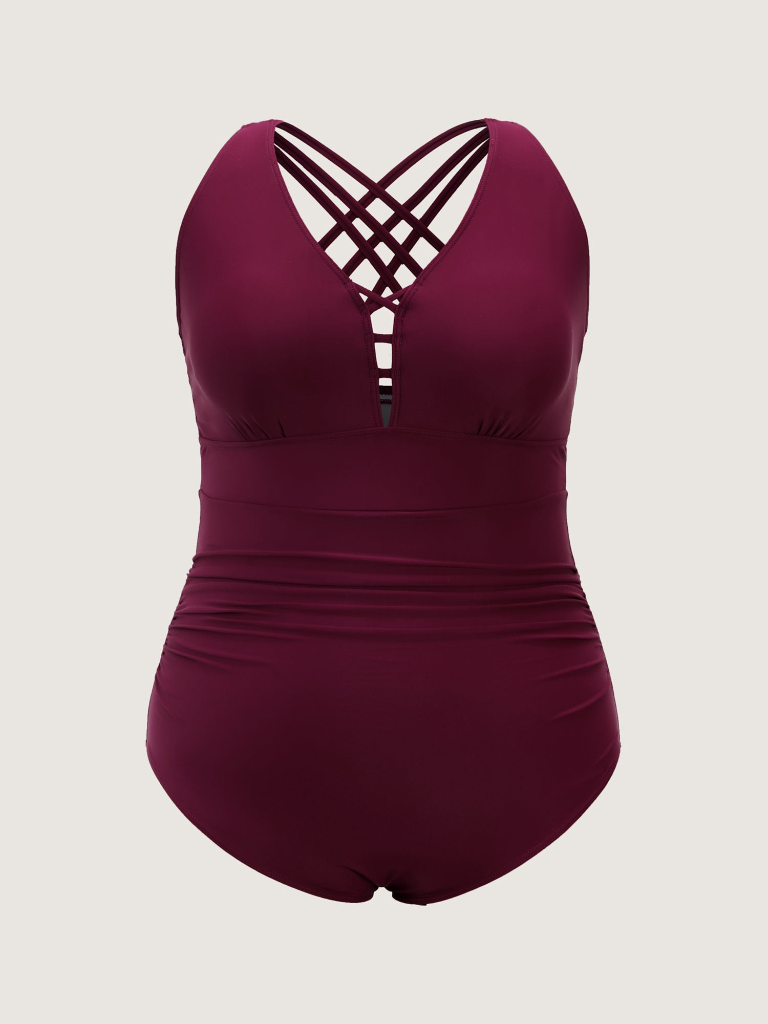 Shop Crosstraps Back Tummy-Control One-Piece Swimsuit now and redefine your style with confidence at BloomChic. Tailored for mid and plus-size women. This trendy Swimwear Women, sizes 10-30. Color:Burgundy;Style:Resort;Cup Type:Removable cups;Neckline:V-neck;Sleeve Type:Sleeveless;Prints:Non;Details:Cut-Out, Cross straps;Pocket:No-pocket;Belt:No-belt;Chest pad:Removable Padding;Lining:Lining;Closure Type:Non;Structural function:Tummy-Sculpt,Adaptive-Fit;Swimsuit types:One-Piece Triangle Swimsuit;Functional Fabric:Chlorine Resistant