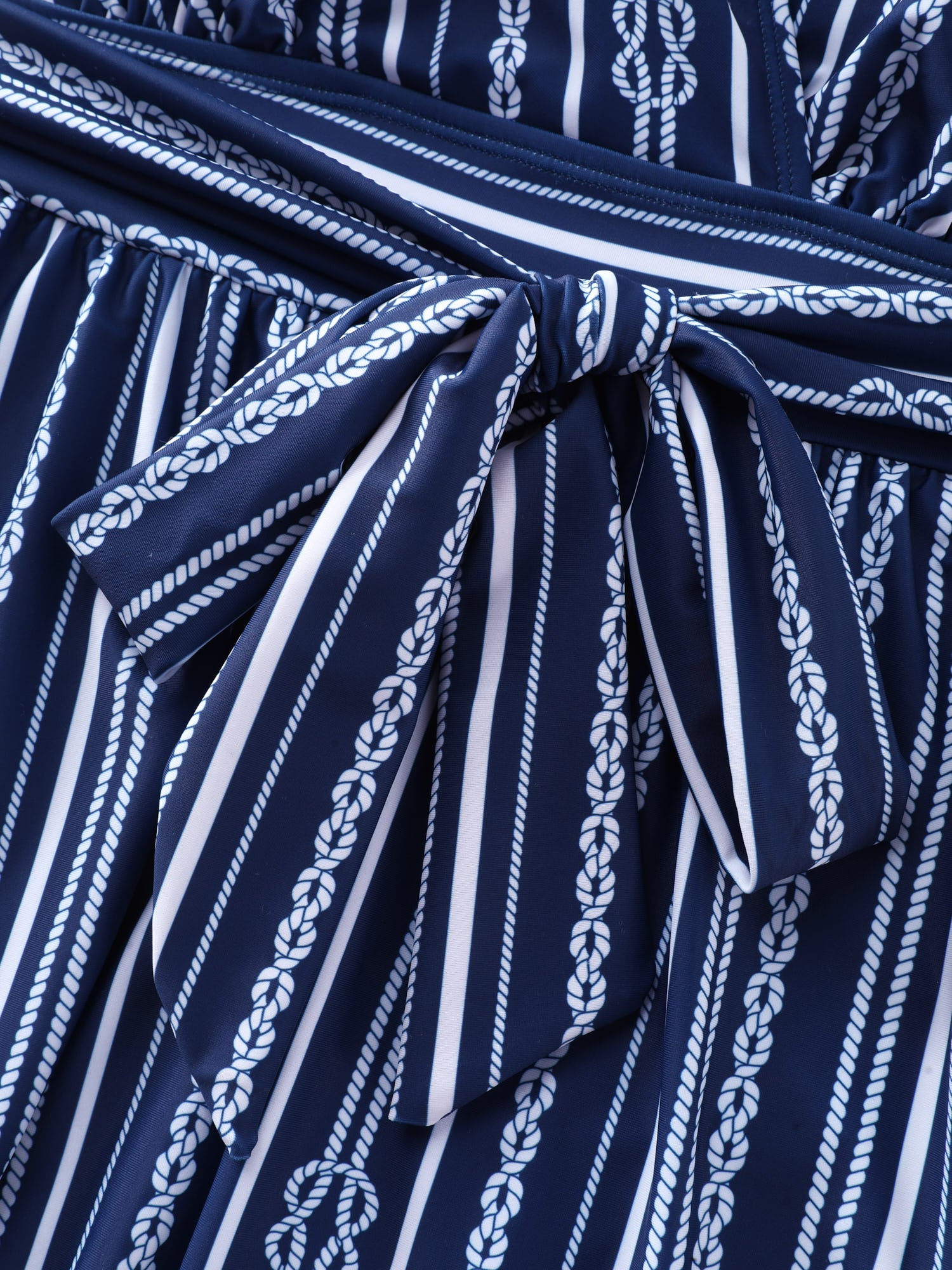 Shop Nautical Stripes Side-Tie One-Piece Swimsuit now and redefine your style with confidence at BloomChic. Tailored for mid and plus-size women. This trendy Swimwear Women, sizes 10-30. Color:Indigo;Style:Resort;Cup Type:Removable cups;Coverage:Full;Neckline:Overlap Collar;Sleeve Type:Sleeveless;Prints:Stripes;Details:Belted;Pocket:Side seam pocket;Belt:Belt;Chest pad:Removable Padding;Lining:Lining;Closure Type:Non;Structural function:Full Coverage,Adaptive-Fit;Swimsuit types:One-Piece Boyleg Swimsuit;Functional Fabric:Chlorine Resistant
