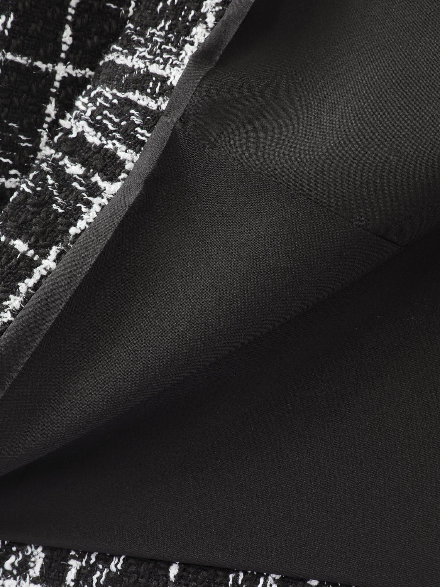 Shop Tweed Print Lined Double Breasted Blazer now and redefine your style with confidence at BloomChic. Tailored for mid and plus-size women. This trendy Outerwear Women, sizes 10-30. Color:Black;Style:Office;Neckline:Suit Collar;Sleeve Type:Regular Sleeve;Prints:Plaid;Pocket:Open pocket with flap;Belt:No-belt;Closure Type:Button;Lining:Lining