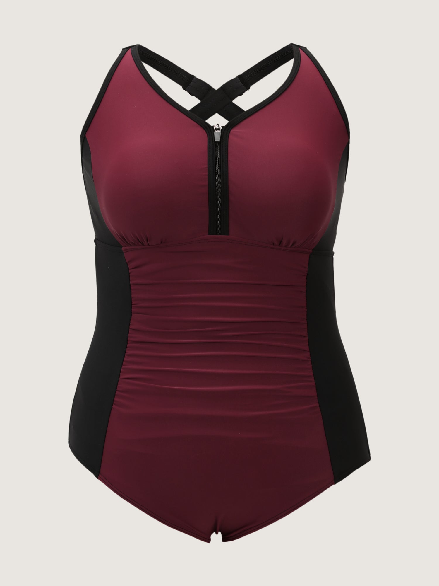 Shop Zipper-Front Color Contrast One-Piece Swimsuit now and redefine your style with confidence at BloomChic. Tailored for mid and plus-size women. This trendy Swimwear Women, sizes 10-30. Color:Plum;Style:Resort;Cup Type:Removable cups;Coverage:Full;Functional Fabric:Chlorine Resistant;Neckline:U-neck;Sleeve Type:Sleeveless;Prints:Geometric & color block;Details:Contrast;Pocket:No-pocket;Belt:No-belt;Chest pad:Non-removable padding;Lining:Lining;Closure Type:Zipper;Structural function:Tummy-Sculpt,Adaptive-Fit