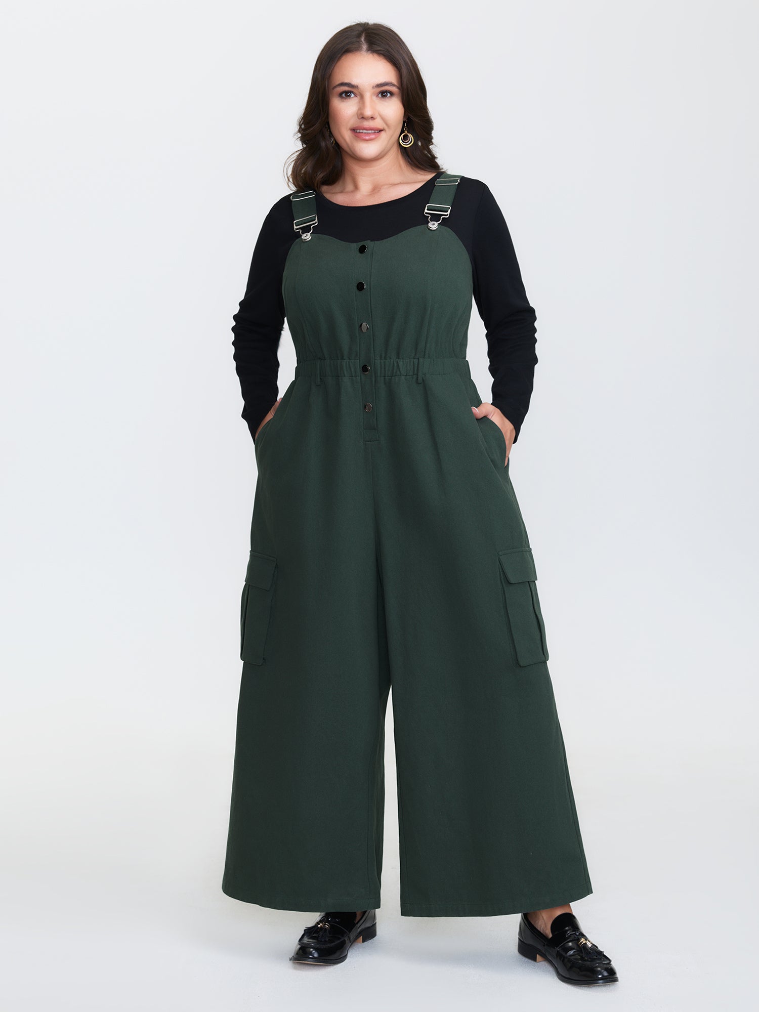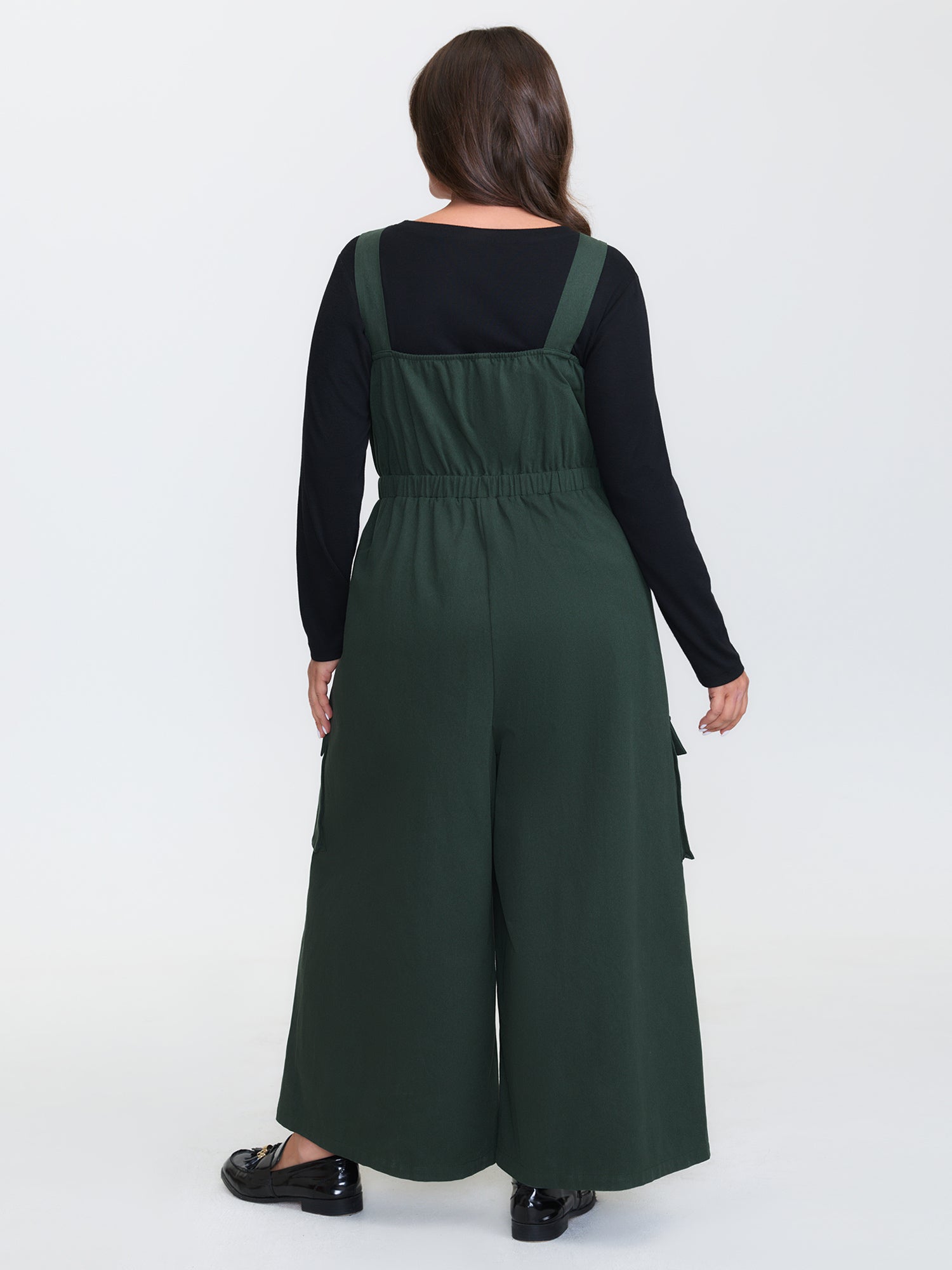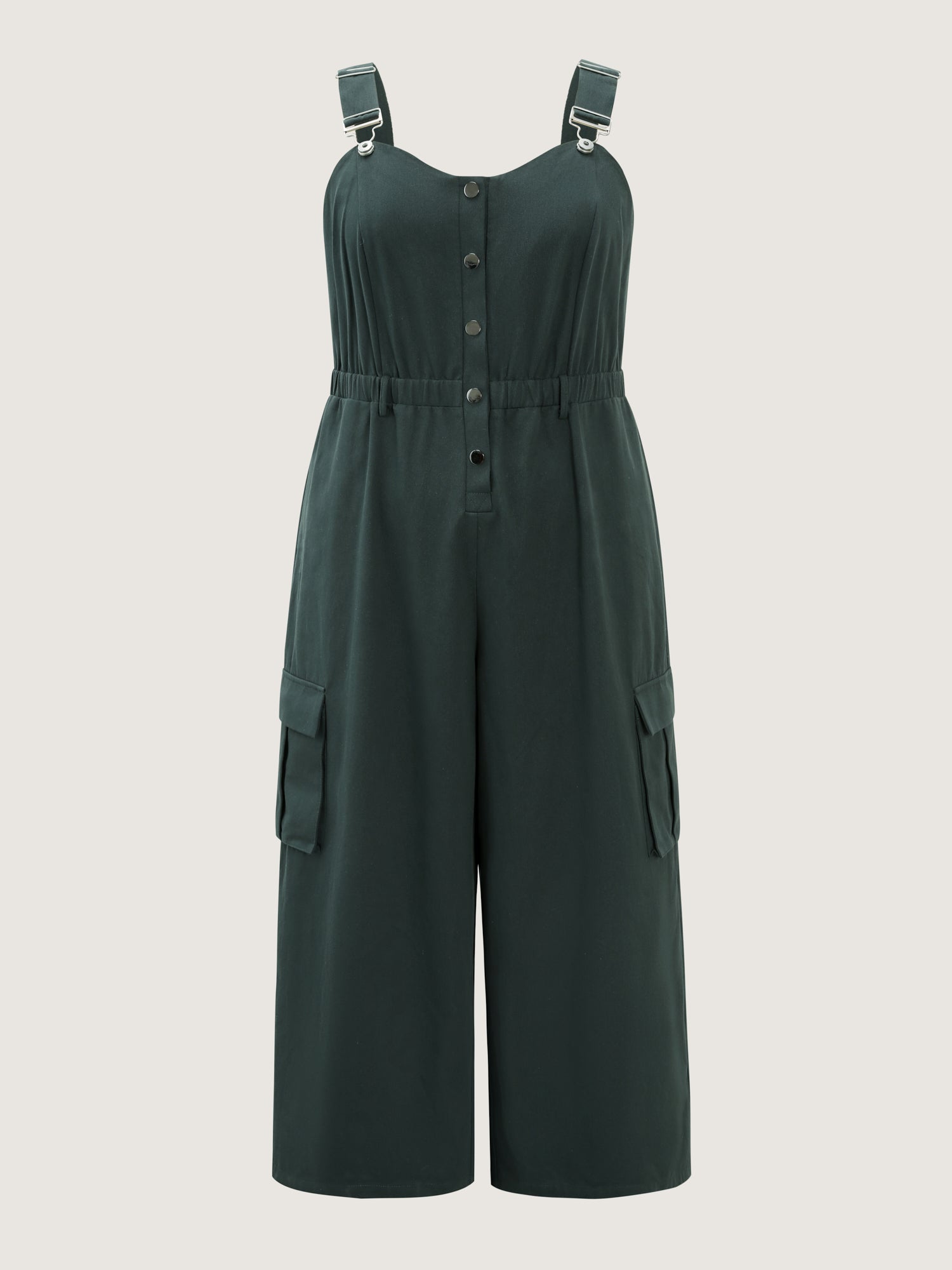 Shop Adjustable Overall Shirred Wide-Leg Jumpsuit now and redefine your style with confidence at BloomChic. Tailored for mid and plus-size women. This trendy Jumpsuits Women, sizes 10-30. Color:DarkSlateGray;Style:Leisure;Neckline:Non;Sleeve Type:Sleeveless;Prints:Non;Details:Button;Pocket:Open pocket with flap;Belt:No-belt;Closure Type:Button