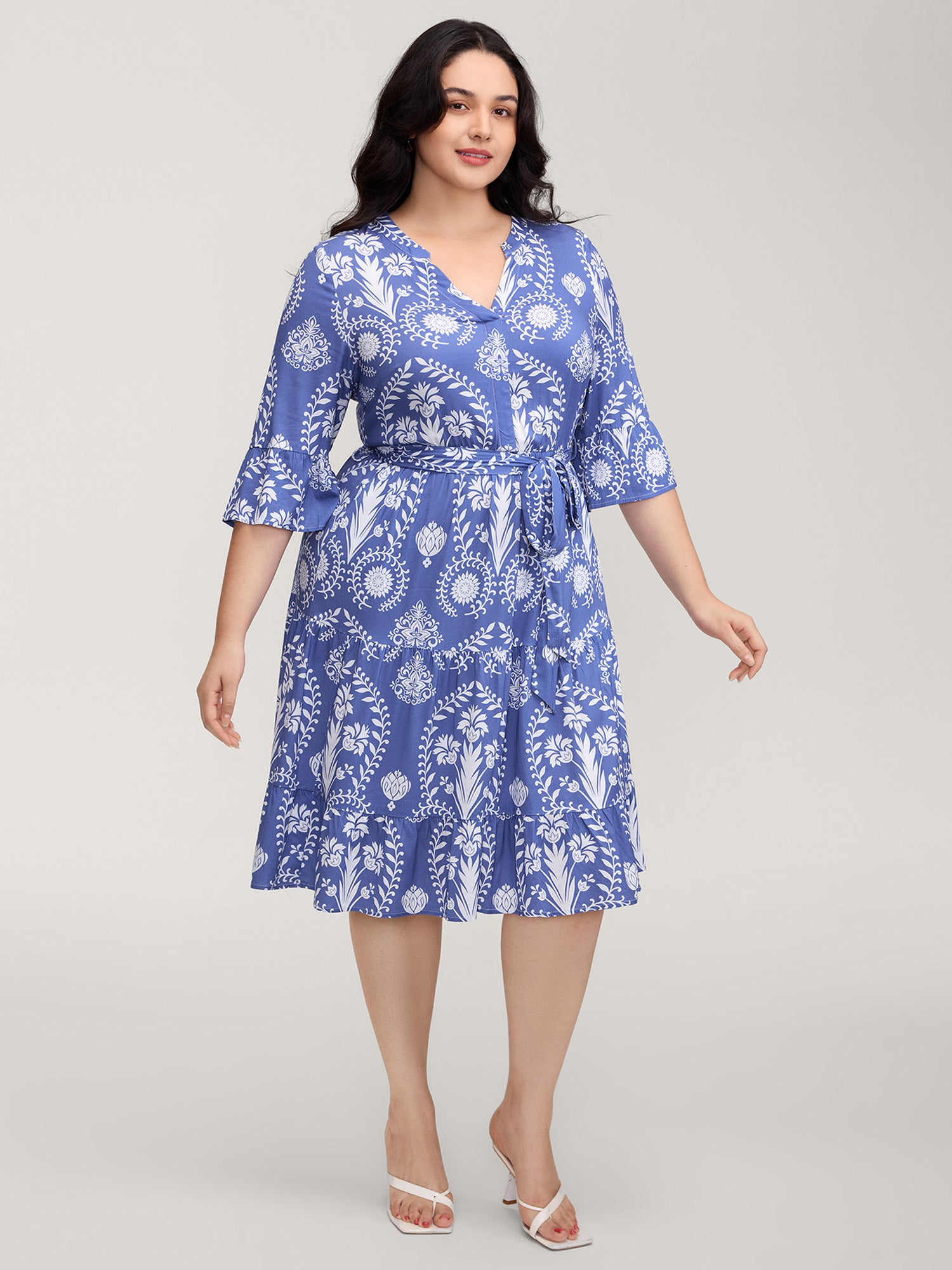Shop Boho Print Belted Side Pockets Midi Dress now and redefine your style with confidence at BloomChic. Tailored for mid and plus-size women. This trendy Dress, sizes 10-30. You can never go wrong with BloomChic Dresses. Color:Cerulean;Neckline:V-neck;Sleeve Type:Bell Sleeve;Prints:Bohemian print;Pocket:Side seam pocket;Belt:Belt;Closure Type:Non