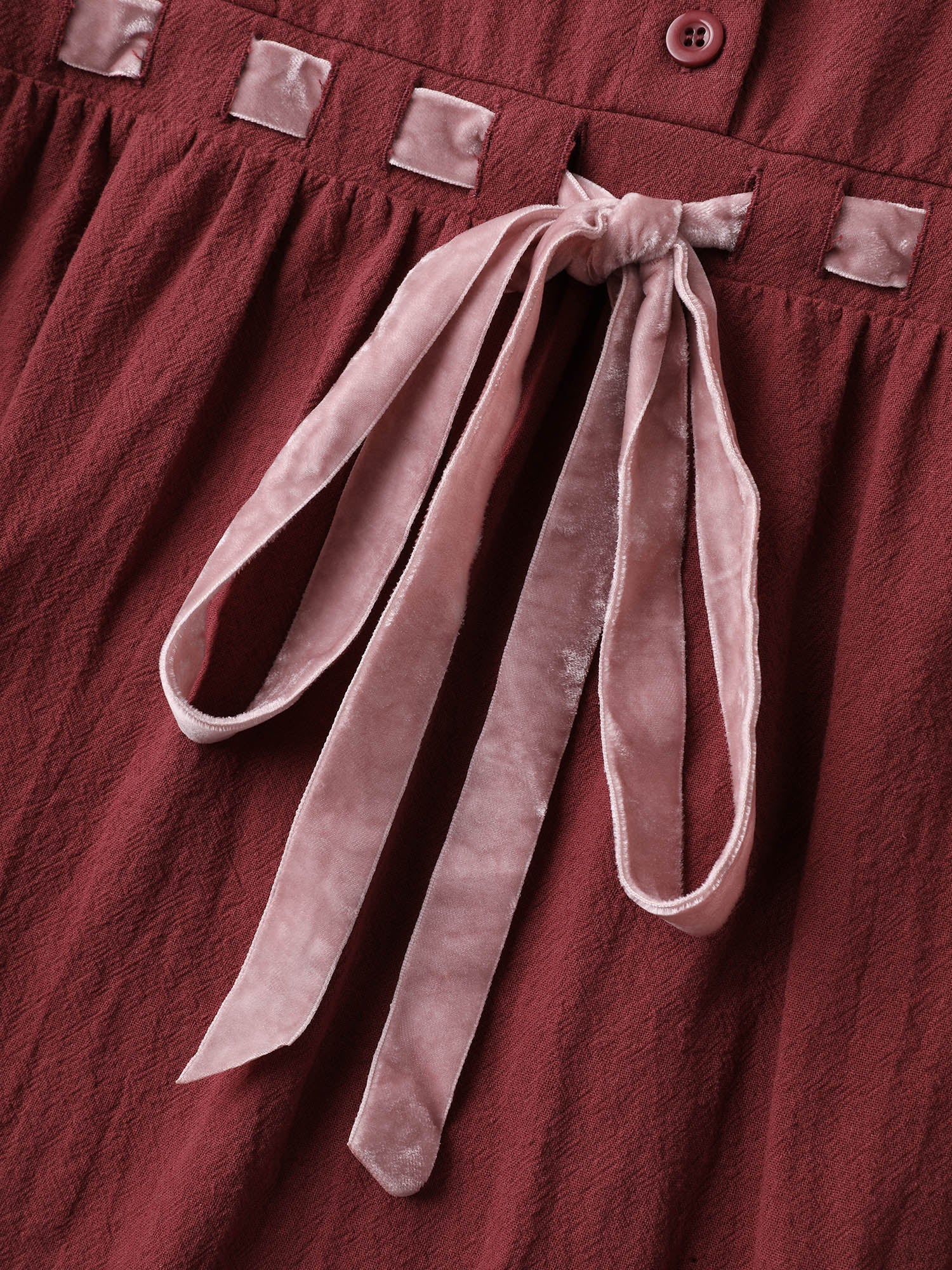 Cotton Webbed Stripe Button A-Line Midi Dress
