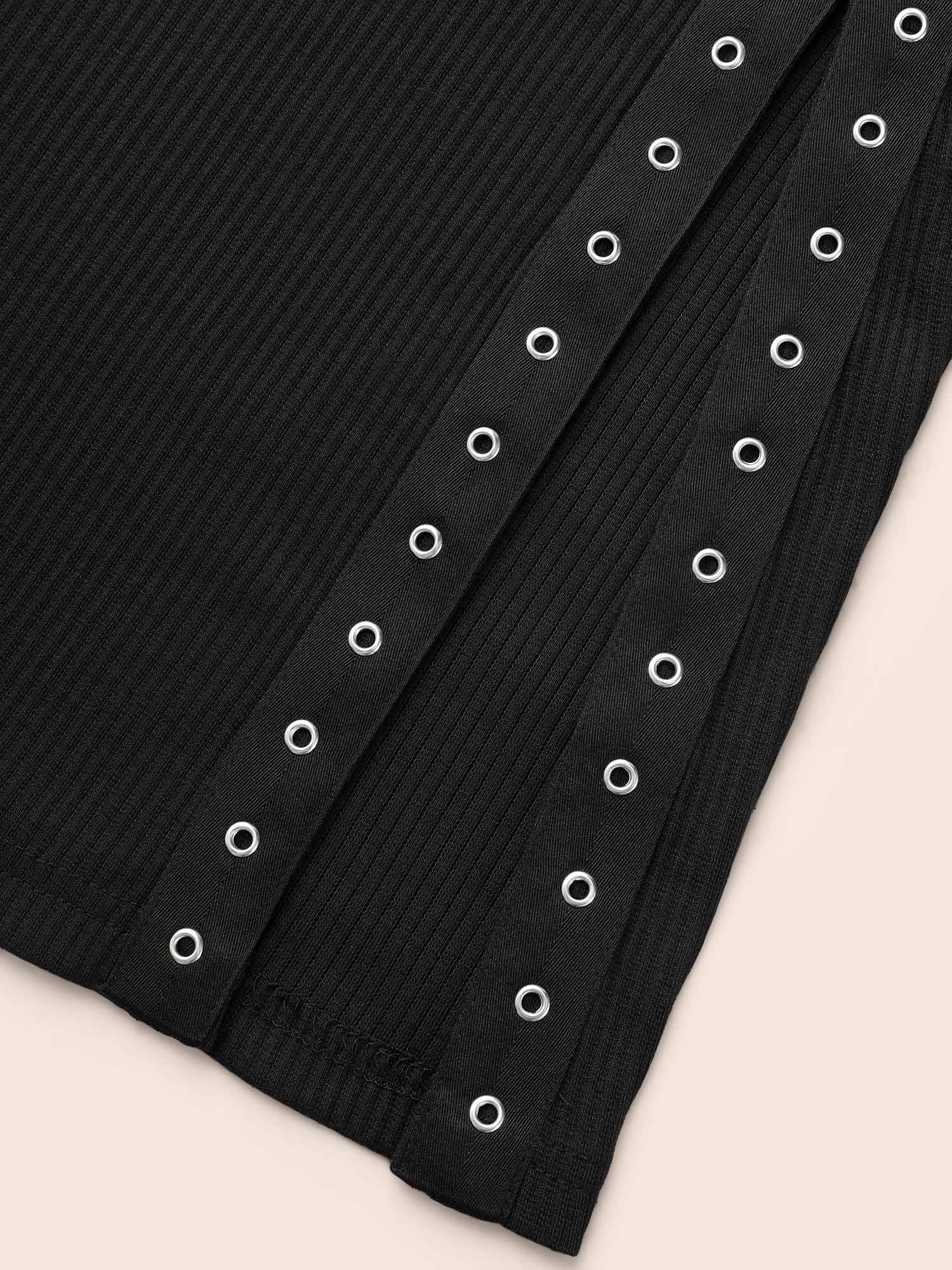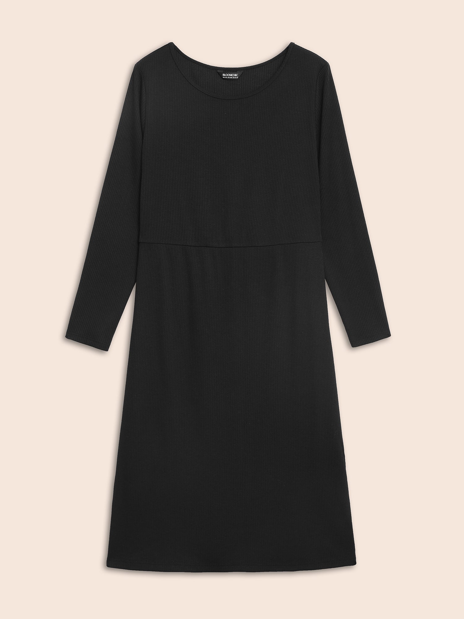 Shop Crew Neck Eyelet Split Hem Dress now and redefine your style with confidence at BloomChic. Tailored for mid and plus-size women. This trendy Dress, sizes 10-30. You can never go wrong with BloomChic Dresses. Season:Winter;Color:Black;Style:Casual;Neckline:Round Neck;Sleeve Type:Regular Sleeve;Prints:Non;Details:Eyelet, Slit, Texture;Pocket:No-pocket;Belt:No-belt;Closure Type:Non