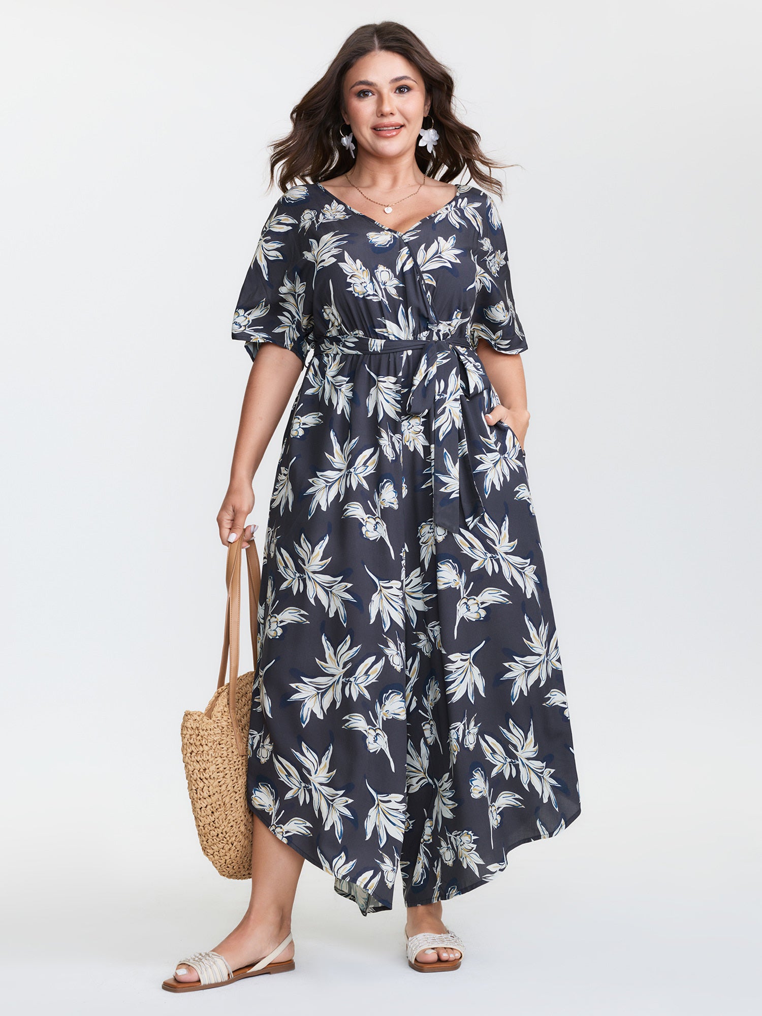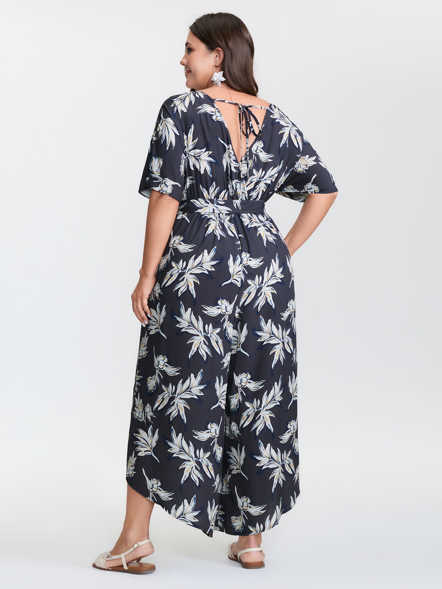 Shop Monochrome Floral Belted Surplice Jumpsuit now and redefine your style with confidence at BloomChic. Tailored for mid and plus-size women. This trendy Jumpsuits Women, sizes 10-30. Color:Multicolor;Style:Resort;Neckline:Overlap Collar;Sleeve Type:Dolman Sleeve;Prints:Floral;Pocket:Side seam pocket;Belt:Belt;Closure Type:Non