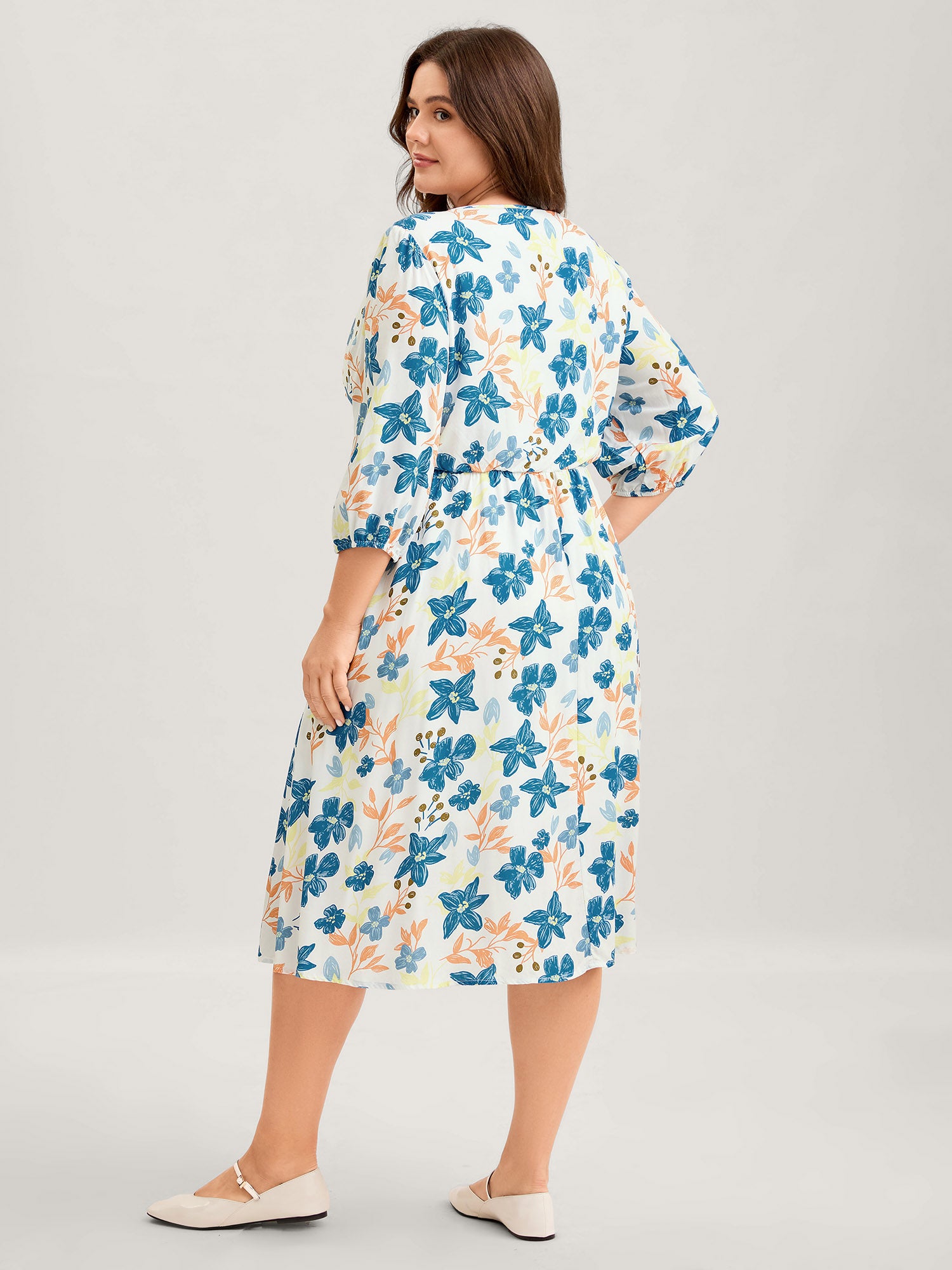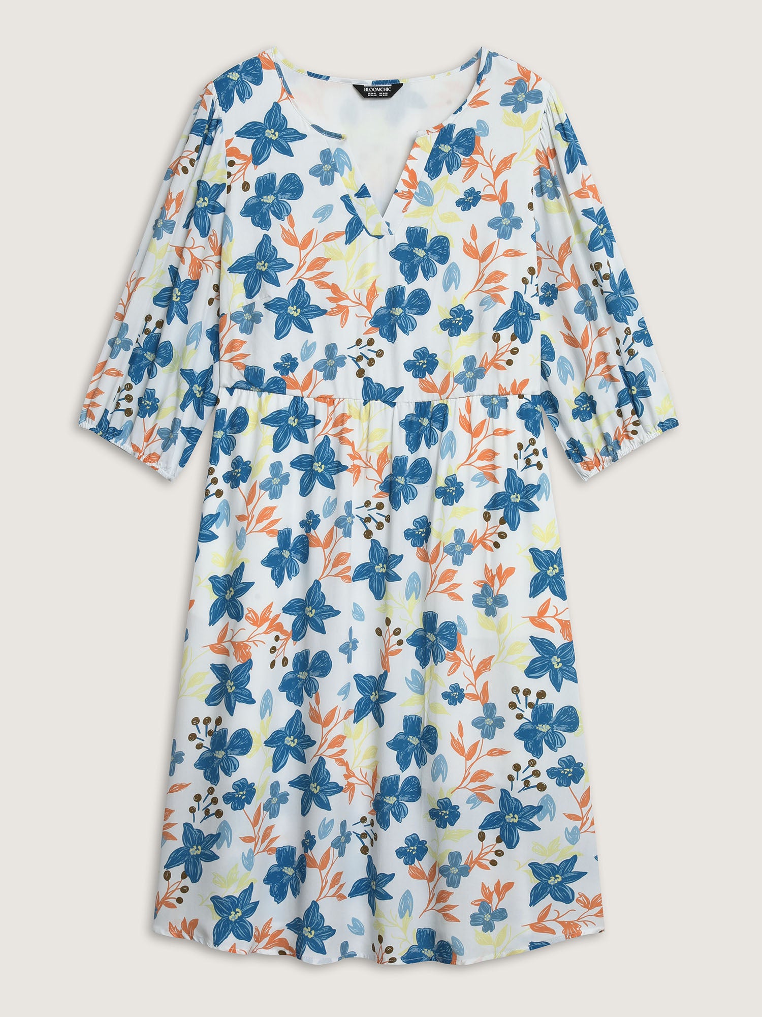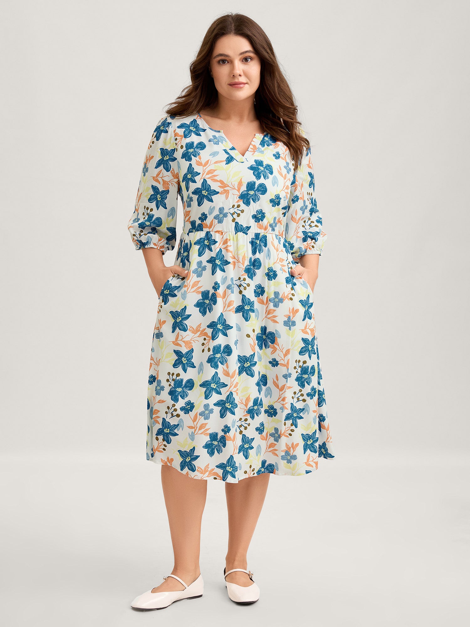 Shop Rayon Floral Stretchy Waist Pockets Midi Dress now and redefine your style with confidence at BloomChic. Tailored for mid and plus-size women. This trendy Dress, sizes 10-30. You can never go wrong with BloomChic Dresses. Color:Multicolor;Neckline:Flat collar with V-notch;Sleeve Type:Puff Sleeve;Prints:Floral;Pocket:Side seam pocket;Belt:No-belt;Closure Type:Non