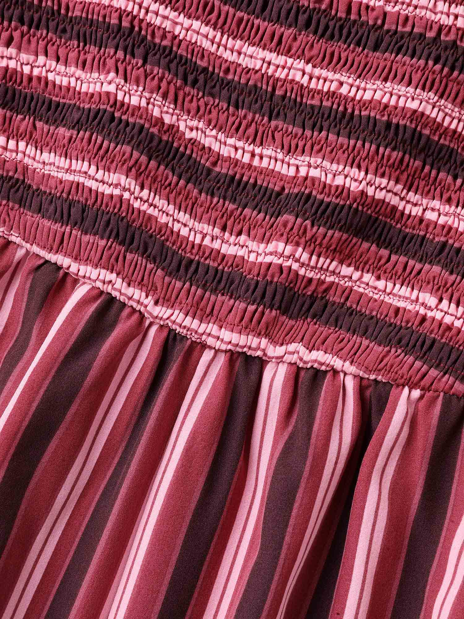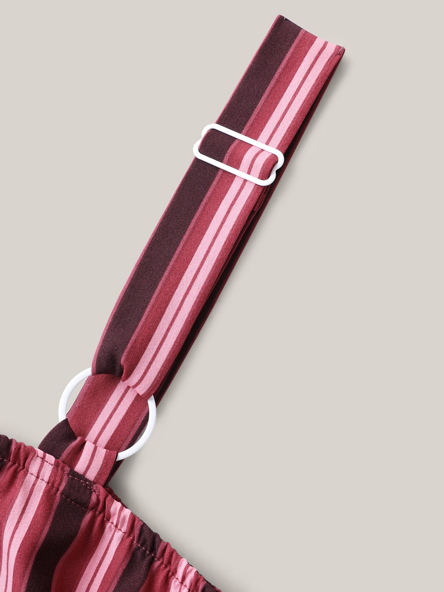 Shirred Stripes Adjustable Pockets Jumpsuit