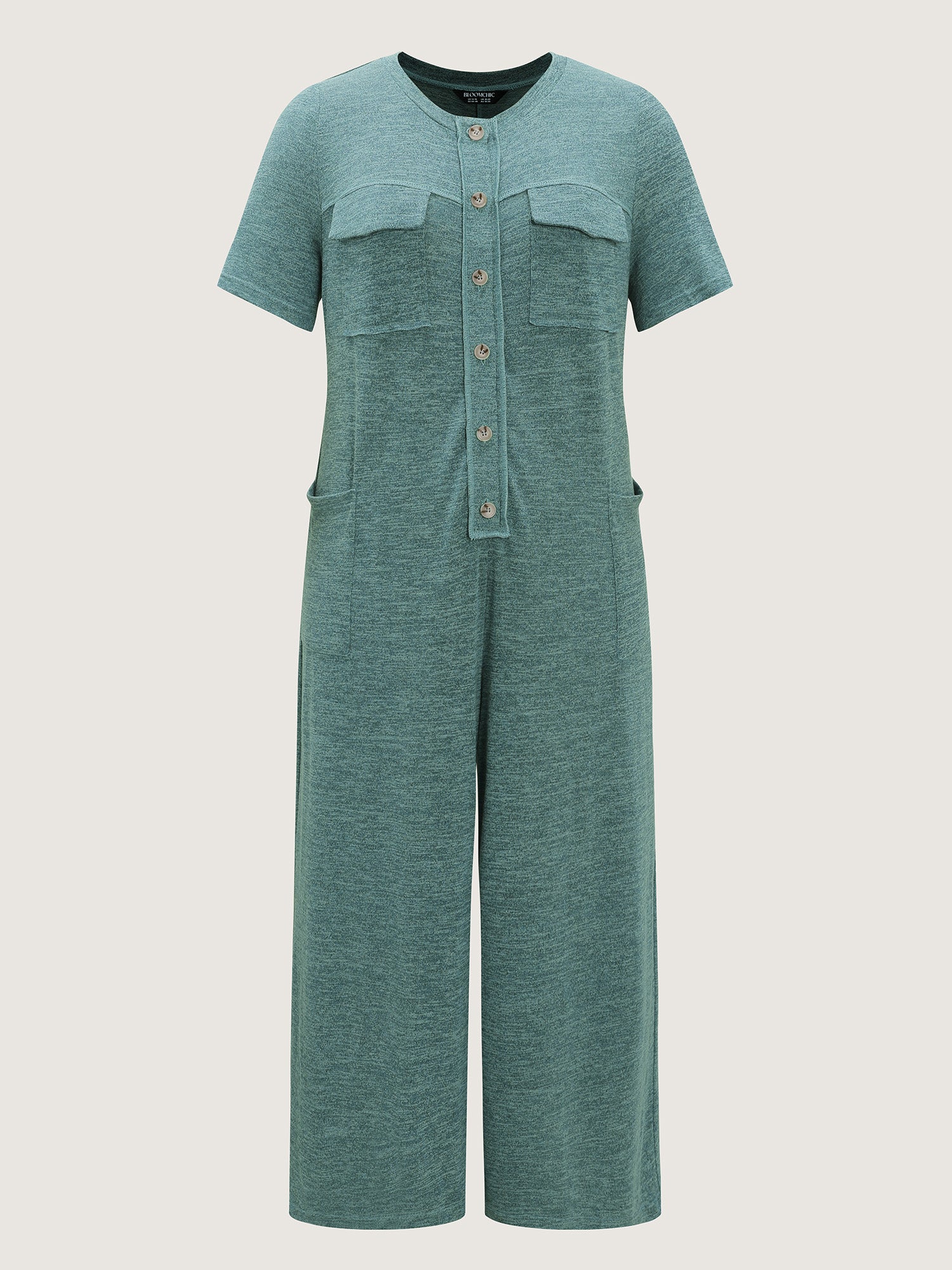 Shop Supersoft Heather Button Placket Jumpsuit now and redefine your style with confidence at BloomChic. Tailored for mid and plus-size women. This trendy Jumpsuits Women, sizes 10-30. Color:Teal;Style:Leisure;Neckline:Round Neck;Sleeve Type:Regular Sleeve;Prints:Non;Details:Contrast;Pocket:Patch pocket;Belt:No-belt;Closure Type:Button