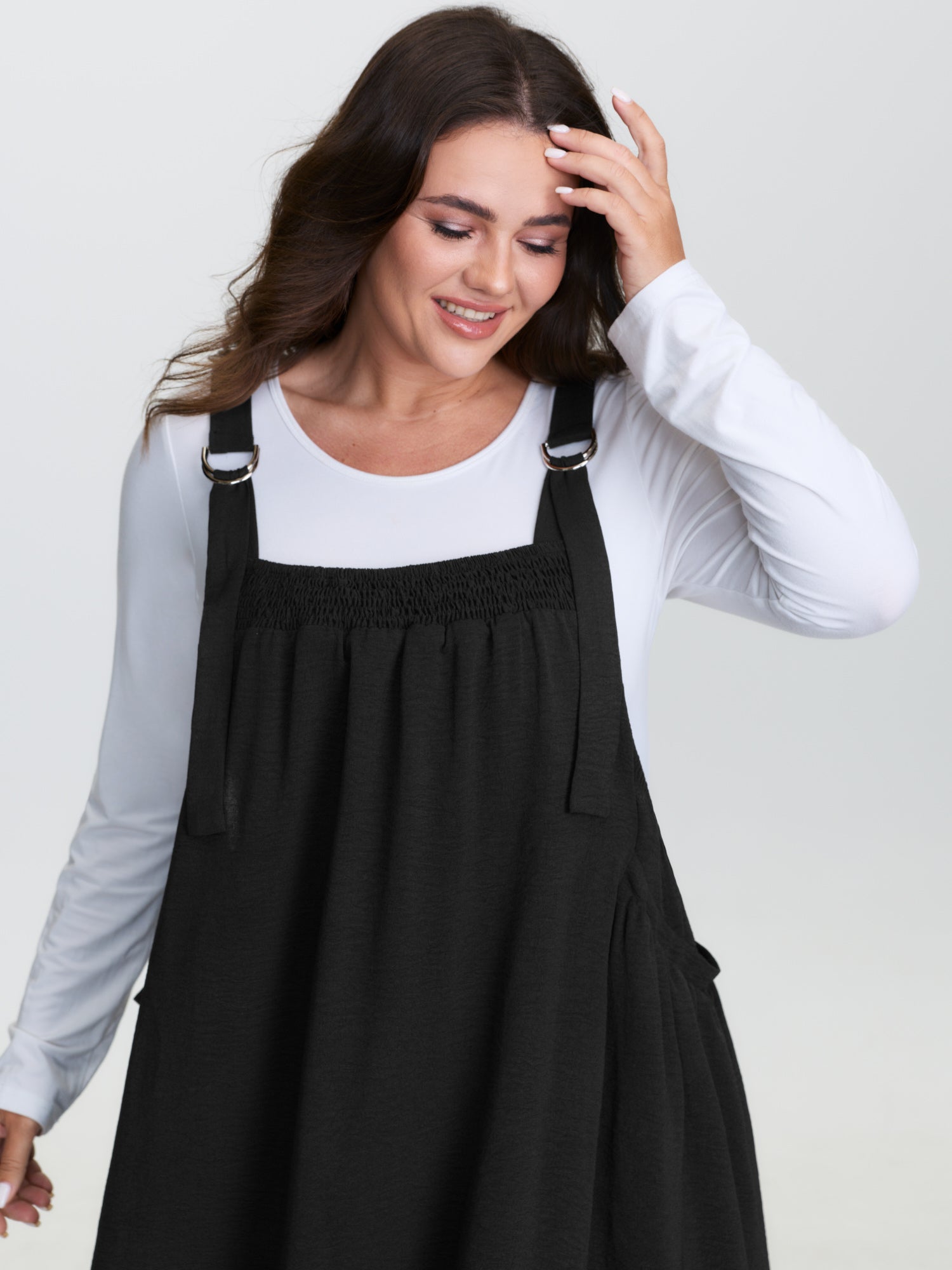 Shop Adjustable Overall Straps Shirred Midi Dress now and redefine your style with confidence at BloomChic. Tailored for mid and plus-size women. This trendy Dress, sizes 10-30. You can never go wrong with BloomChic Dresses. Color:Black;Style:Leisure;Neckline:Non;Sleeve Type:Sleeveless;Prints:Non;Details:Shirred;Pocket:Slanted pocket;Belt:No-belt;Closure Type:Non