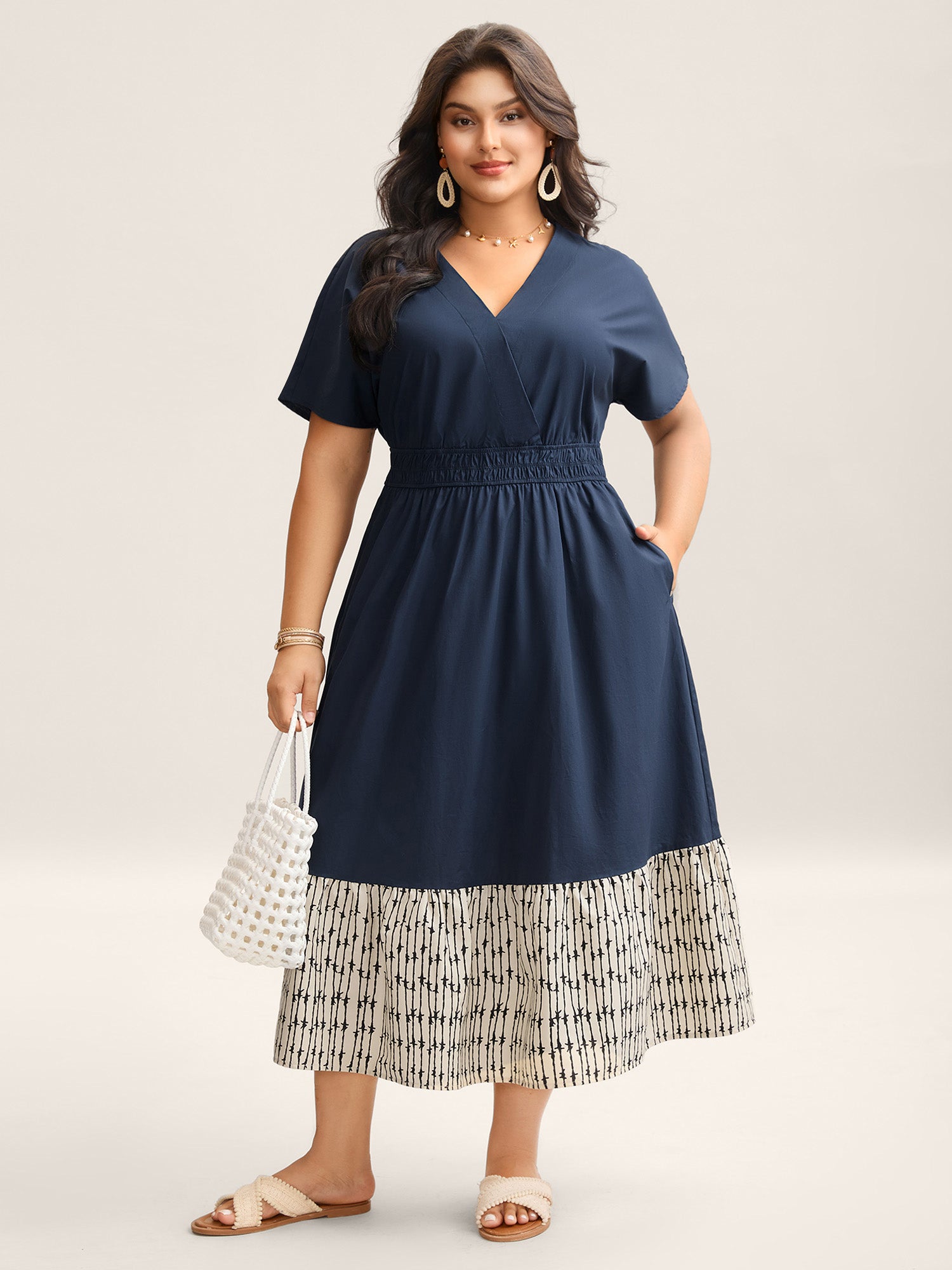 Shop Cotton Color Block Cinched-Waist Spliced Maxi Dress now and redefine your style with confidence at BloomChic. Tailored for mid and plus-size women. This trendy Dress, sizes 10-30. You can never go wrong with BloomChic Dresses. Color:Navy,Lightpink,Skyblue;Style:Resort;Neckline:V-neck;Sleeve Type:Regular Sleeve;Prints:Stripes;Pocket:Side seam pocket;Belt:No-belt;Closure Type:Non