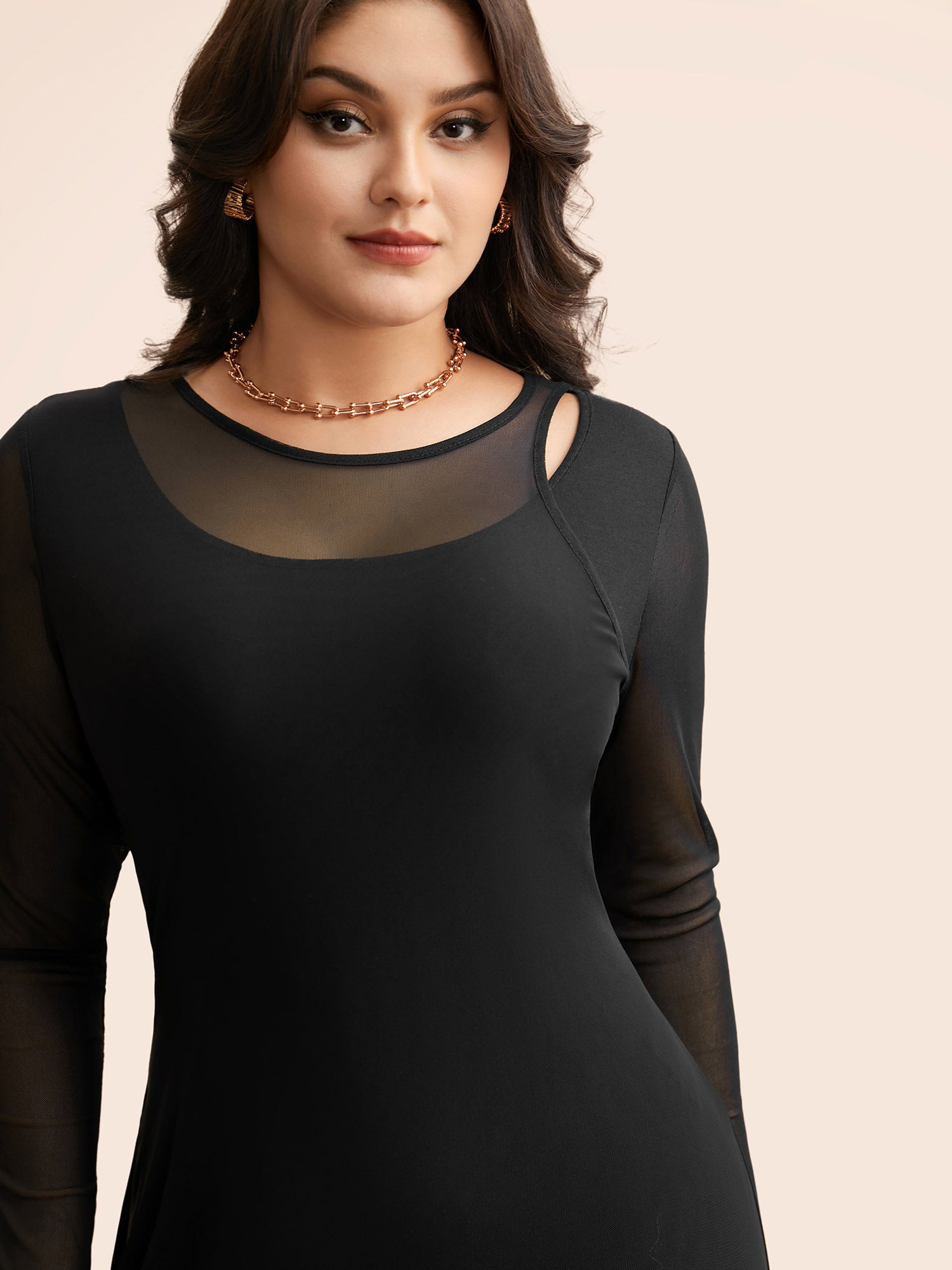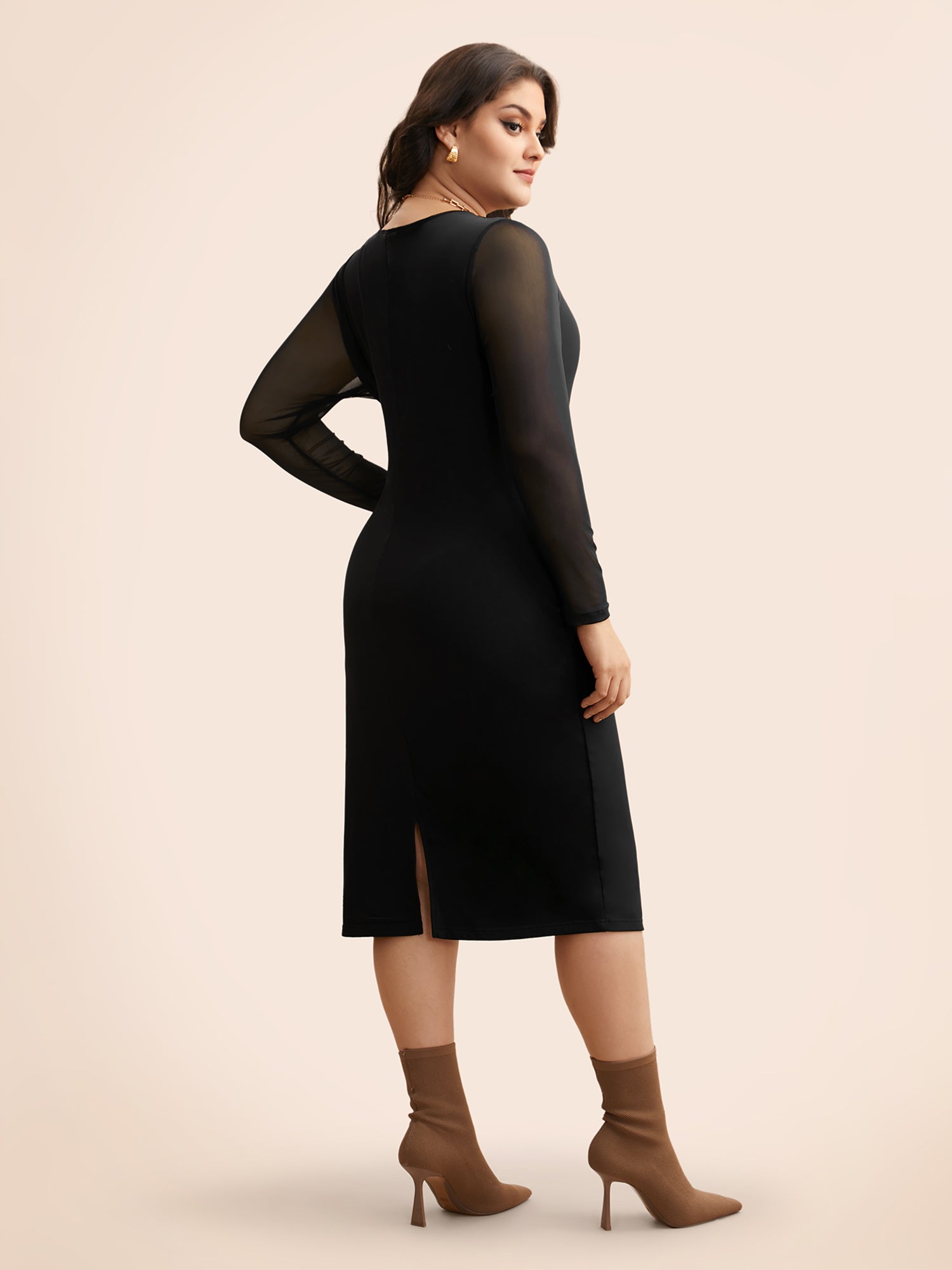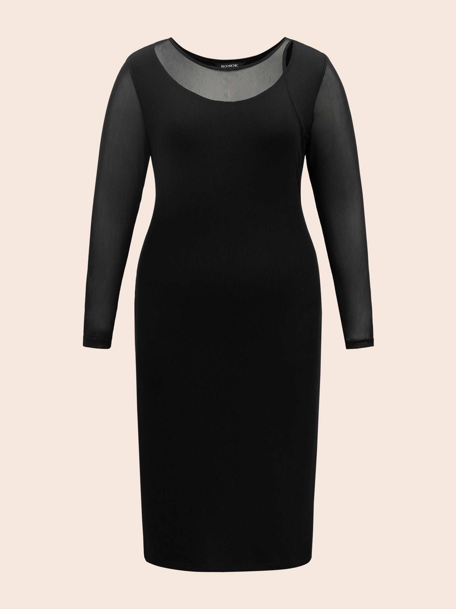 Shop Crew Neck Patchwork Mesh Split Hem Dress now and redefine your style with confidence at BloomChic. Tailored for mid and plus-size women. This trendy Dress, sizes 10-30. You can never go wrong with BloomChic Dresses. Season:Winter;Color:Black;Style:Elegant Everyday;Neckline:Round Neck;Sleeve Type:Regular Sleeve;Prints:Non;Details:Asymmetrical, Cut-Out, See through, Slit;Pocket:No-pocket;Belt:No-belt;Closure Type:Non