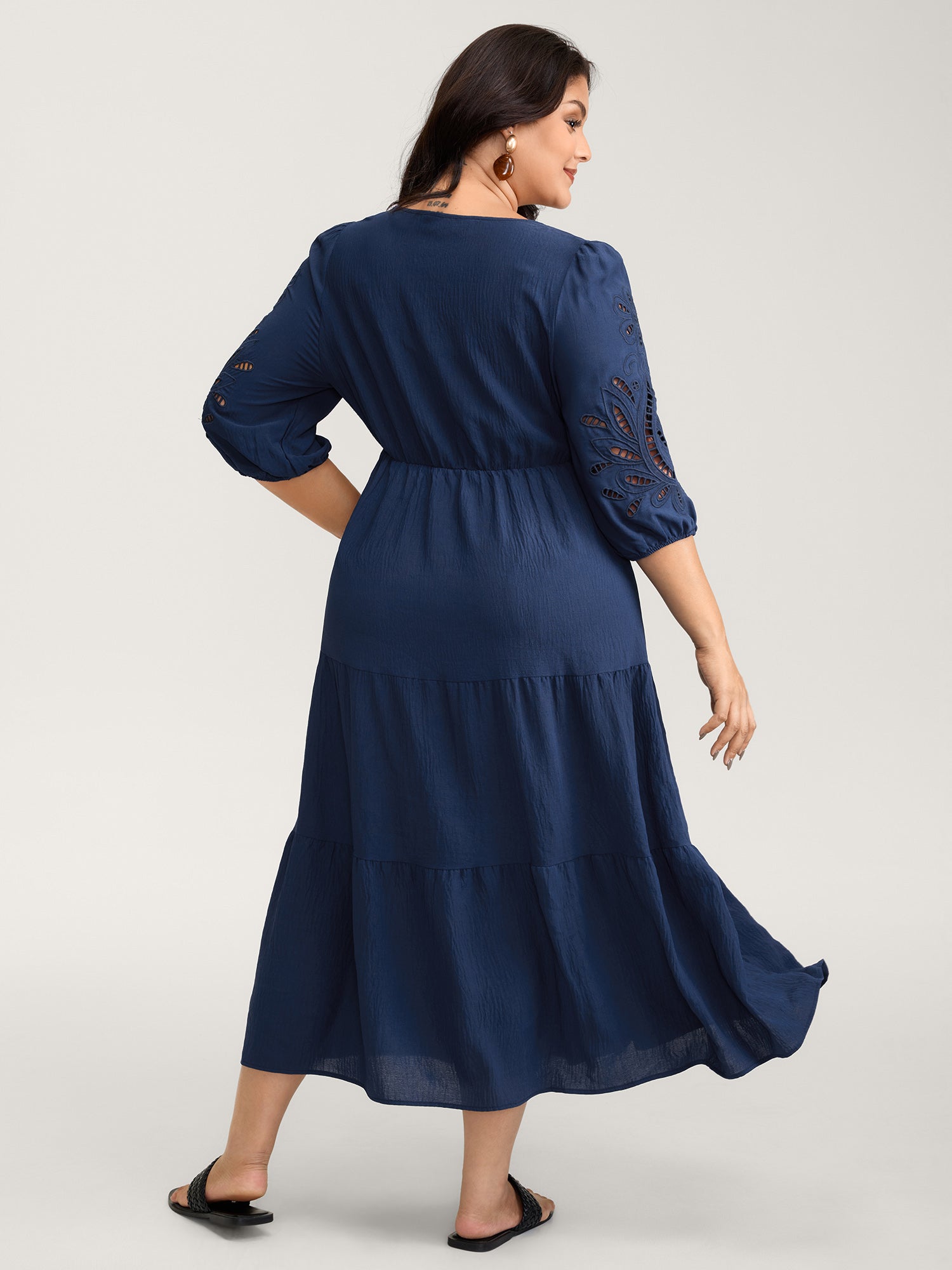 Floral Cut-Out Embroidery Tiered Maxi Dress