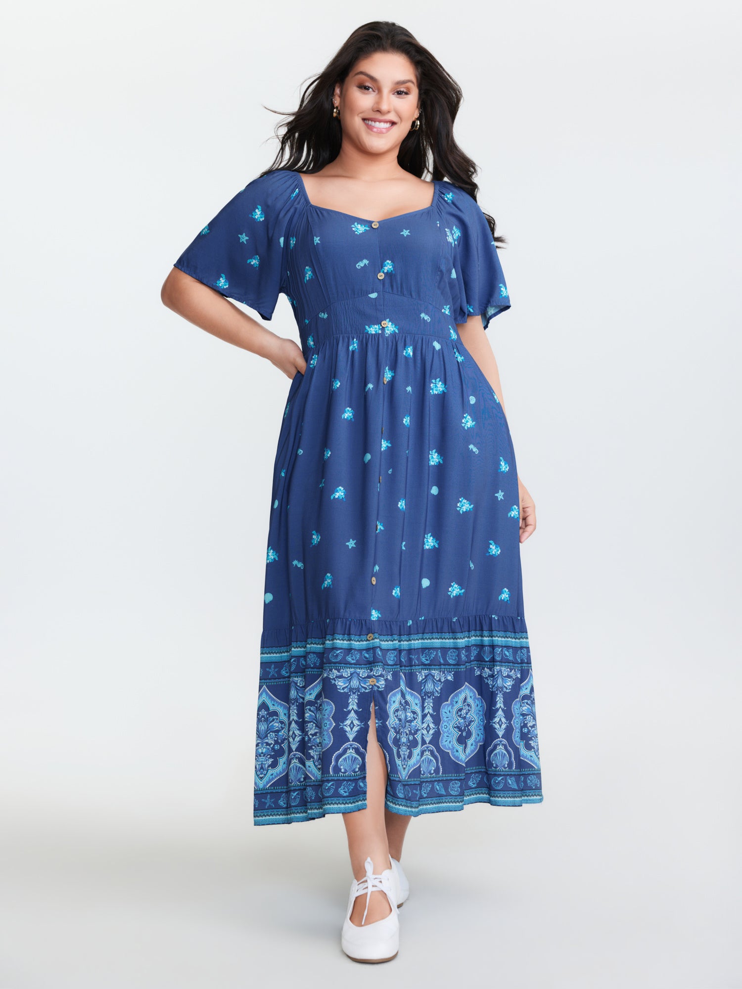 Shop Floral Marine Print Pockets Button Maxi Dress now and redefine your style with confidence at BloomChic. Tailored for mid and plus-size women. This trendy Dress, sizes 10-30. You can never go wrong with BloomChic Dresses. Color:Medium Blue;Style:Leisure;Neckline:Heart neckline;Sleeve Type:Ruffle Sleeve;Pattern Type:Marine;Prints:Marine Elements;Details:Shirred, Button;Pocket:Side seam pocket;Belt:No-belt;Closure Type:Non