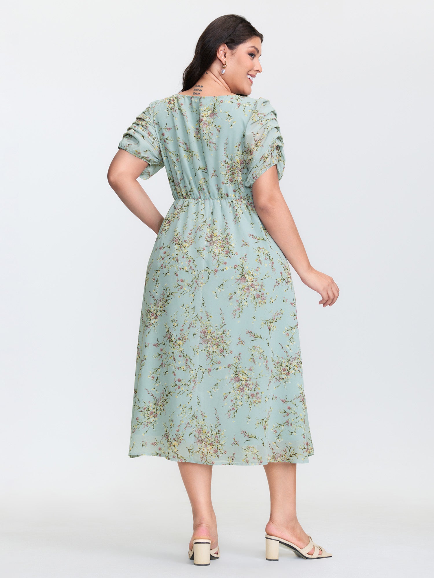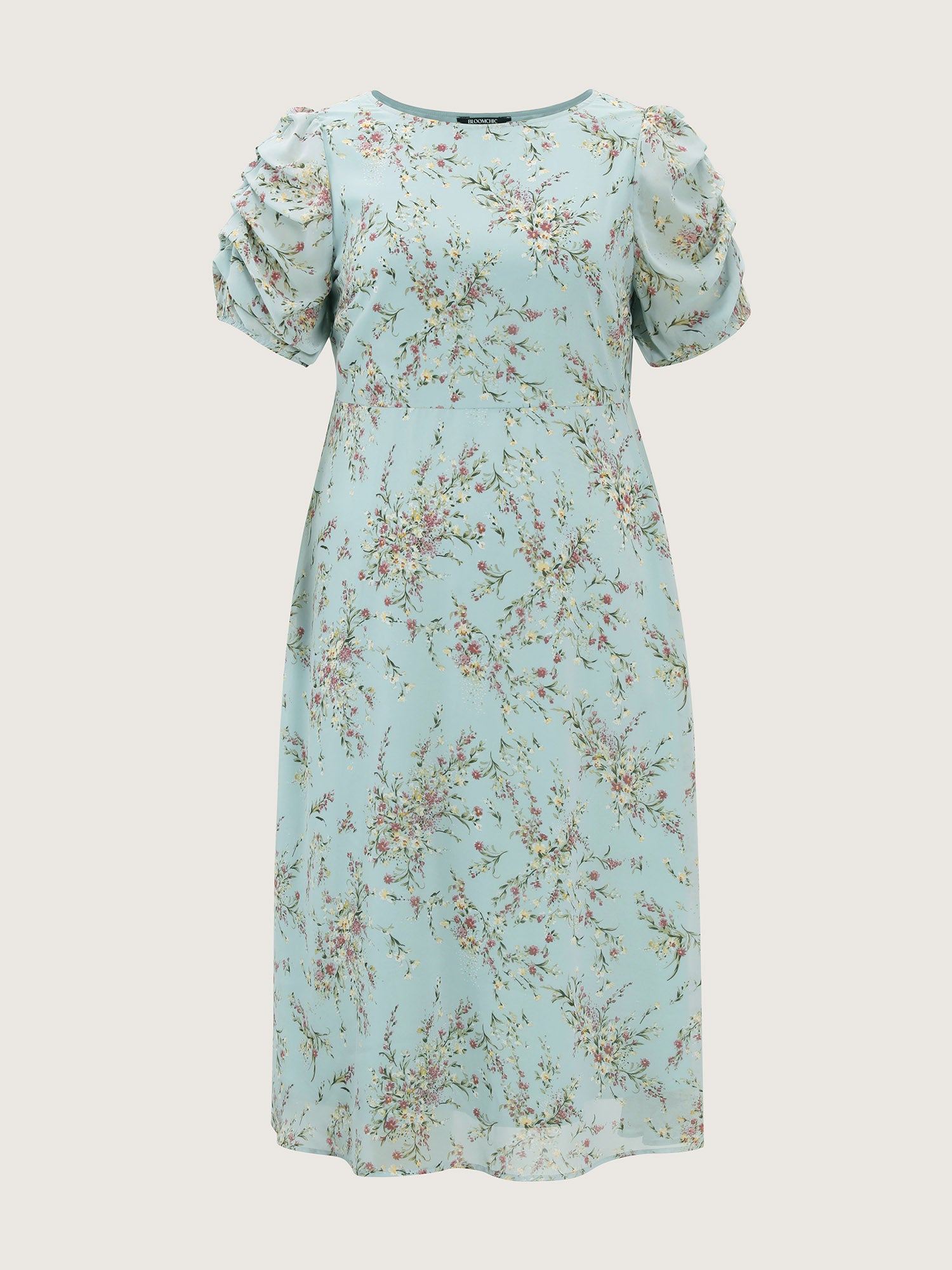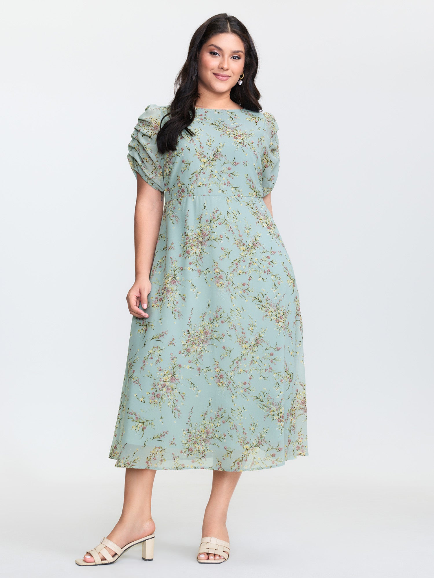 Shop Floral Print Puffy Sleeve Midi Dress now and redefine your style with confidence at BloomChic. Tailored for mid and plus-size women. This trendy Dress, sizes 10-30. You can never go wrong with BloomChic Dresses. Color:Mint;Style:Timeless;Neckline:Round Neck;Sleeve Type:Puff Sleeve;Prints:Ditsy floral;Details:Contrast, Gathered;Pocket:Side seam pocket;Belt:Belt;Closure Type:Non