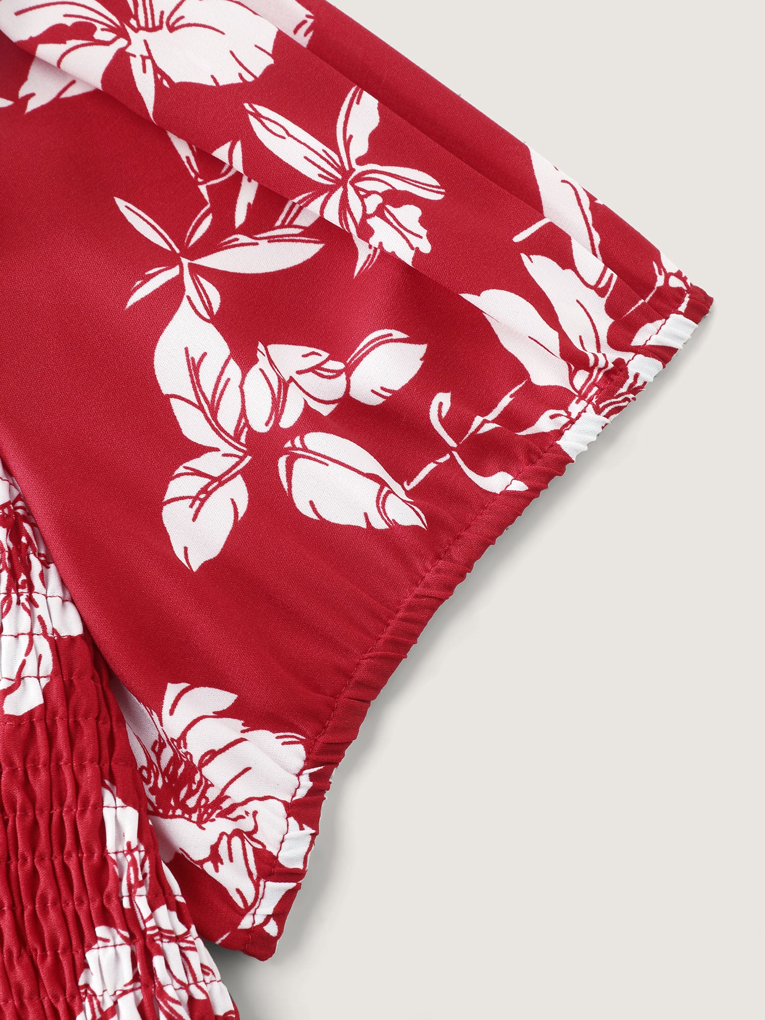 Shop Floral Print Shirred Front Flutter Sleeve Midi Dress now and redefine your style with confidence at BloomChic. Tailored for mid and plus-size women. This trendy Dress, sizes 10-30. You can never go wrong with BloomChic Dresses. Color:Crimson;Style:Retro;Neckline:V-neck;Sleeve Type:Lantern Sleeve;Prints:Floral;Details:Contrast, Shirred;Pocket:Side seam pocket;Belt:No-belt;Closure Type:Non