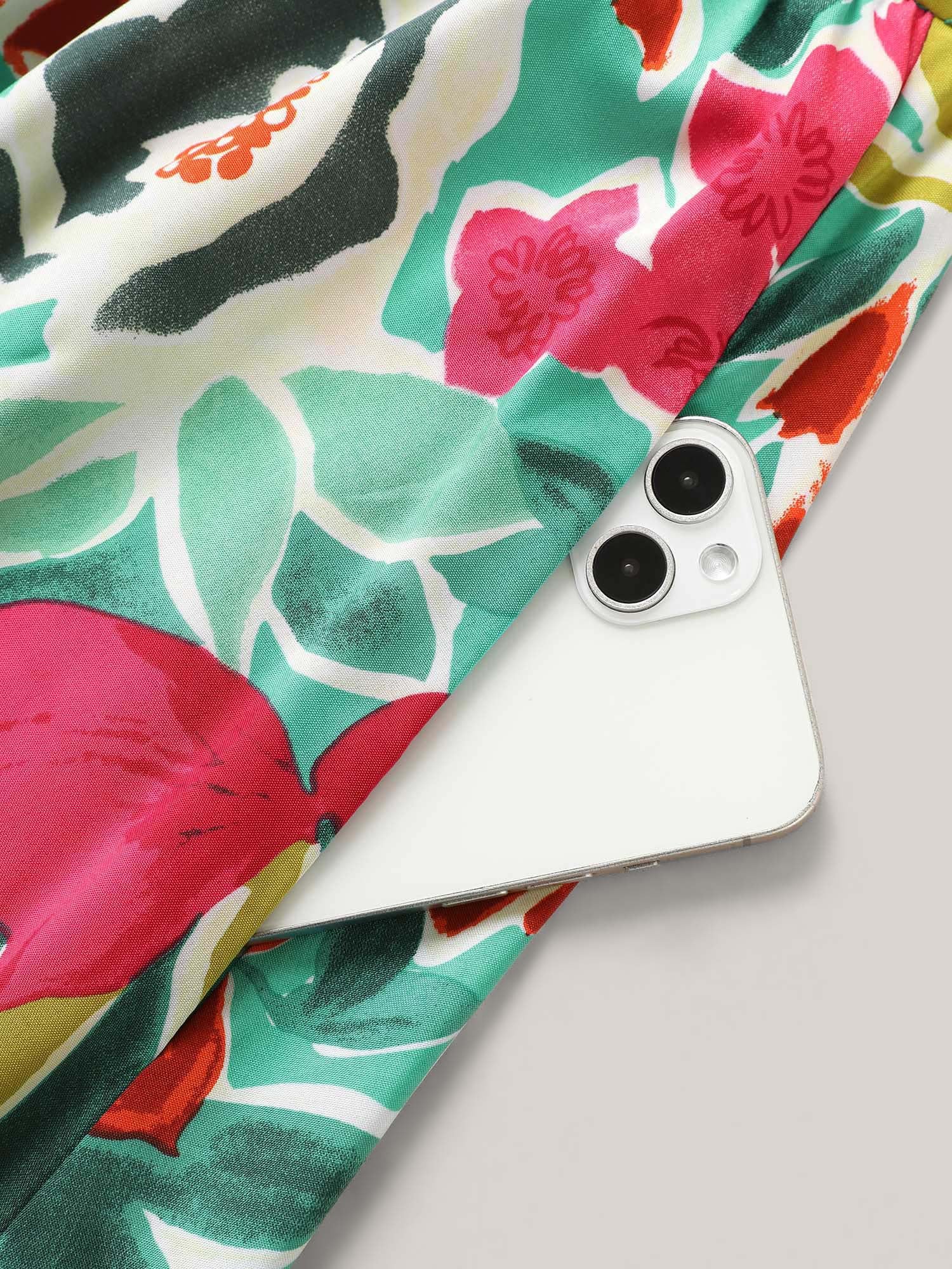 Floral Wrap Patchwork Ruffle Cap Sleeve Dress