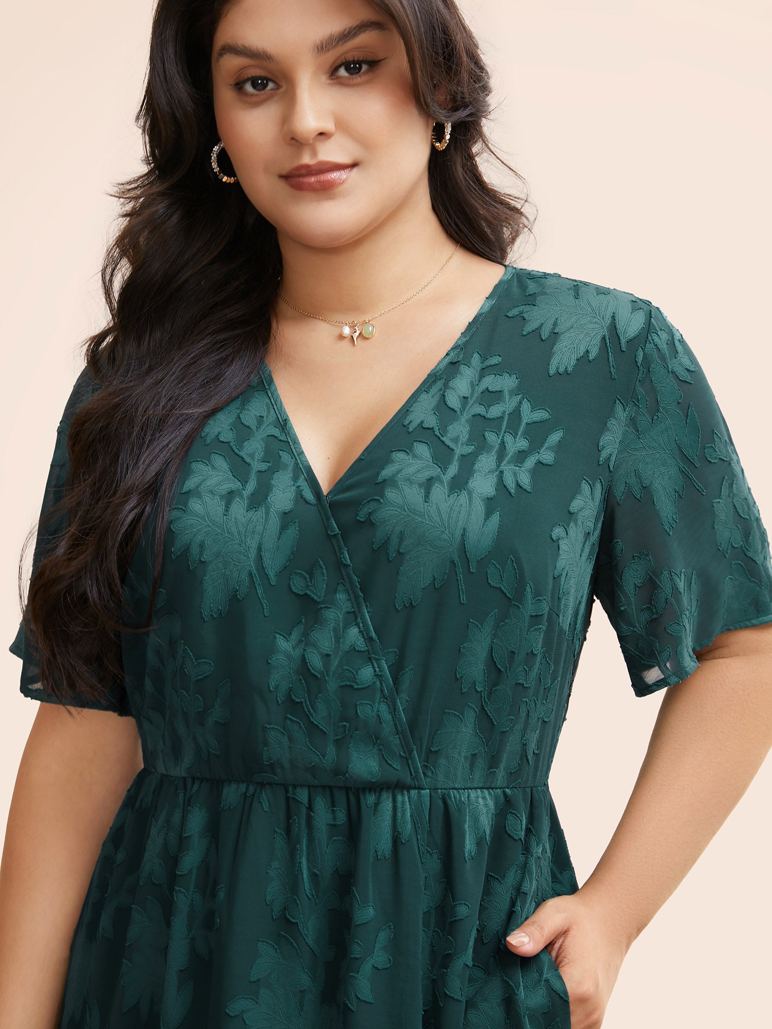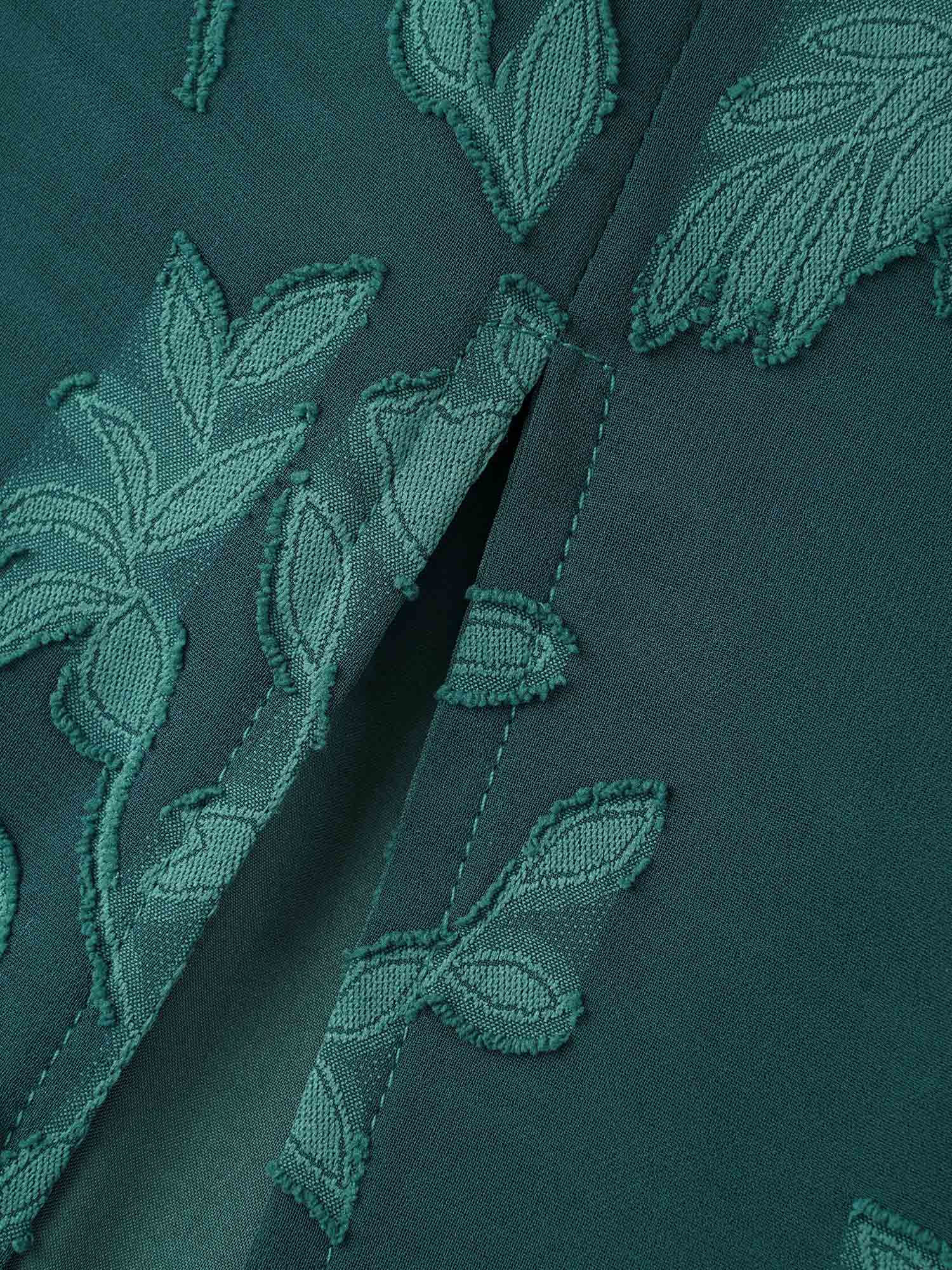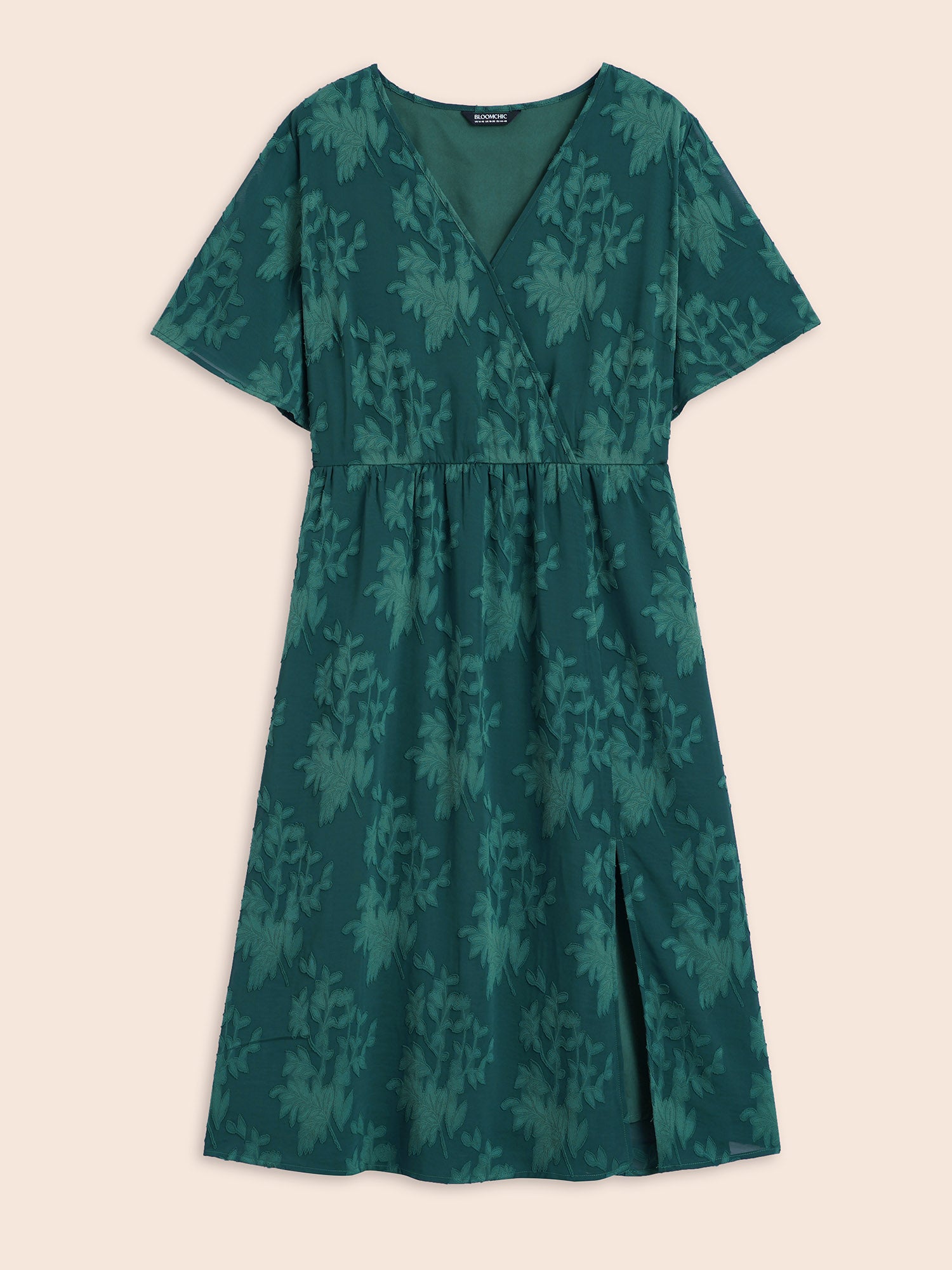 Shop Overlap Collar Jacquard Split Hem Dress now and redefine your style with confidence at BloomChic. Tailored for mid and plus-size women. This trendy Dress, sizes 10-30. You can never go wrong with BloomChic Dresses. Season:Fall;Color:Cyan;Style:Elegant;Neckline:Overlap Collar;Sleeve Type:Ruffle Sleeve;Prints:Synthetic texture;Details:Slit, Texture;Pocket:Side seam pocket;Belt:No-belt;Closure Type:Non