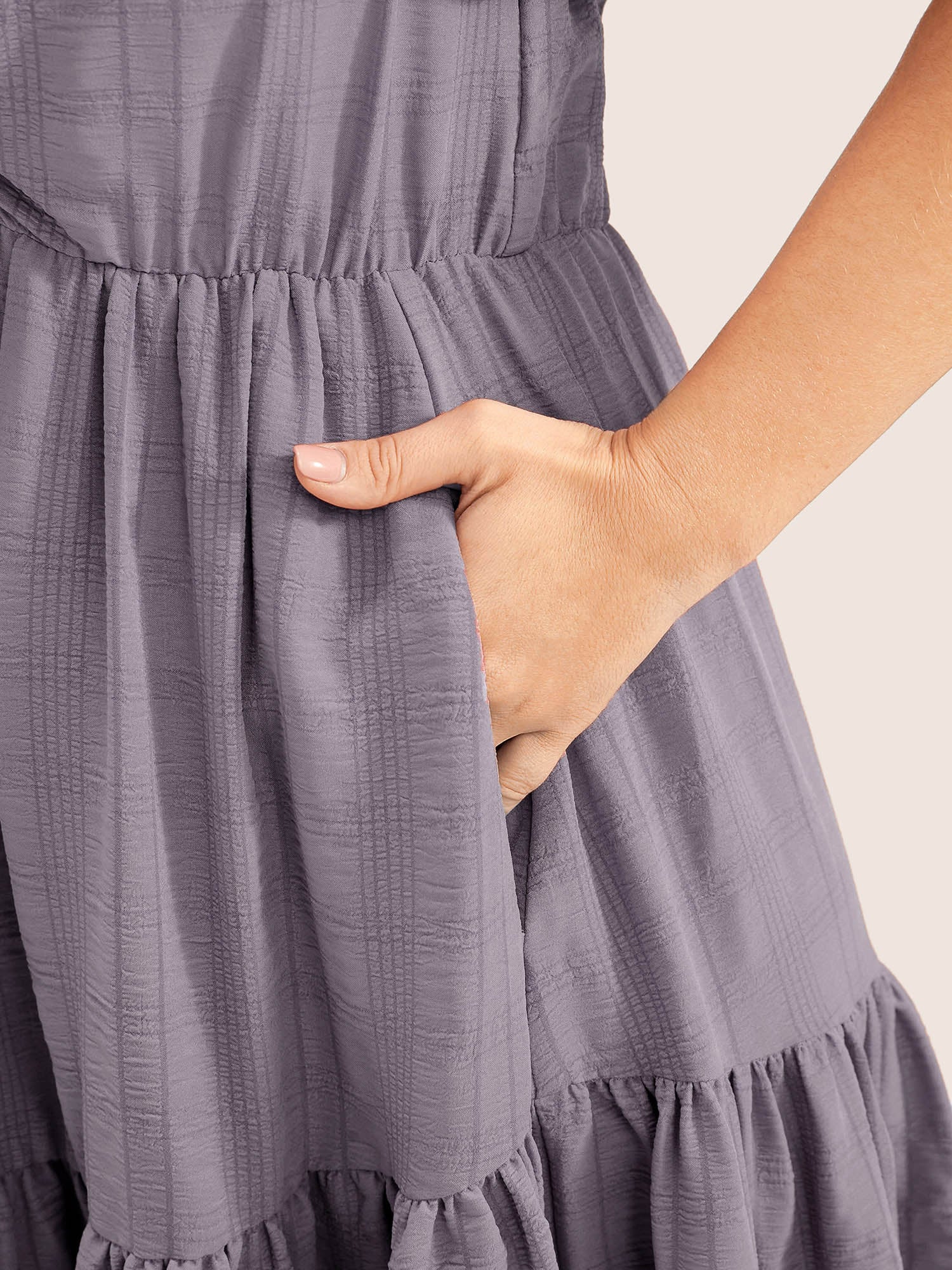 • Plain Ruched Drawstring Pocket Ruffle Tiered Dress