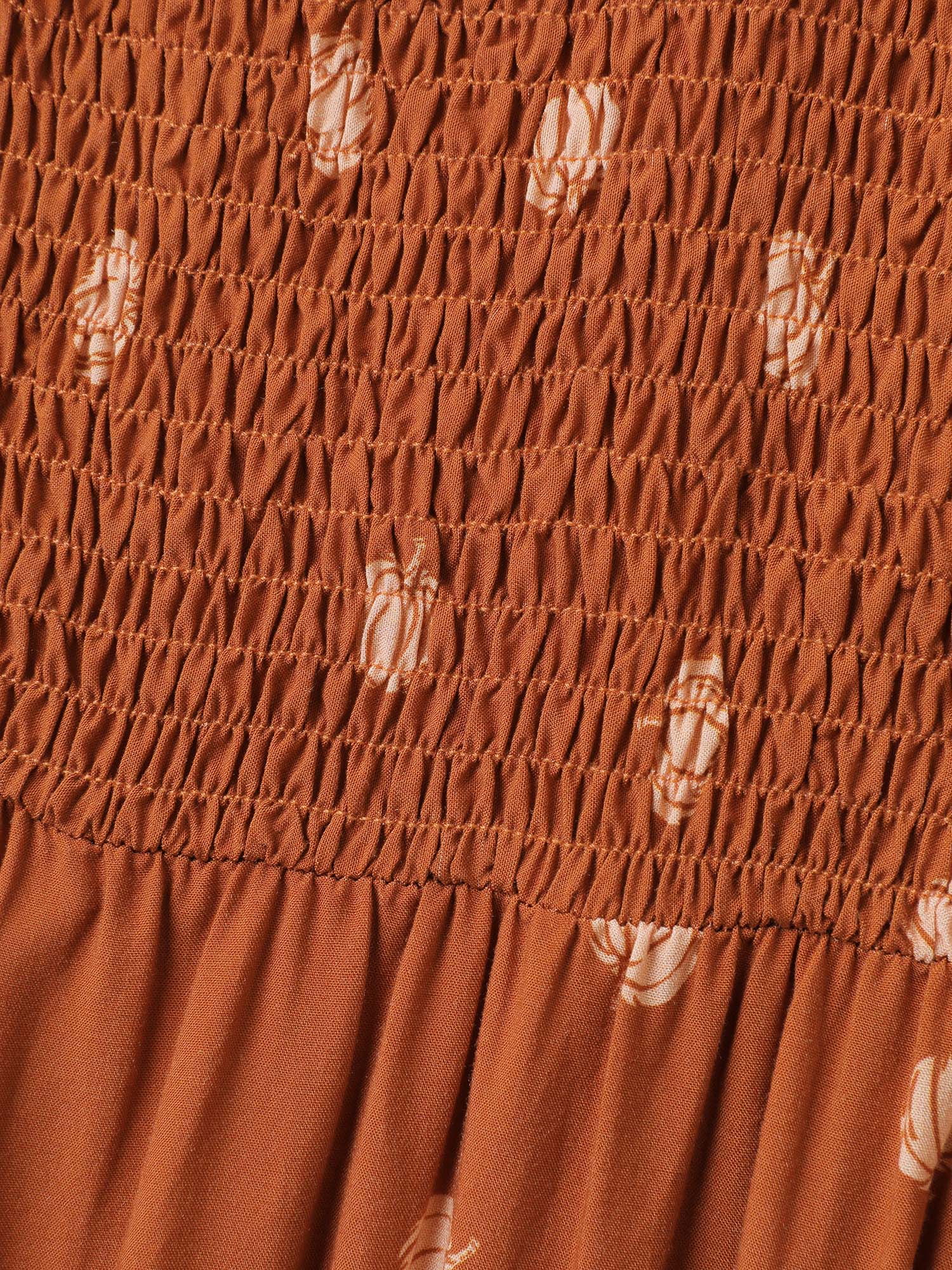 Polka Dots Shirred Bodice Pockets Maxi Dress