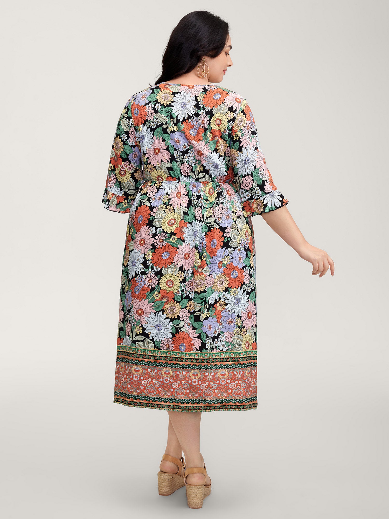 Rayon Floral Print V-Neck Maxi Dress