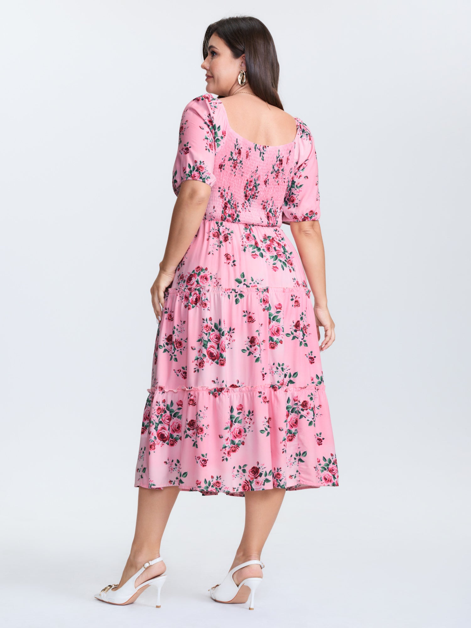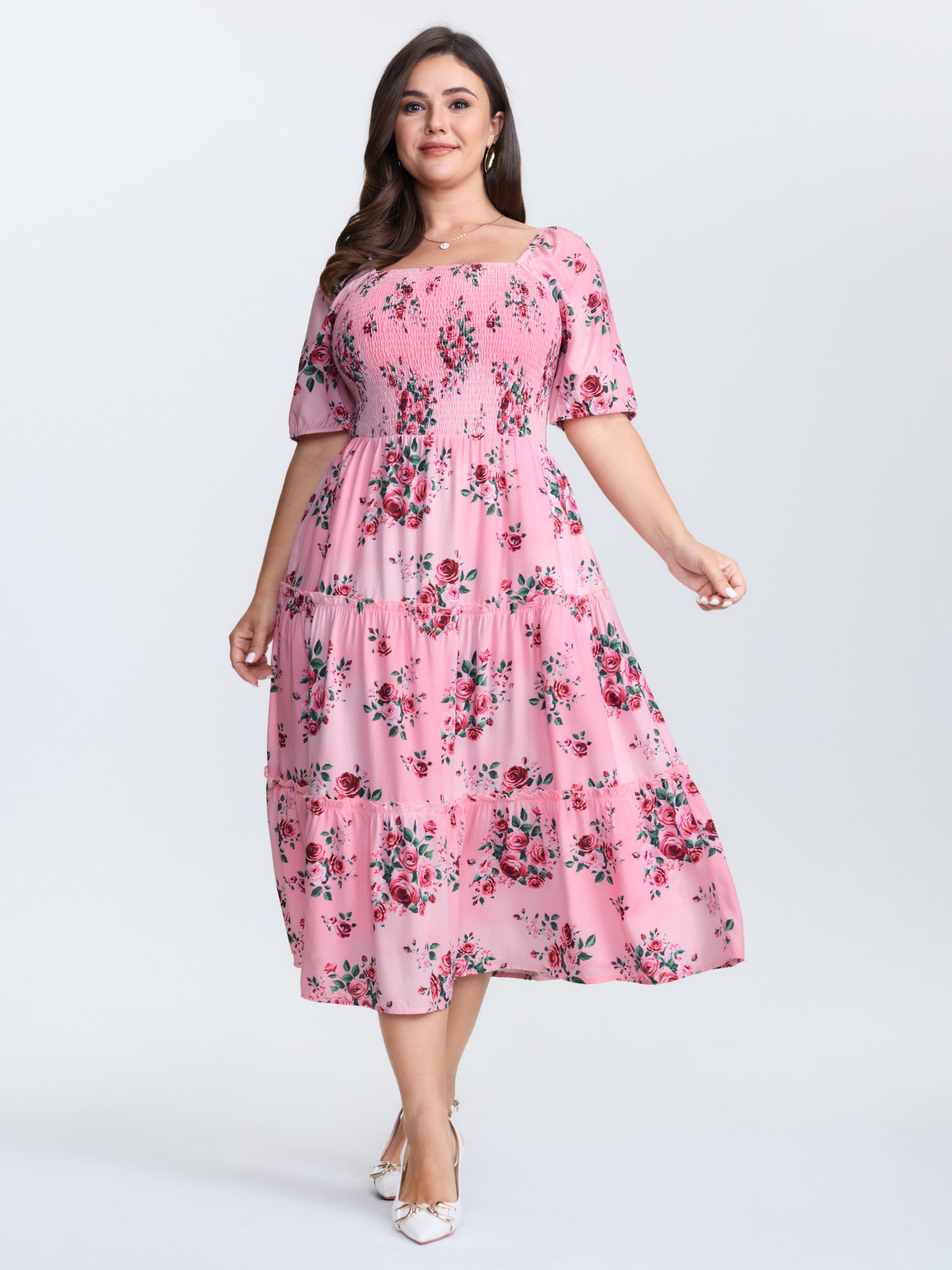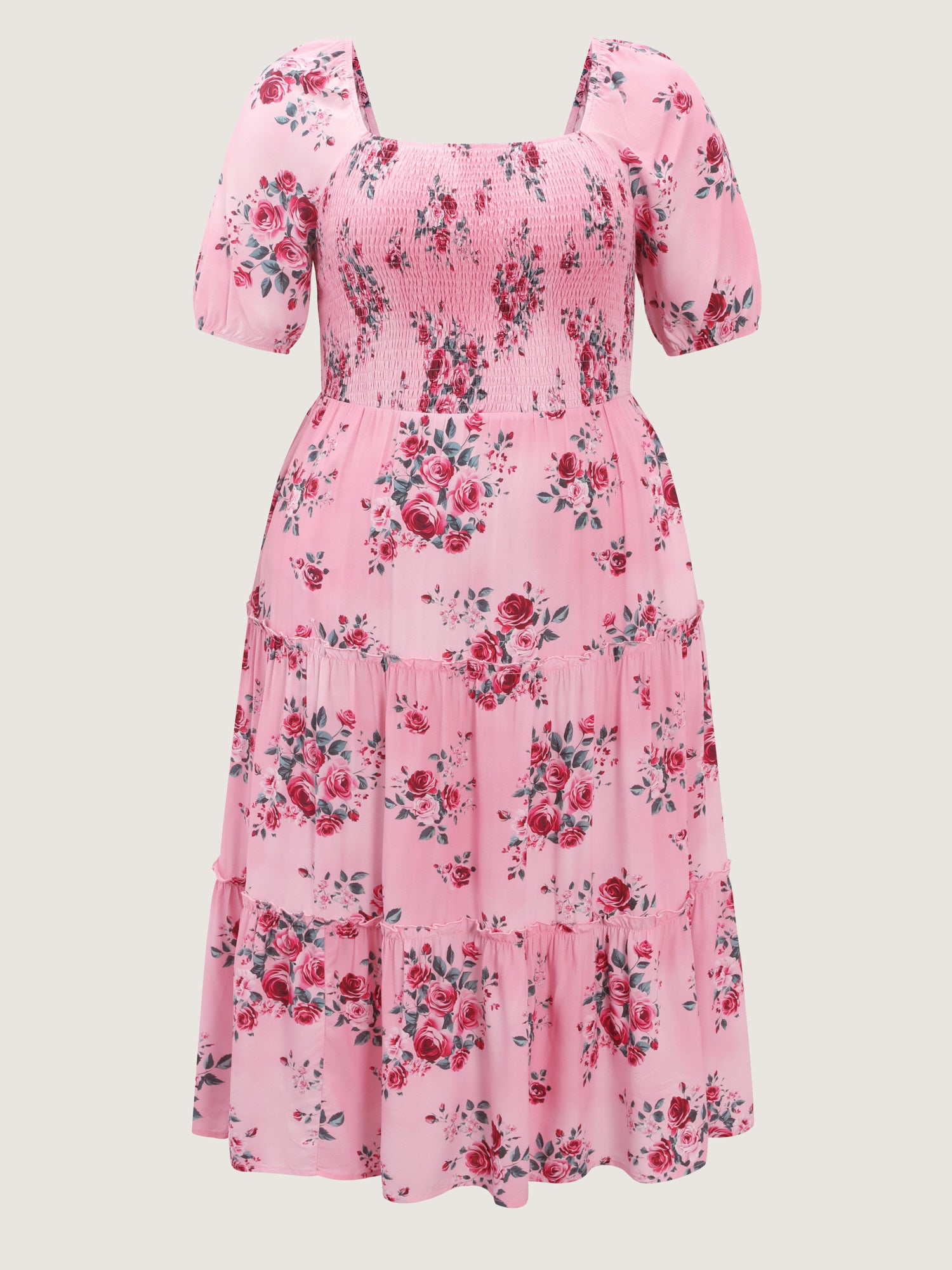 Shop Rose Print Stretchy Waist Shirred Midi Dress now and redefine your style with confidence at BloomChic. Tailored for mid and plus-size women. This trendy Dress, sizes 10-30. You can never go wrong with BloomChic Dresses. Color:Watermelon;Style:Romantic;Neckline:Square Neck;Sleeve Type:Raglan sleeve;Prints:Ditsy floral;Details:Shirred, Contrast;Pocket:Side seam pocket;Belt:No-belt;Closure Type:Non