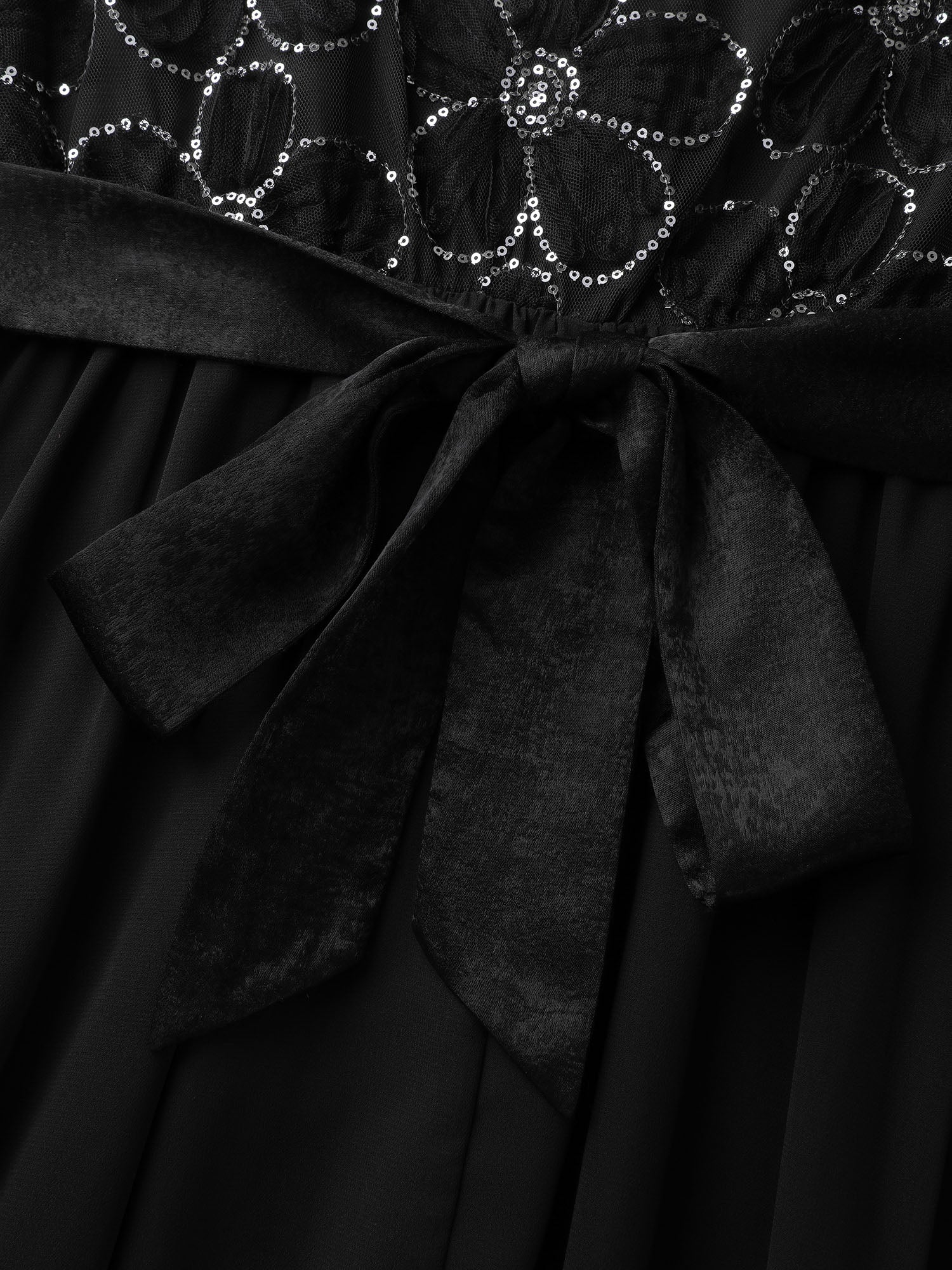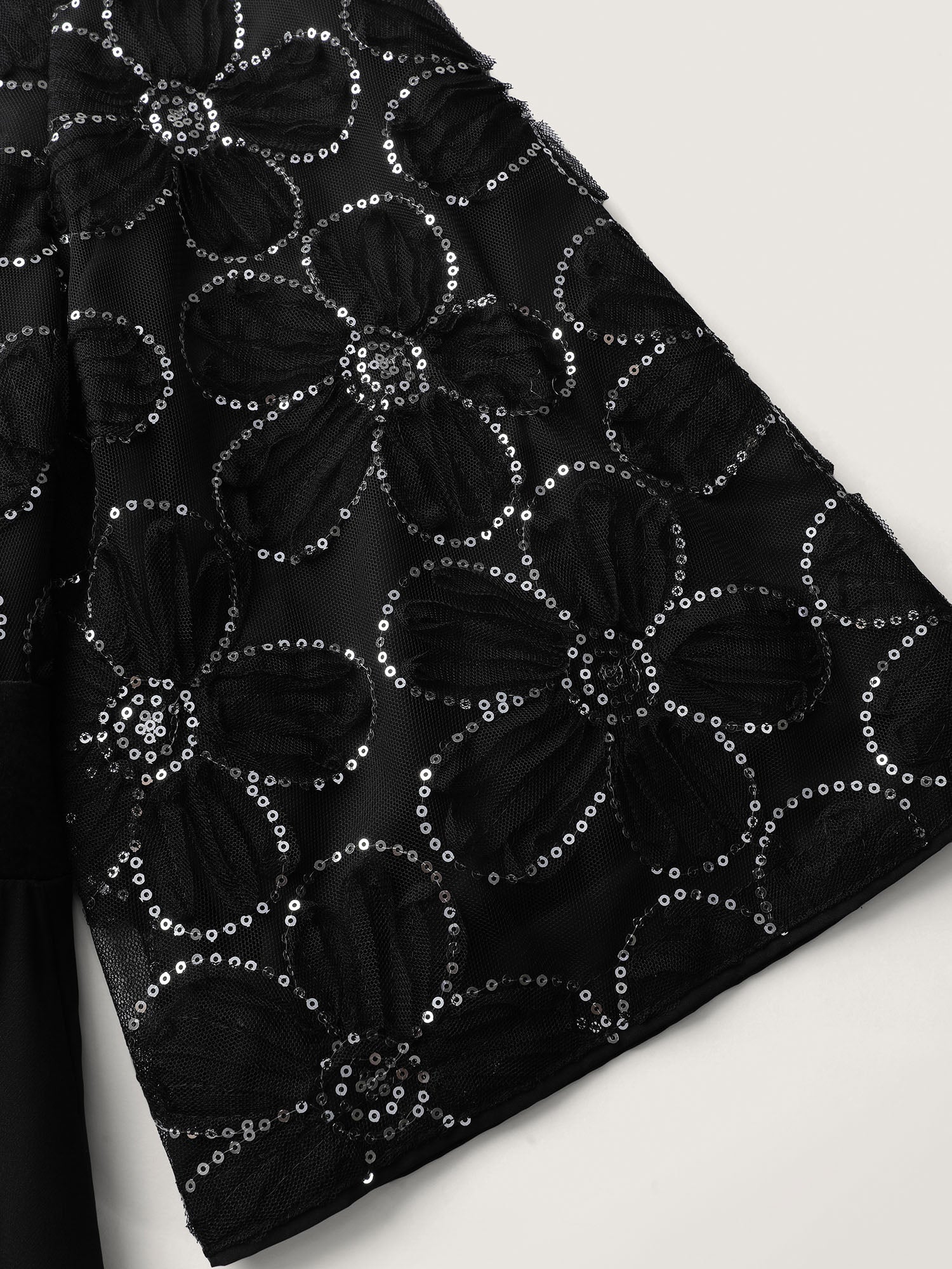 Sequin Floral Tulle Shirred Waist Maxi Dress