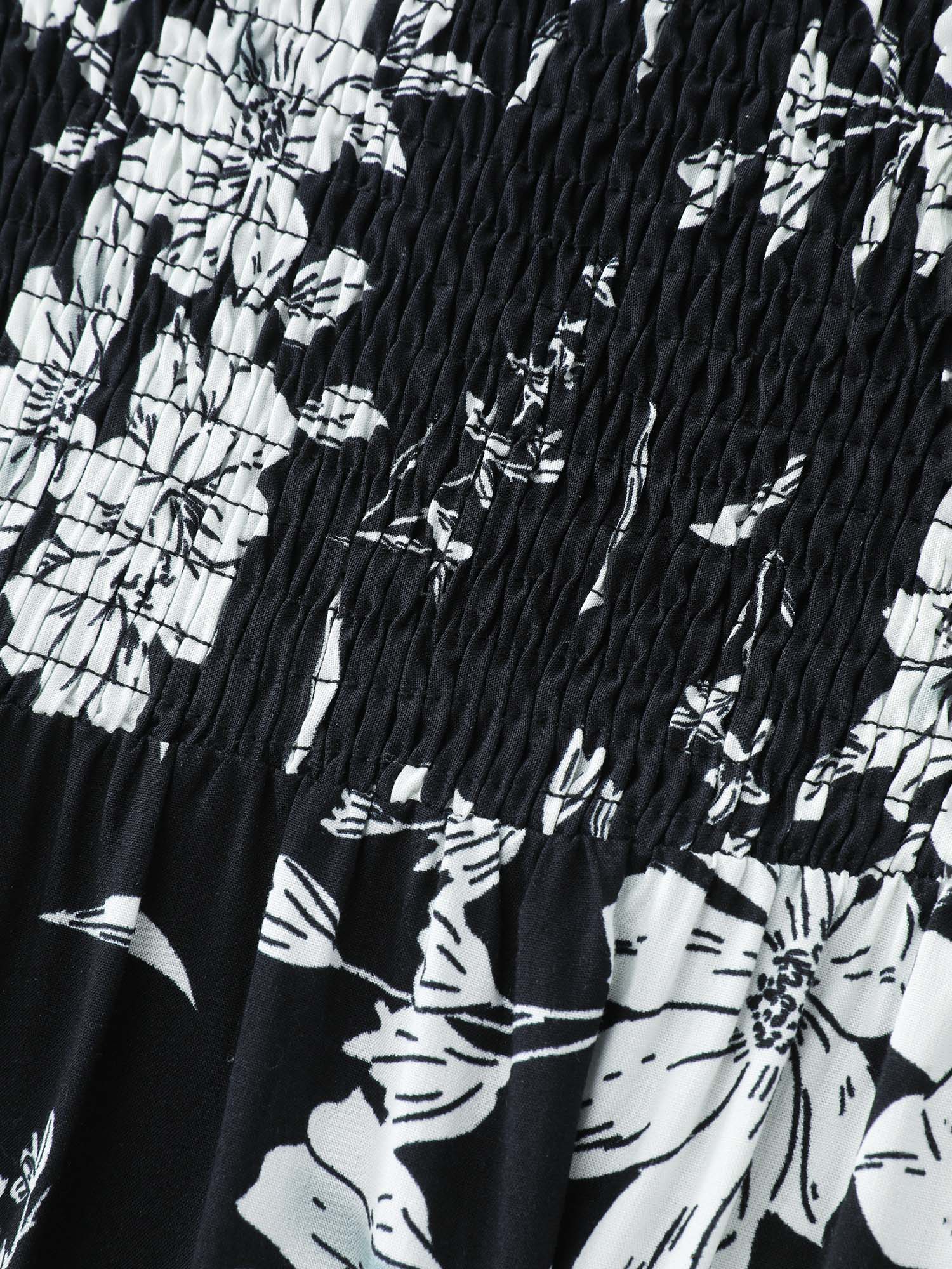Silhouette Flower Shirred Maxi Dress