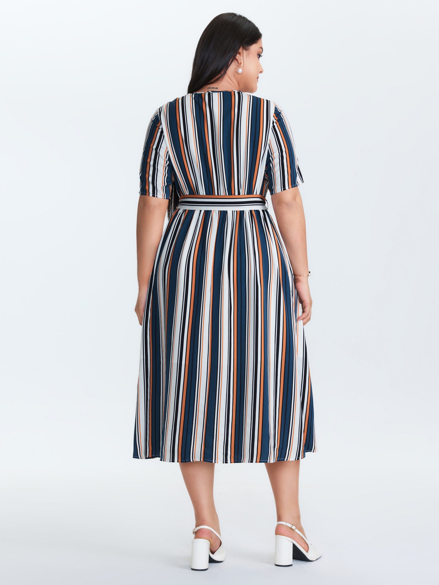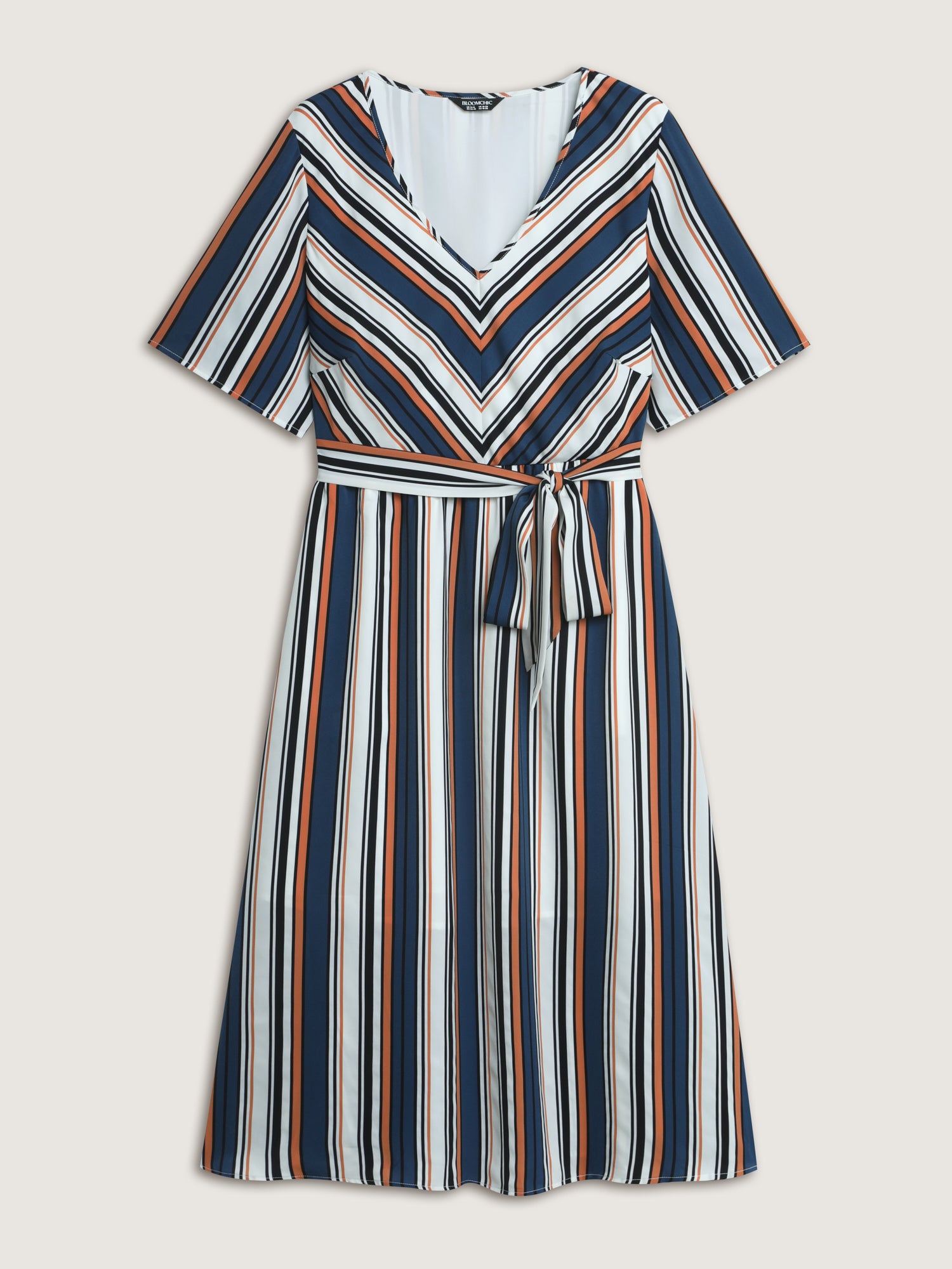 Shop Striped Waist-Tie Pockets Midi Dress now and redefine your style with confidence at BloomChic. Tailored for mid and plus-size women. This trendy Dress, sizes 10-30. You can never go wrong with BloomChic Dresses. Color:Multicolor;Style:Office;Neckline:V-neck;Sleeve Type:Regular Sleeve;Prints:Stripes;Pocket:Side seam pocket;Belt:Belt;Closure Type:Non