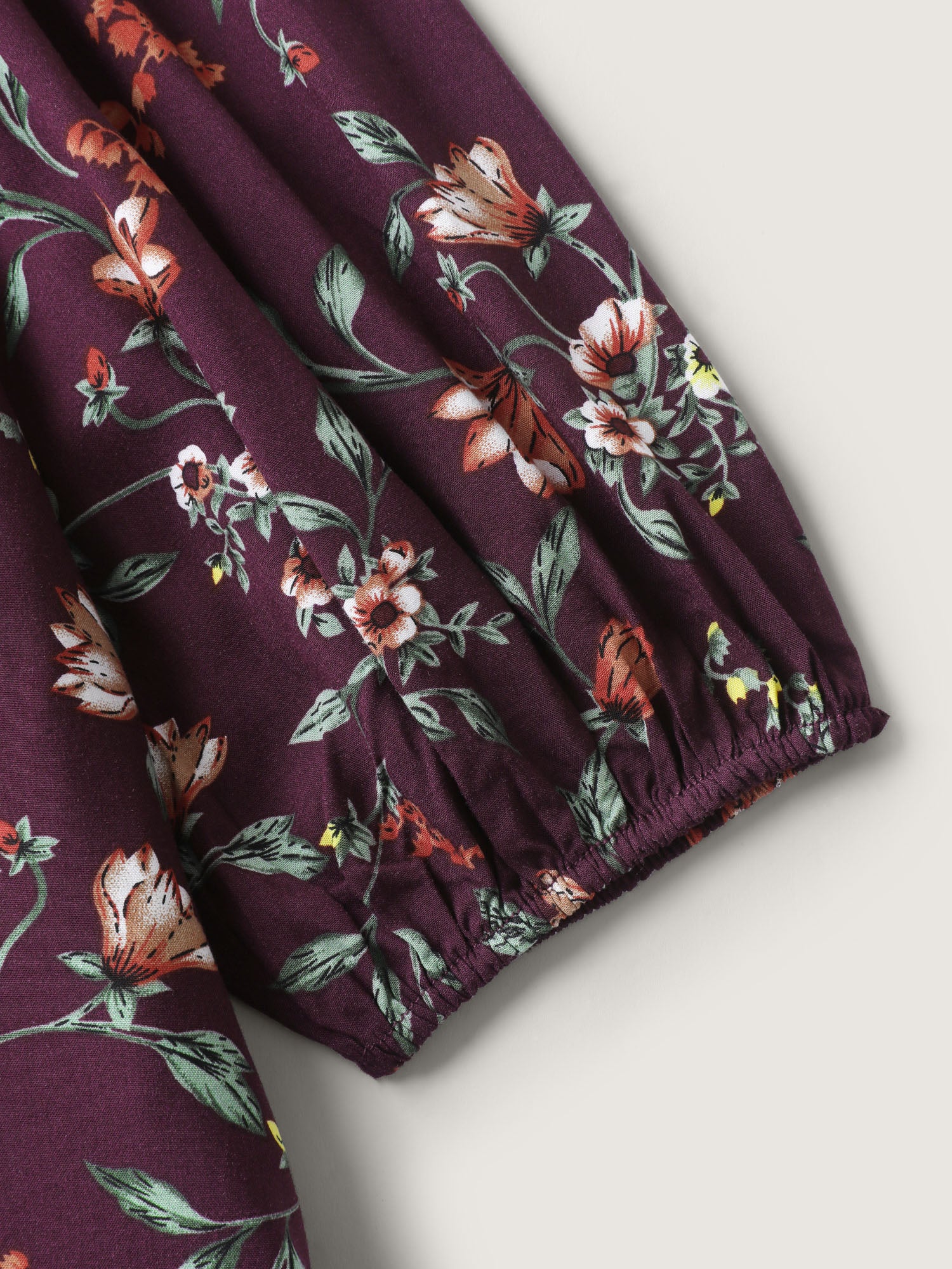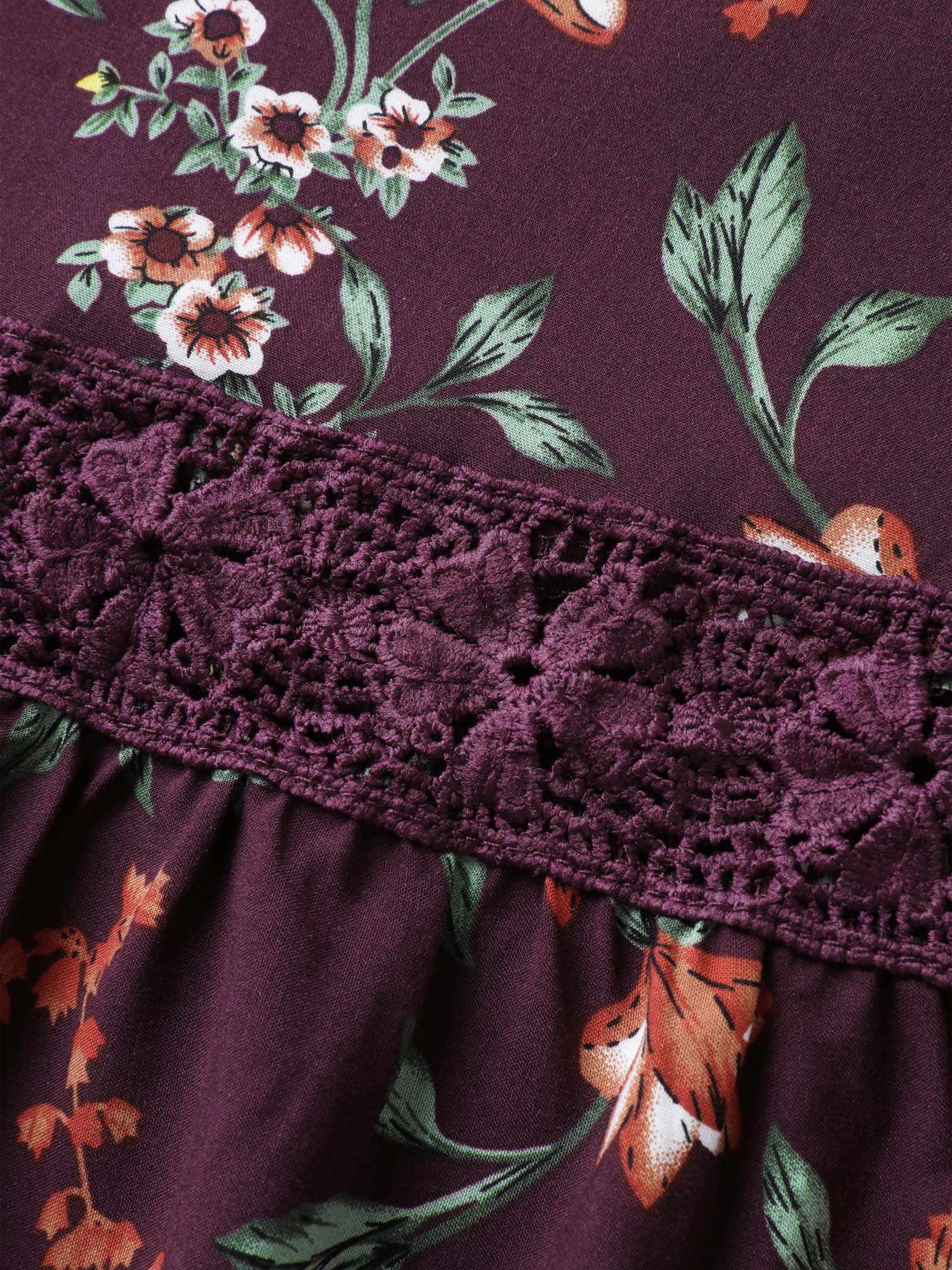 • Supersoft Floral Print Lace Trim Knee-Length Dress