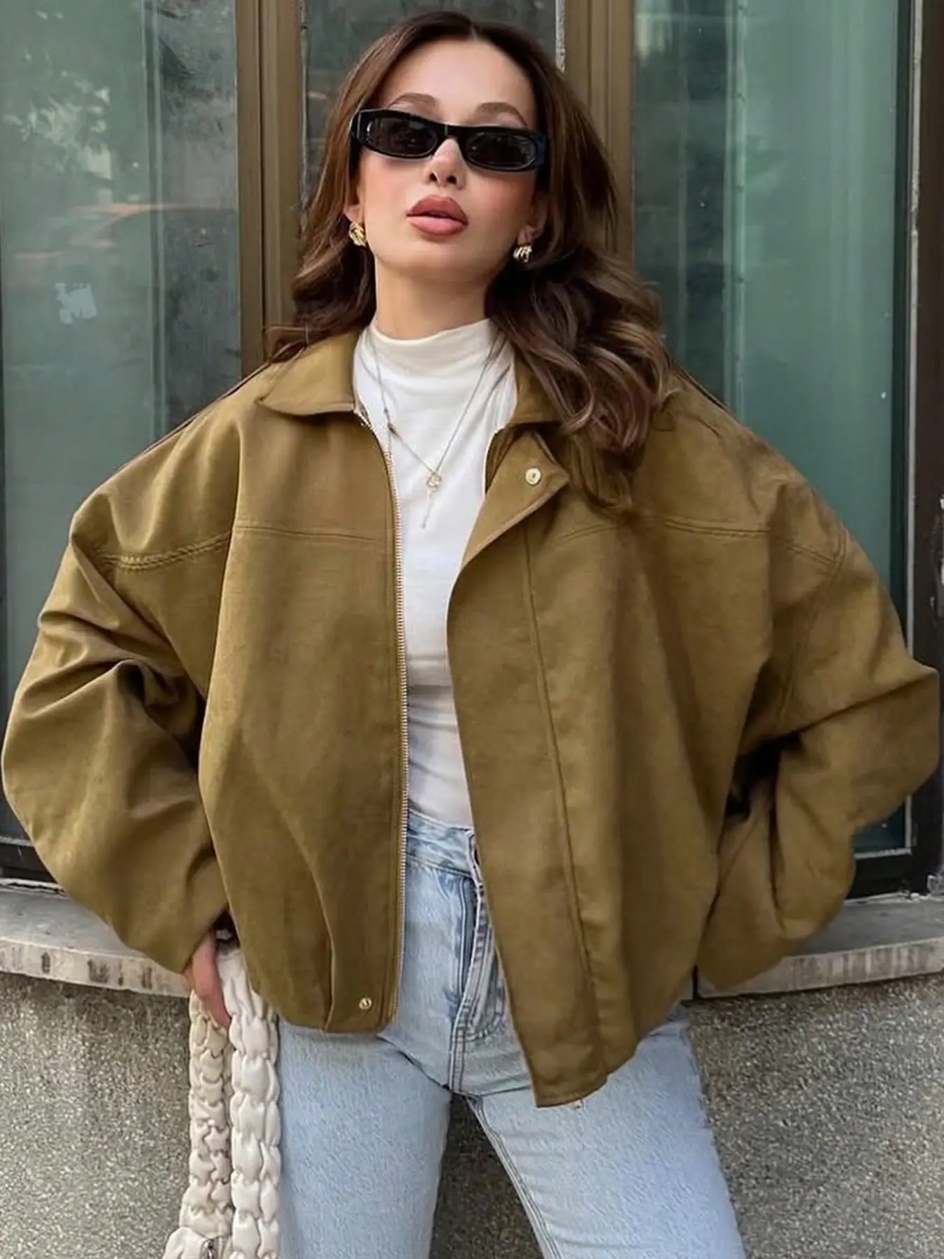 Refresh your outerwear collection with this on-trend aviator jacket for women. Designed in a modern cropped, oversized fit, it blends casual comfort with cool 2026 streetwear style.