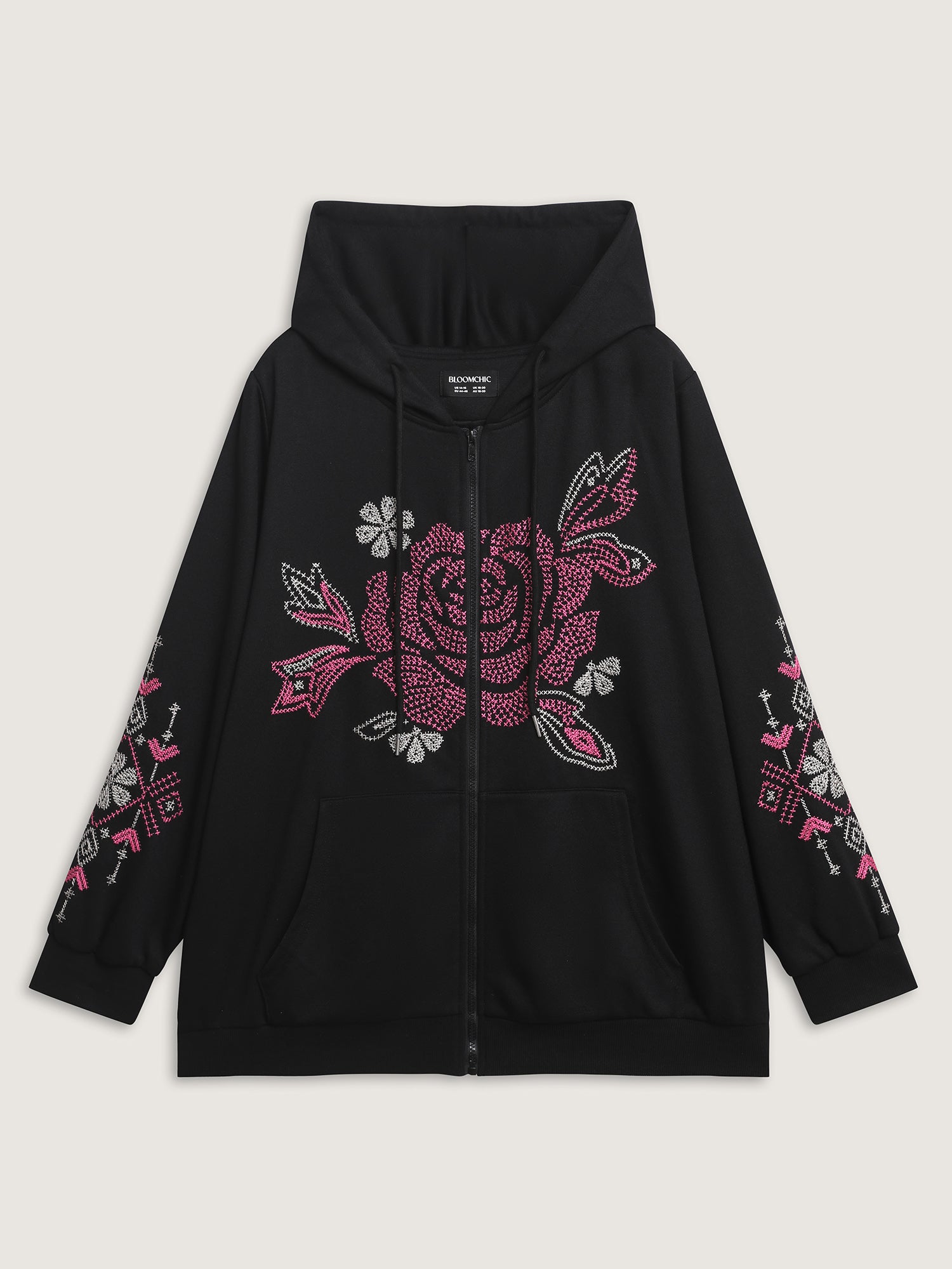 Shop Nostalgic Rose Embroidery Drawstring Hoodie now and redefine your style with confidence at BloomChic. Tailored for mid and plus-size women. This trendy Outerwear Women, sizes 10-30. Color:Black;Style:Leisure;Prints:Non;Details:Embroidered;Pocket:Patch pocket;Belt:No-belt;Closure Type:Zipper;Lining:No-lining