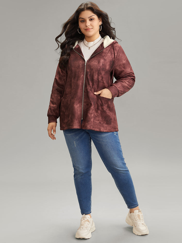 Shop Tie Dye Patchwork Fluffy Zipper Hooded Jacket now and redefine your style with confidence at BloomChic. Tailored for mid and plus-size women. This trendy Outerwear Women, sizes 10-30. Season:Winter;Color:Scarlet;Style:Casual;Pattern Type:Tie Dye;Details:Pocket, Zipper, Contrast, Drawstring, Patchwork, Lined;Pocket:It is perfectly sized to carry a phone.;Belt:No-belt;Closure Type:Zipper;Lining:Lining