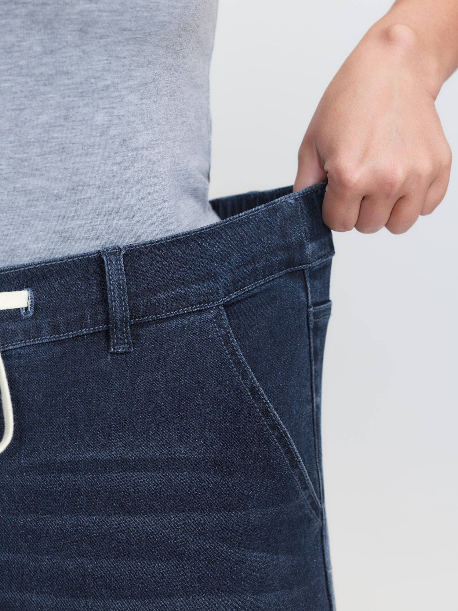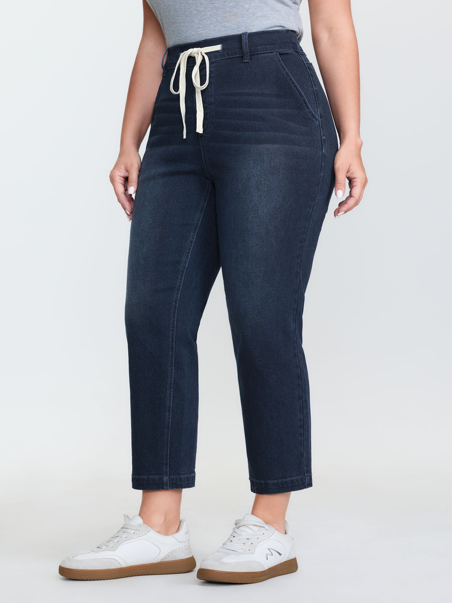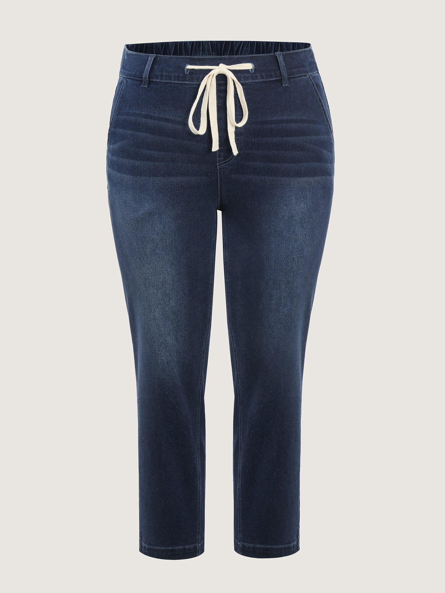 Shop Drawstring Waist Stretchy Straight Leg Jeans now and redefine your style with confidence at BloomChic. Tailored for mid and plus-size women. This trendy Denim Women, sizes 10-30. Color:Denim Indigo;Pocket:Slanted pocket;Closure Type:Open front with closure