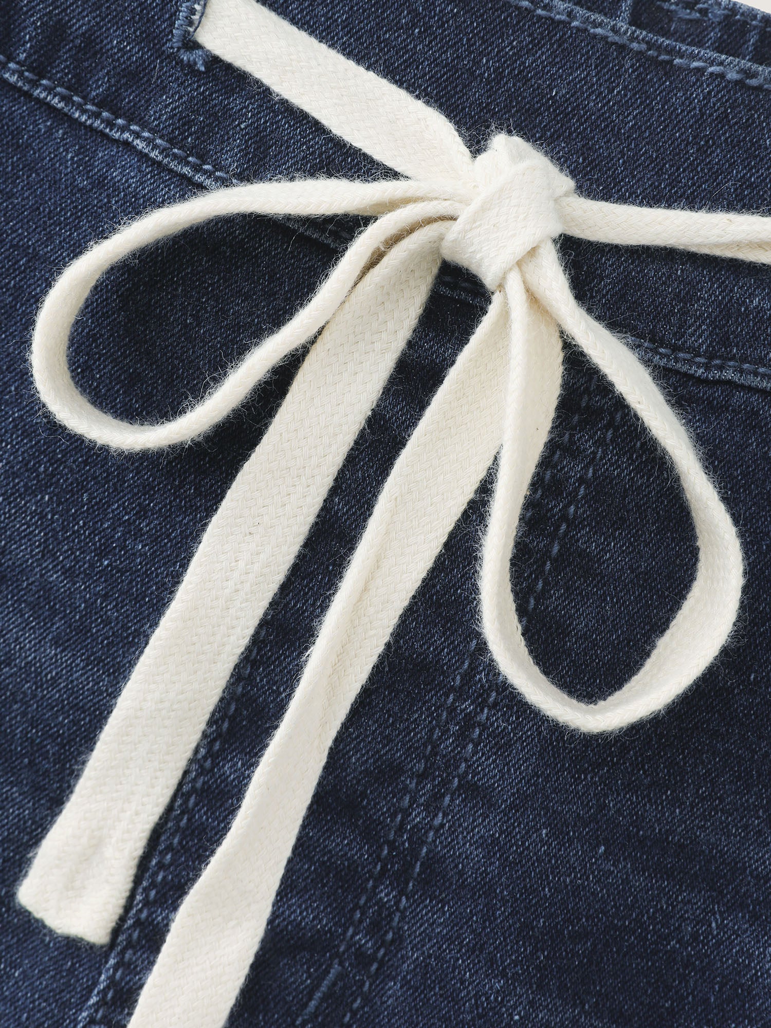 • Drawstring Waist Stretchy Straight Leg Jeans