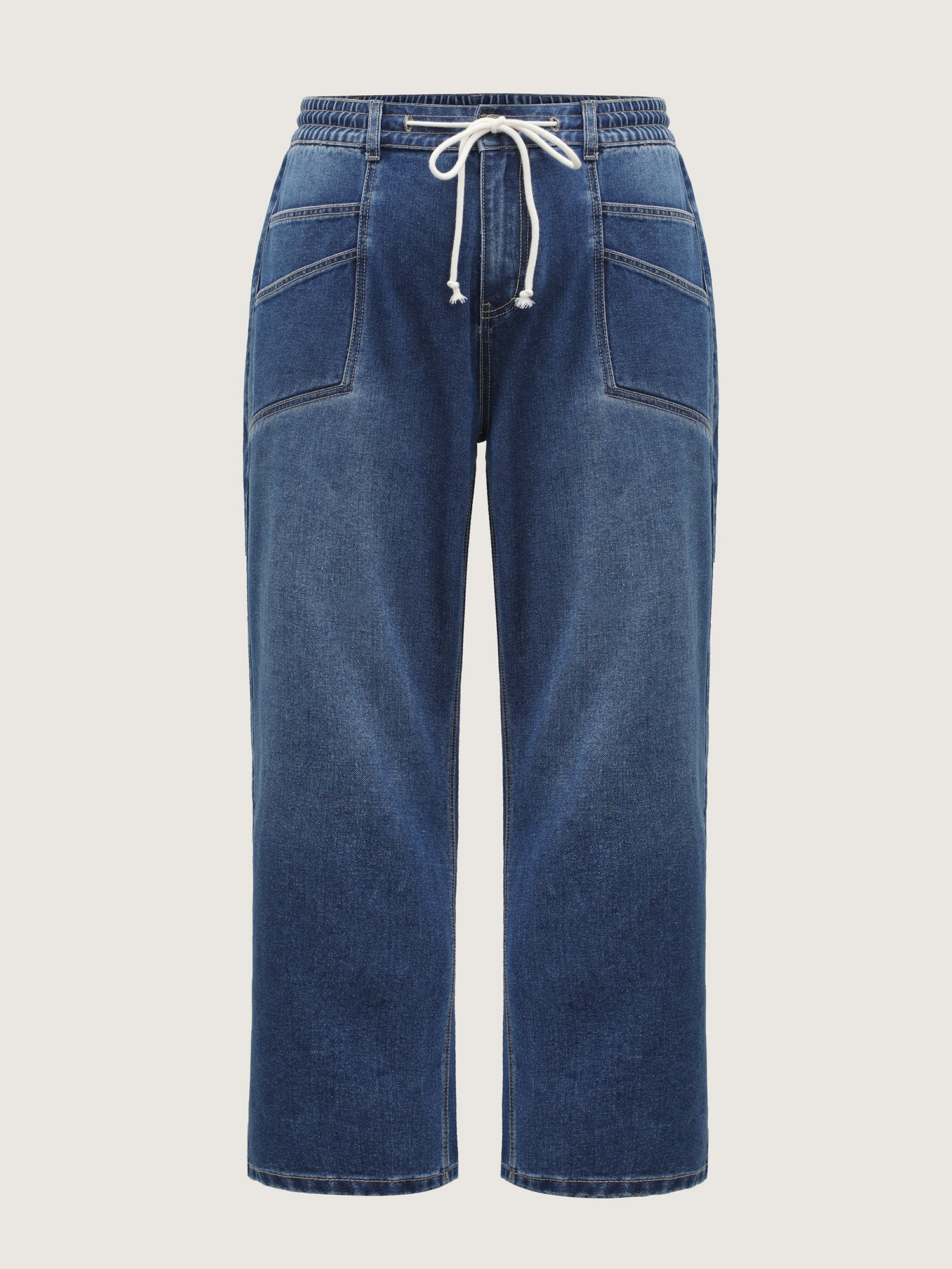 • Layered Pockets Elastic Waistband Straight-Leg Jeans