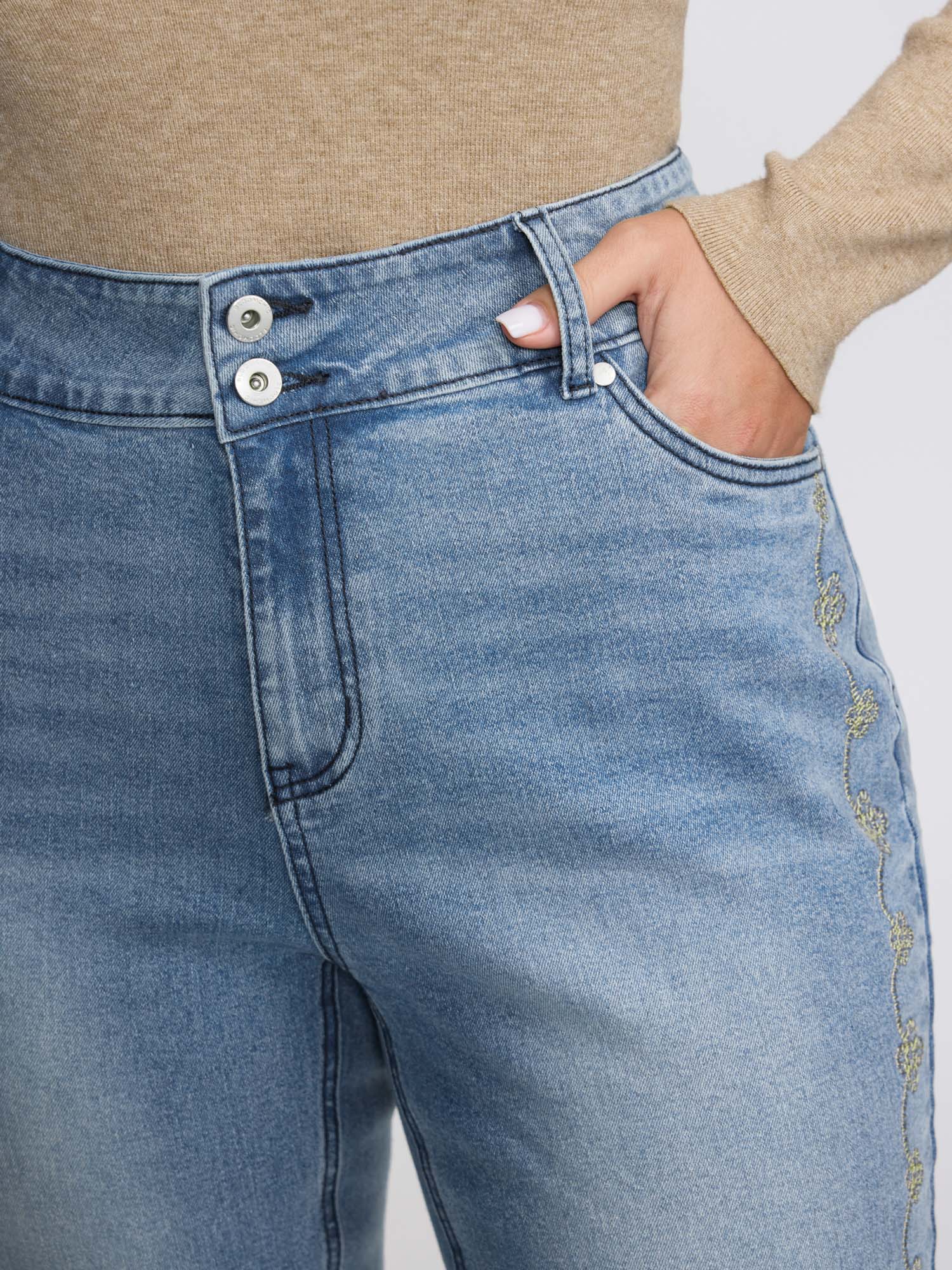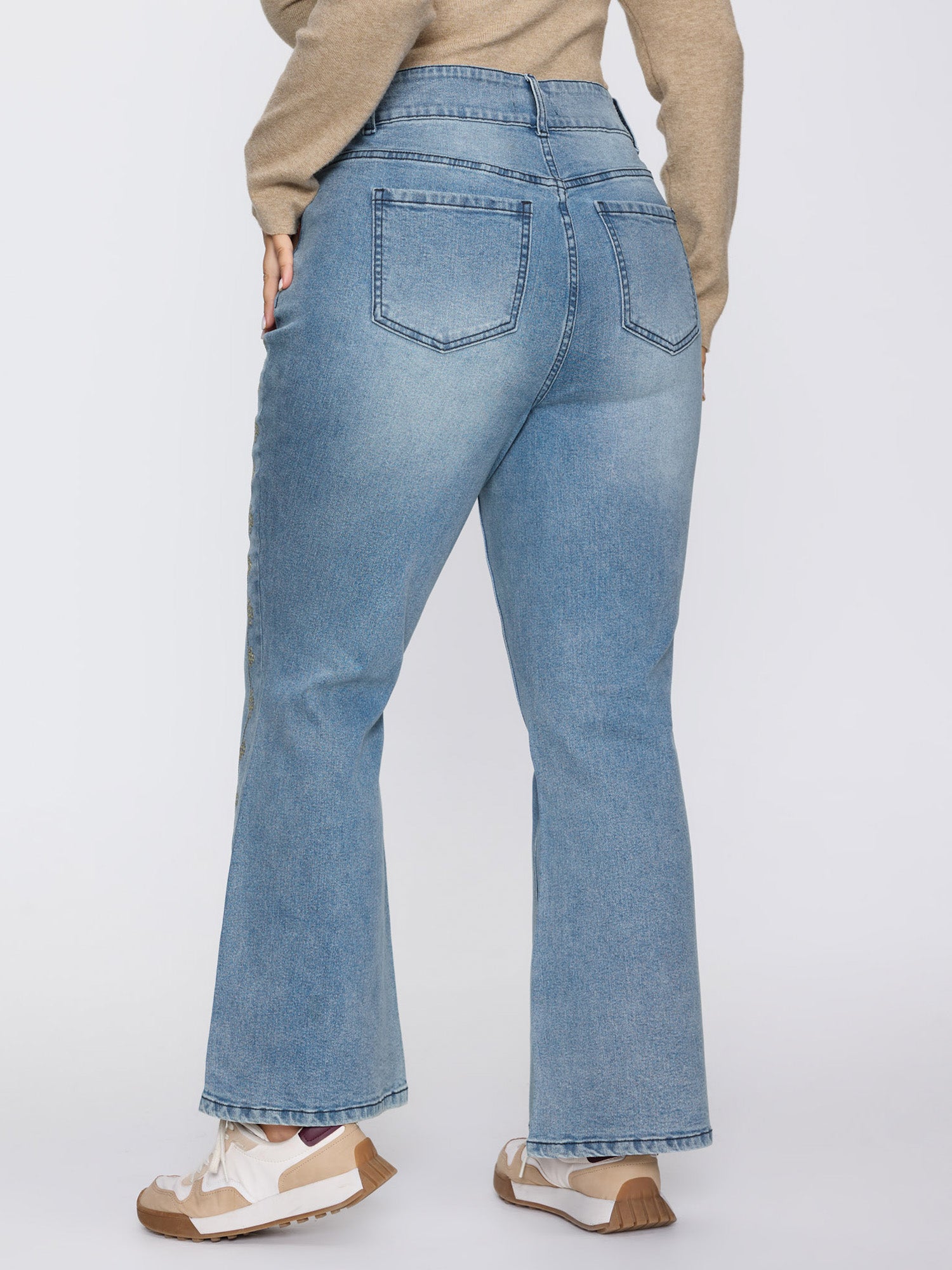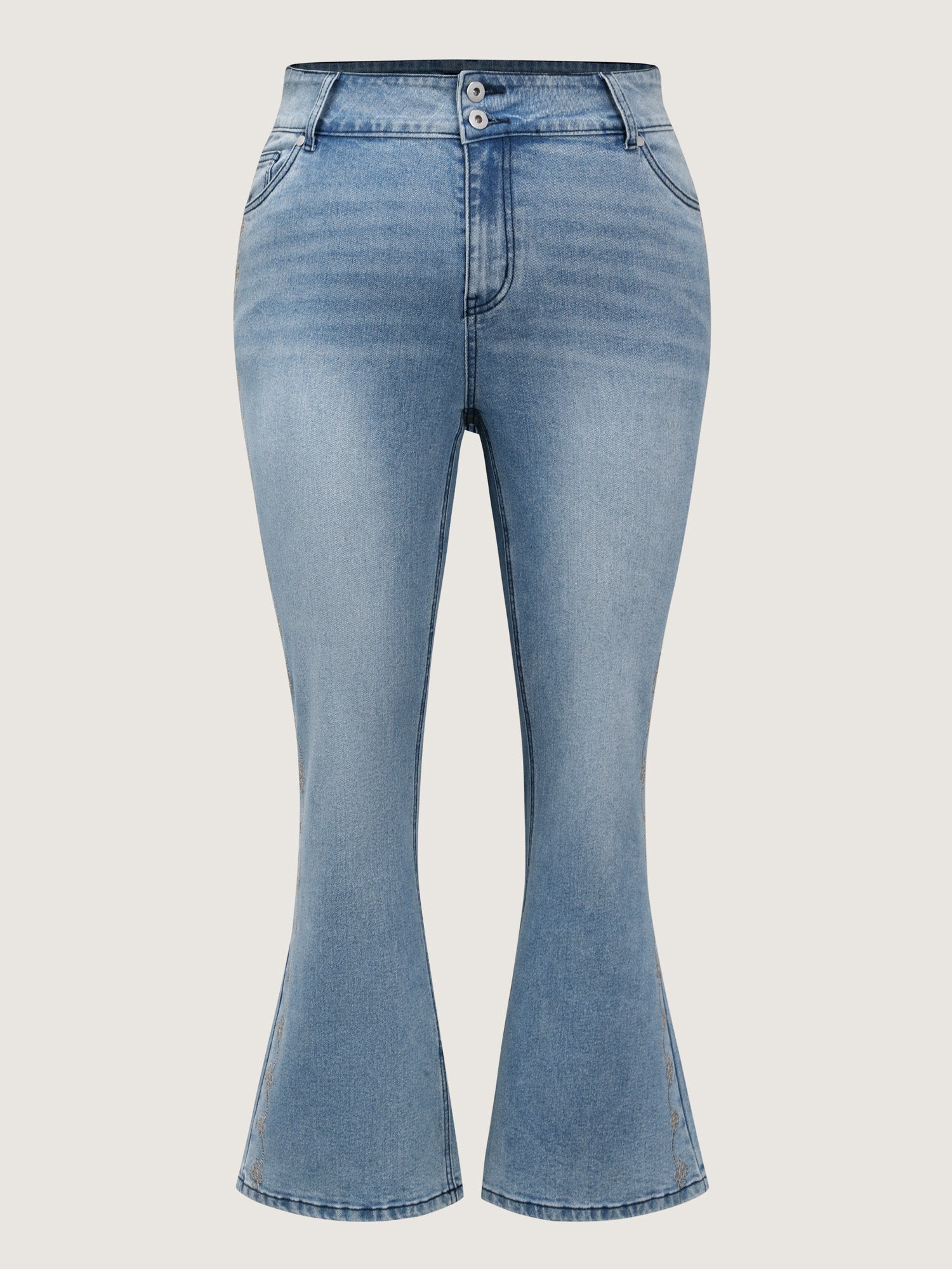 Shop Supersoft Floral Embroidered Flared Hem Jeans now and redefine your style with confidence at BloomChic. Tailored for mid and plus-size women. This trendy Denim Women, sizes 10-30. Color:Denimindigo;Style:Leisure;Prints:Non;Details:Embroidered;Pocket:Slanted pocket;Belt:No-belt;Closure Type:Open front with closure;Wash:Medium Wash