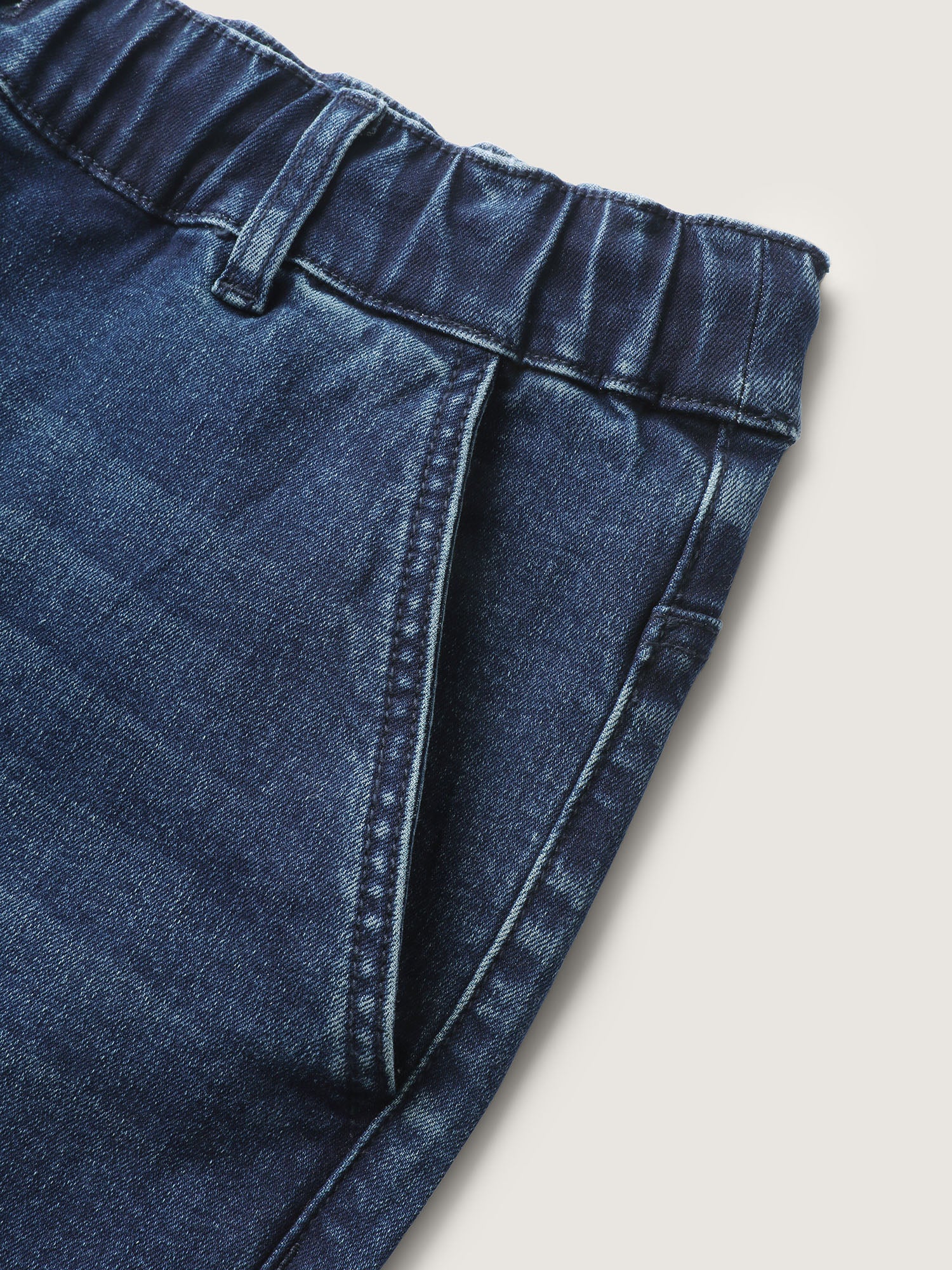• Vintage Wash Rubber Waist Straight-Leg Jeans