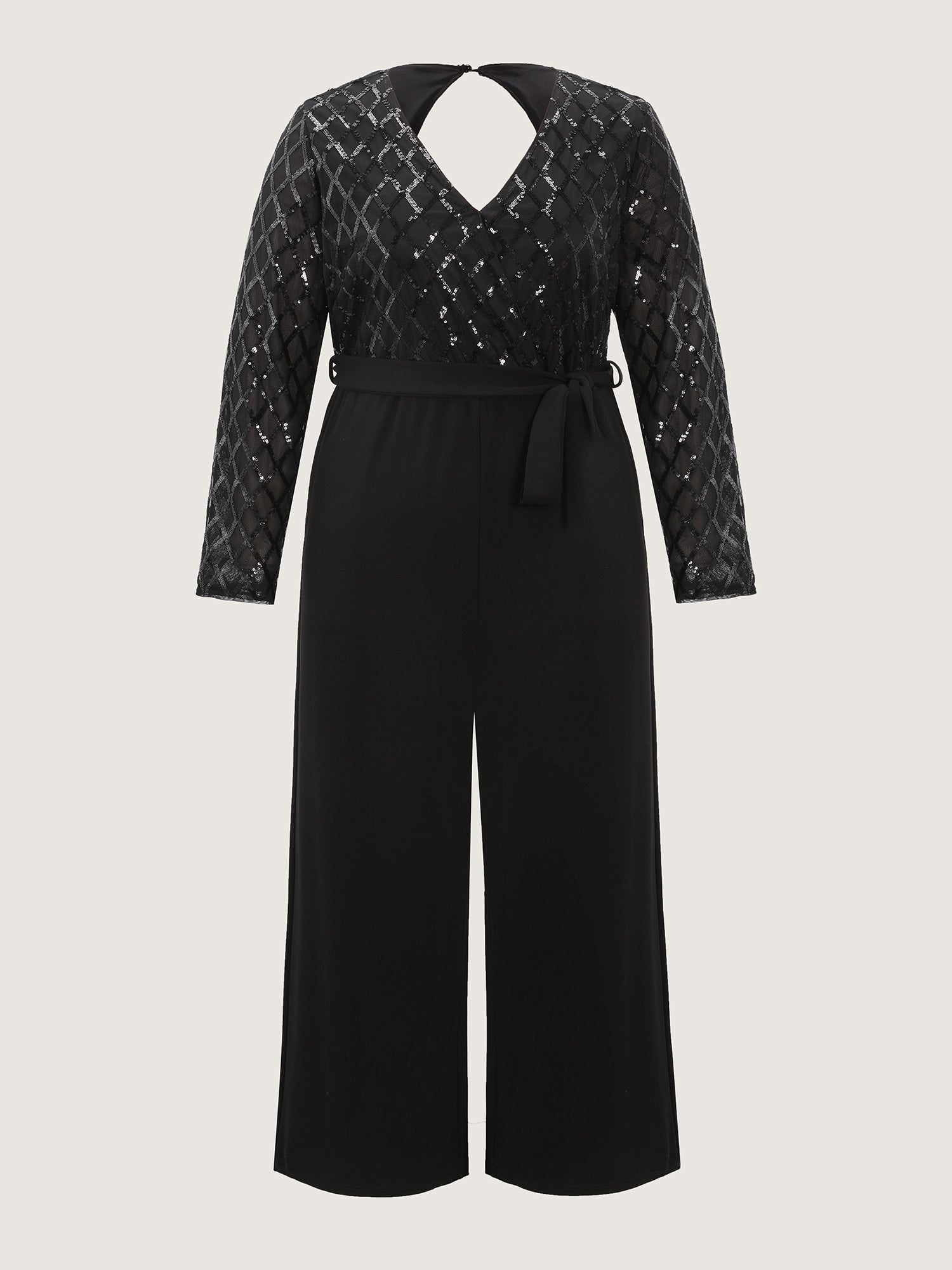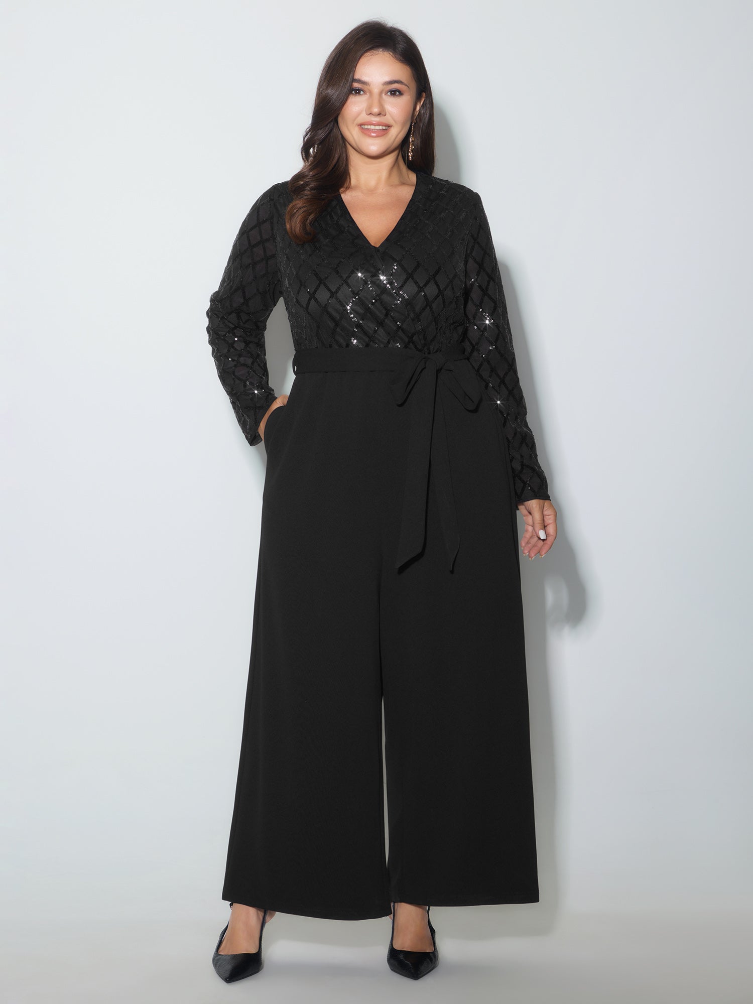 Shop Sparkly Sequin Side-Tie Jumpsuin now and redefine your style with confidence at BloomChic. Tailored for mid and plus-size women. This trendy Jumpsuits Women, sizes 10-30. Color:Black;Style:Party&Cocktail;Neckline:V-neck;Sleeve Type:Regular Sleeve;Prints:Synthetic texture;Pocket:Side seam pocket;Belt:Belt;Closure Type:Non