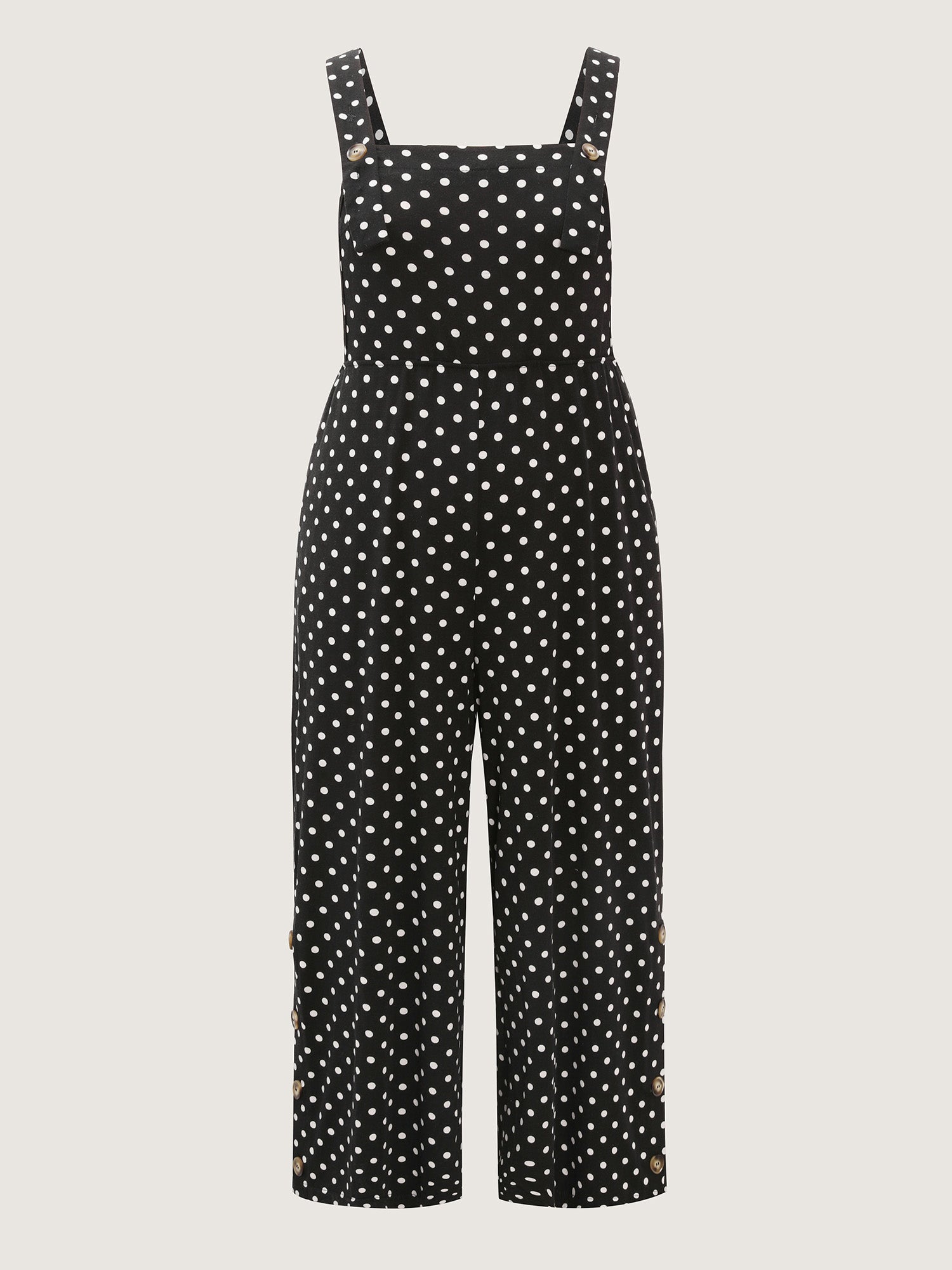 Shop Stretchy Polka Dots Lounge Jumpsuit now and redefine your style with confidence at BloomChic. Tailored for mid and plus-size women. This trendy Loungewear Women, sizes 10-30. Color:Black;Style:Leisure;Neckline:Non;Sleeve Type:Sleeveless;Prints:Polka dots;Details:Button, Contrast;Pocket:Side seam pocket;Belt:No-belt;Closure Type:Non