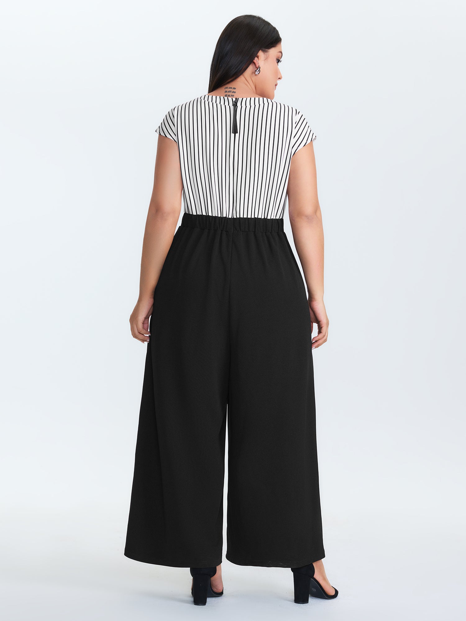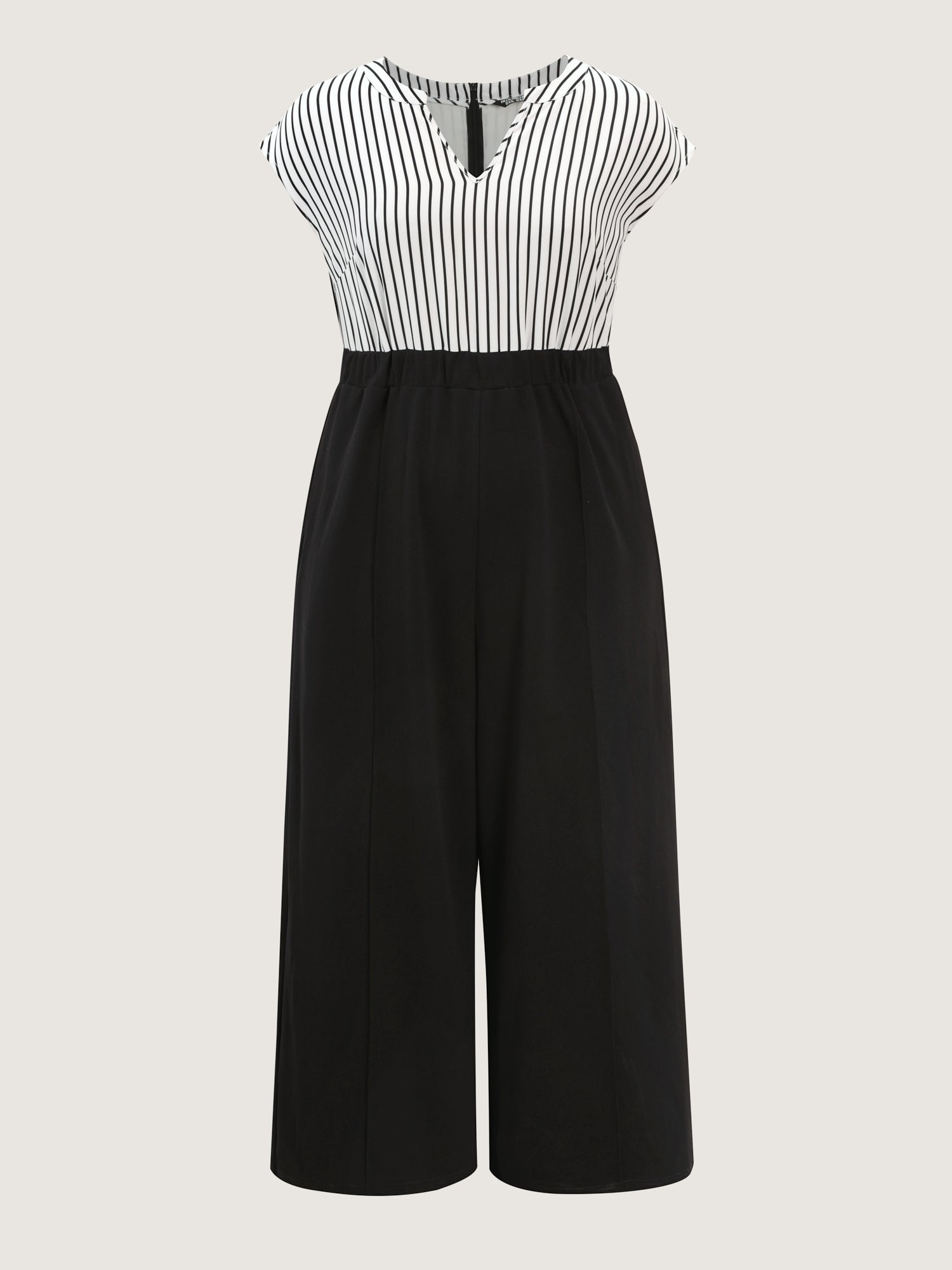 Shop Striped Color Contrast Jumpsuit now and redefine your style with confidence at BloomChic. Tailored for mid and plus-size women. This trendy Jumpsuits Women, sizes 10-30. Color:Black;Style:Office;Neckline:Flat collar with V-notch;Sleeve Type:Cap sleeve;Prints:Stripes;Details:Contrast;Pocket:No-pocket;Belt:No-belt;Closure Type:Non