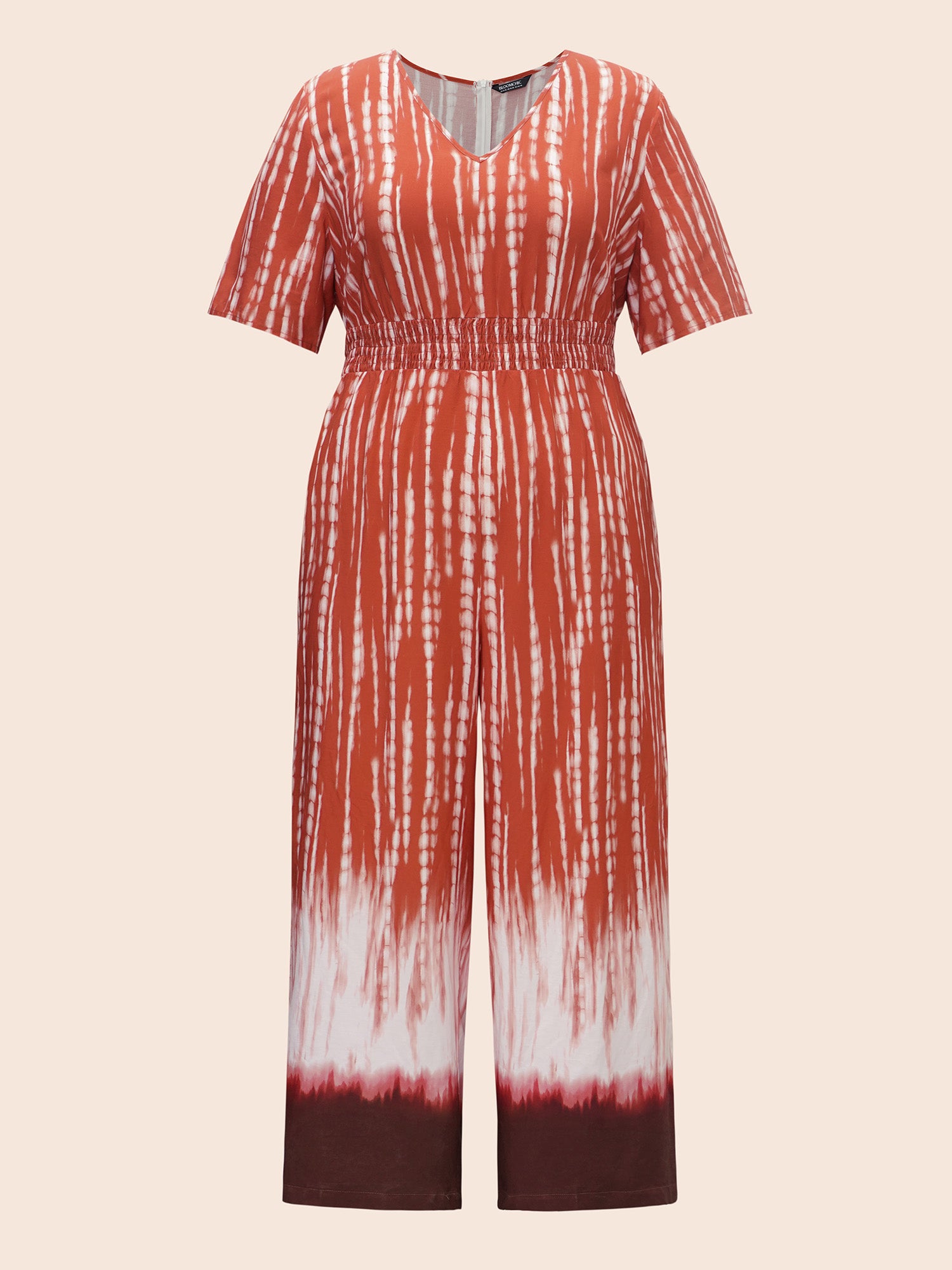 Shop V Neck Gradient Dyeing Shirred Jumpsuit now and redefine your style with confidence at BloomChic. Tailored for mid and plus-size women. This trendy Jumpsuits Women, sizes 10-30. Season:Fall;Color:Multicolor;Style:At the Office;Neckline:V-neck;Prints:Gradient dyeing;Details:Shirred;Pocket:Side seam pocket;Belt:No-belt;Closure Type:Non