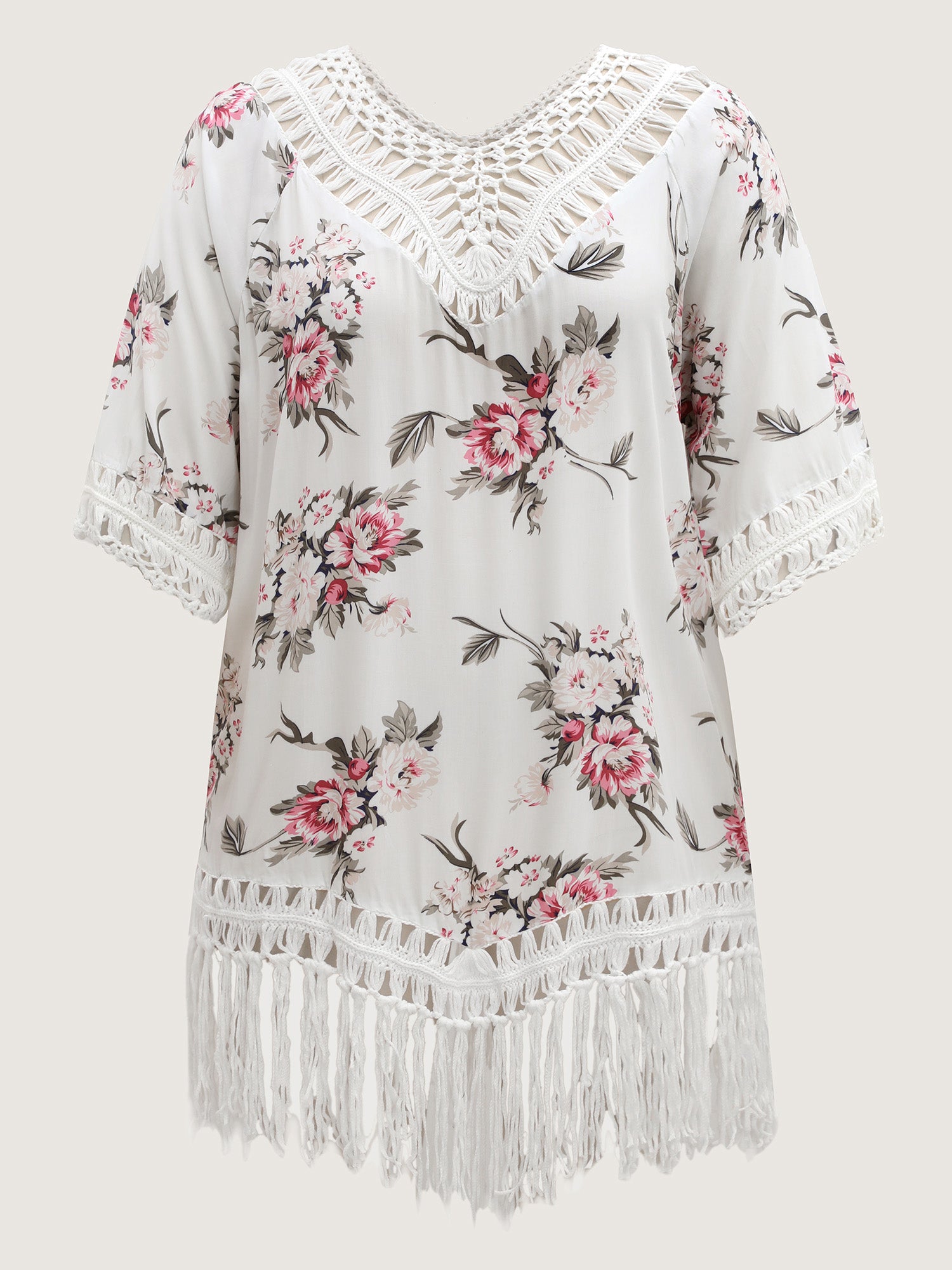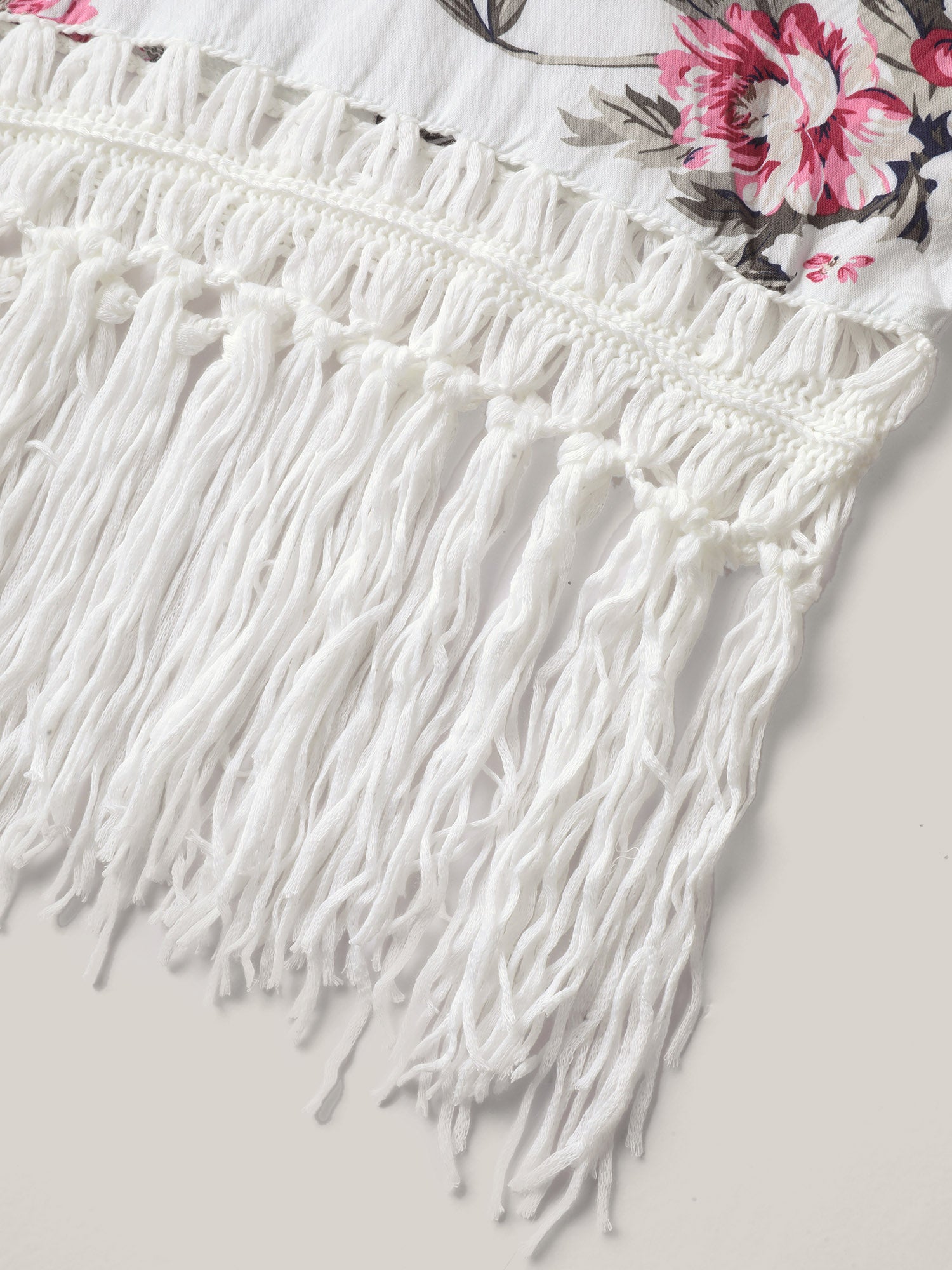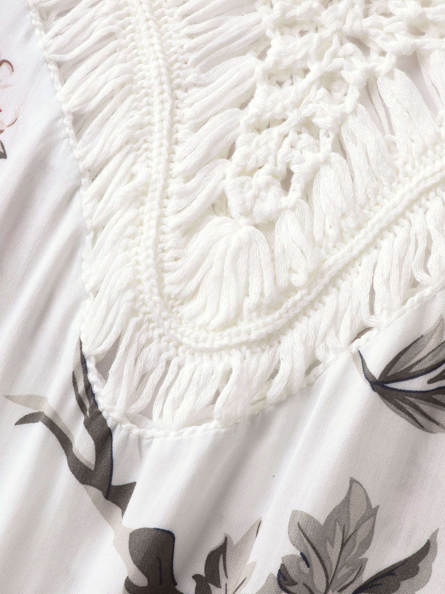 Floral Print Crochet Fringe Hem Swim Cover-Up