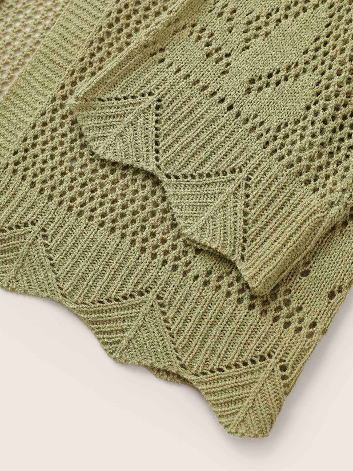 • Plants Hollow Out Ties Scalloped Trim Cardigan