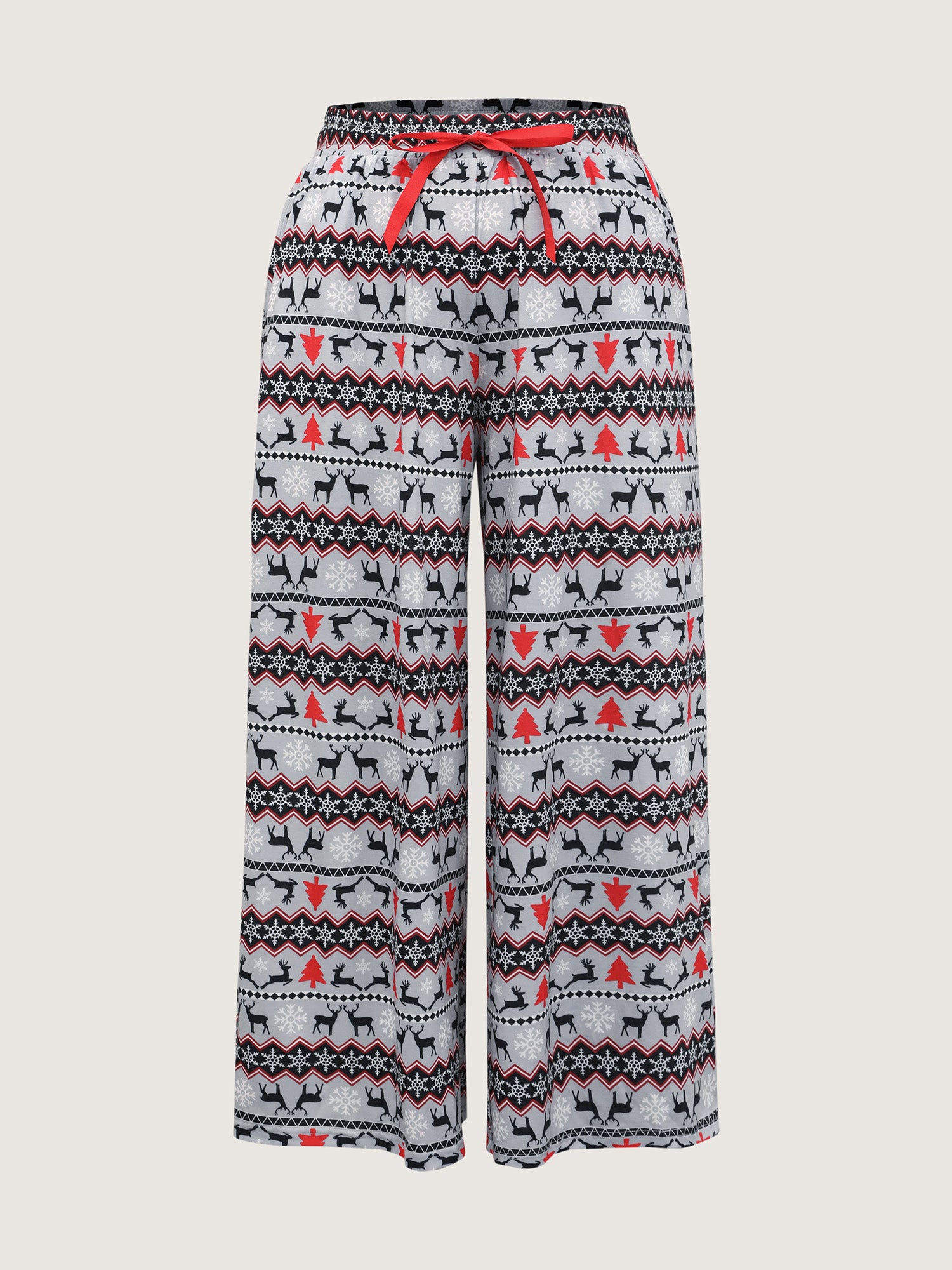 Festive Print Color Contrast Drawstring Lounge Bottoms