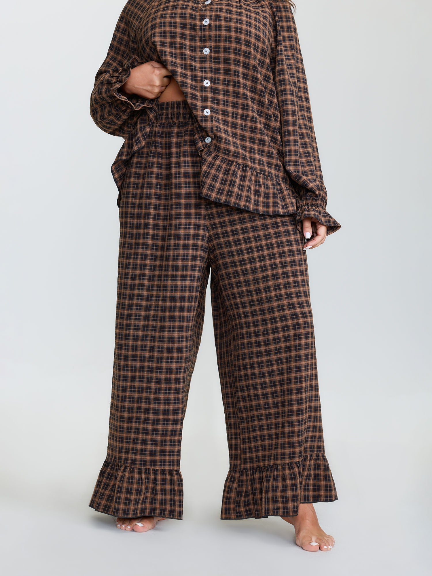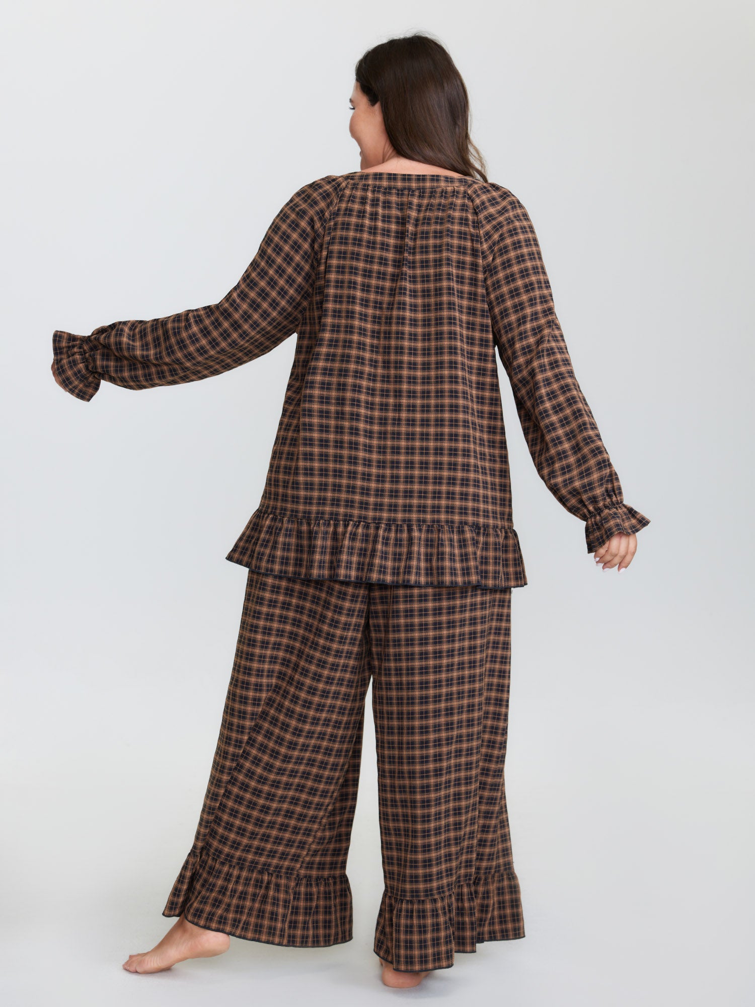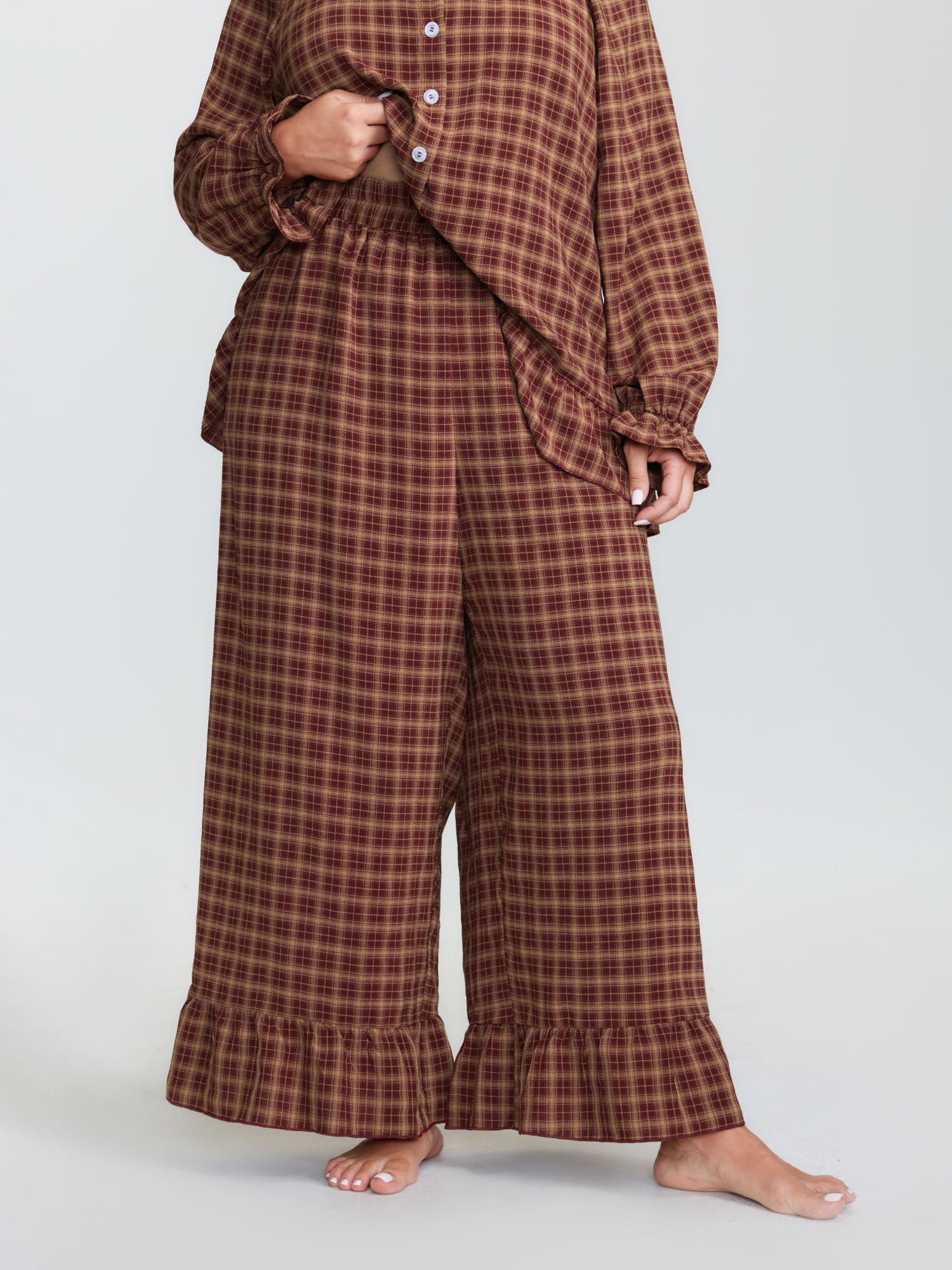 Gingham Ruffled Hem Loungewear Set