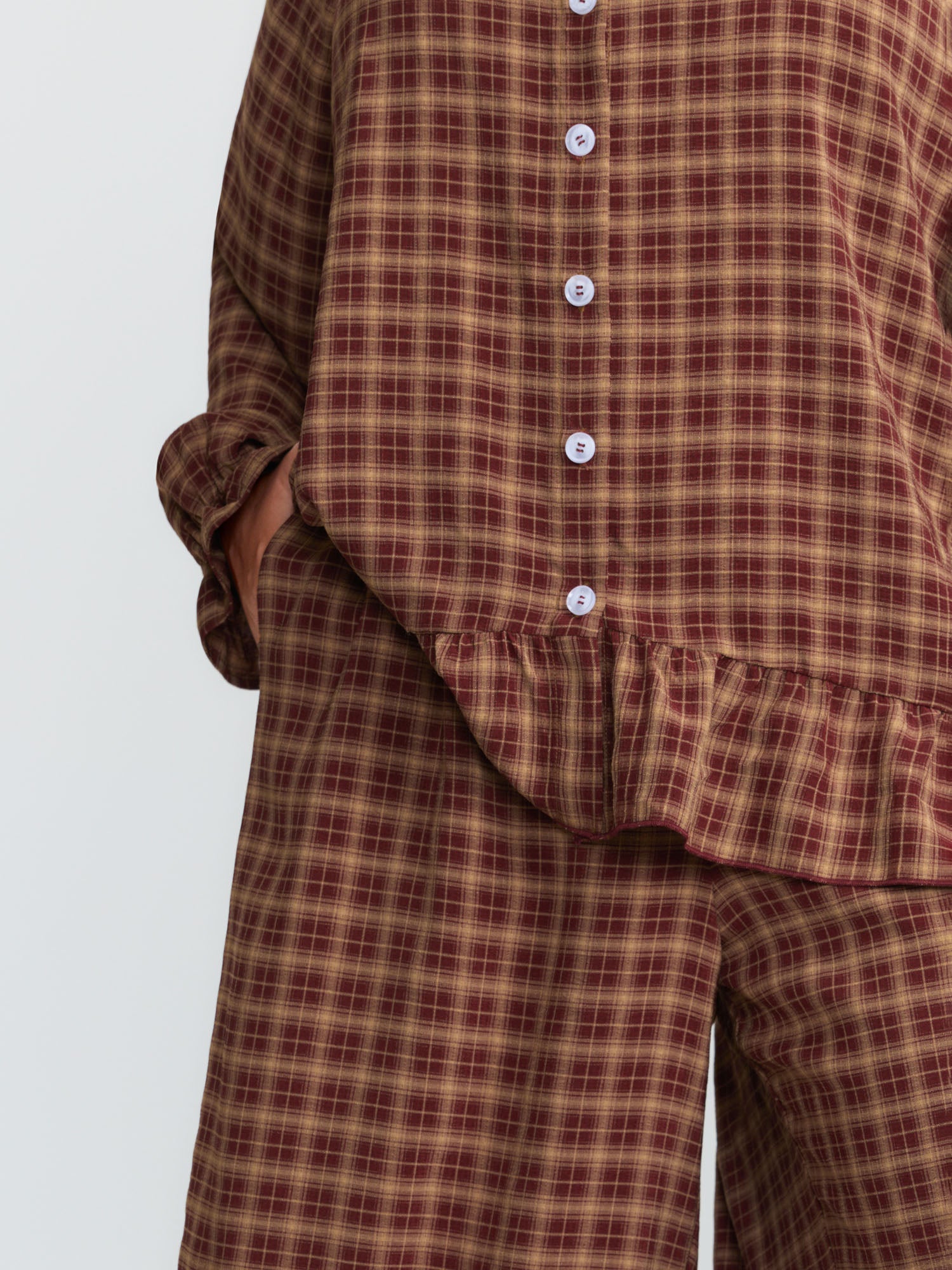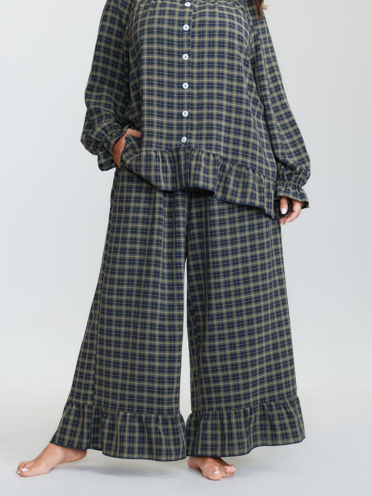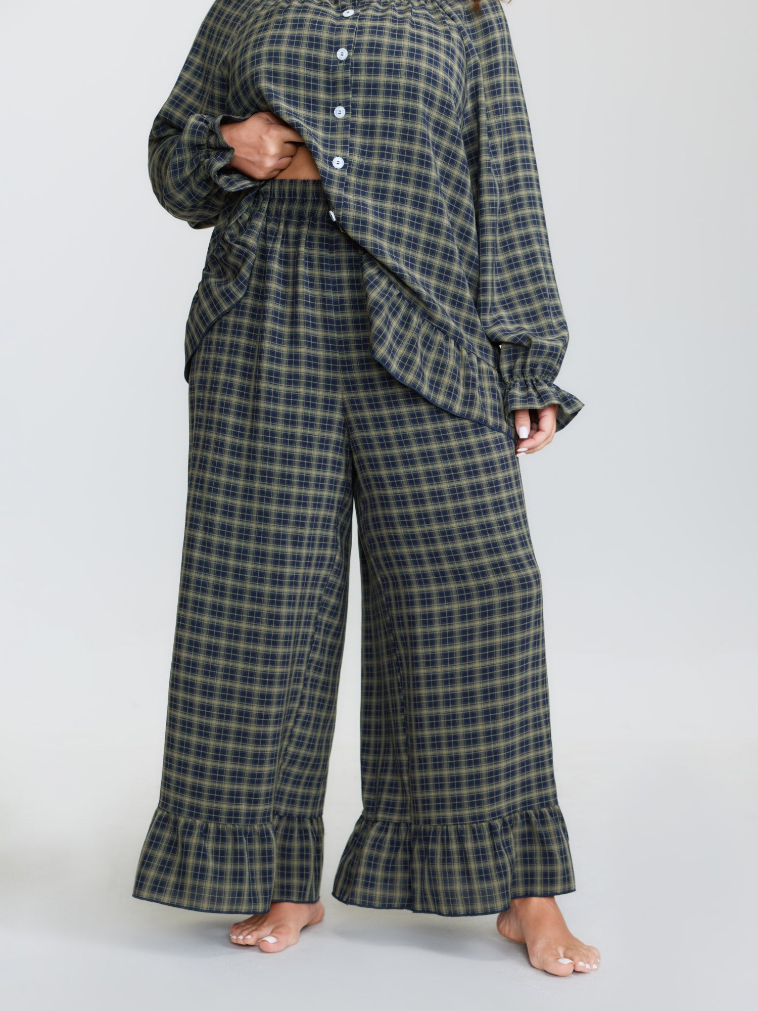 Gingham Ruffled Hem Loungewear Set