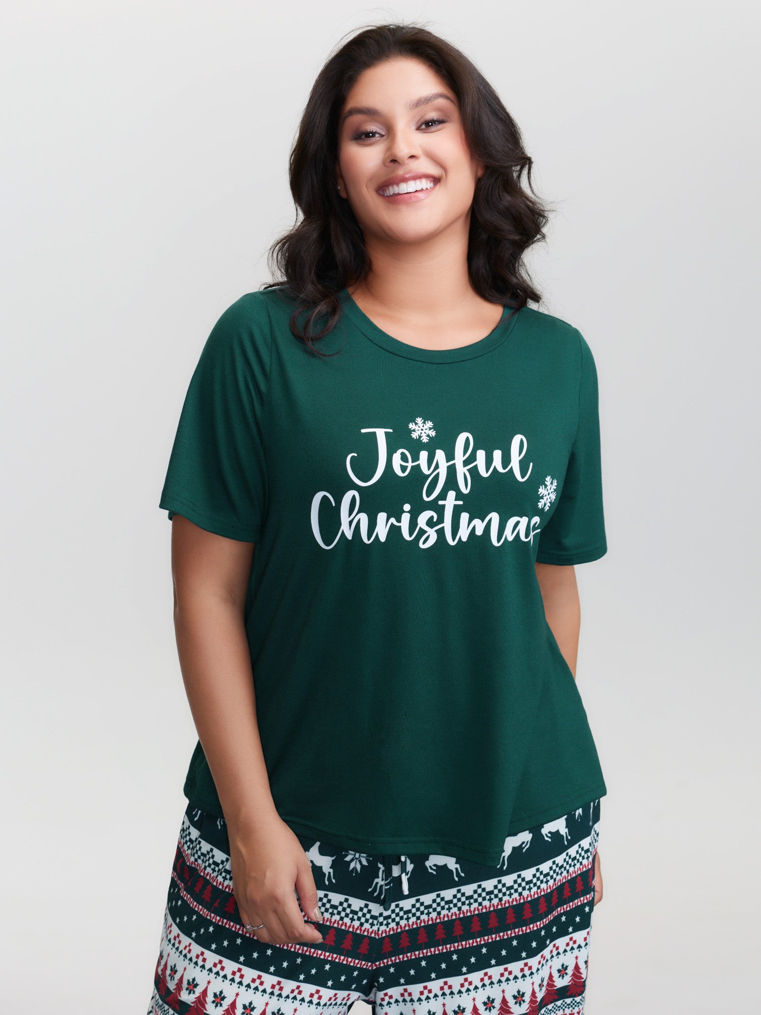 Shop Joyful Holidays Stretchy Loungewear Set now and redefine your style with confidence at BloomChic. Tailored for mid and plus-size women. This trendy Loungewear Women, sizes 10-30. Color:DarkGreen;Neckline:Round Neck;Sleeve Type:Regular Sleeve;Prints:Letter;Pocket:Side seam pocket;Belt:No-belt;Closure Type:Non