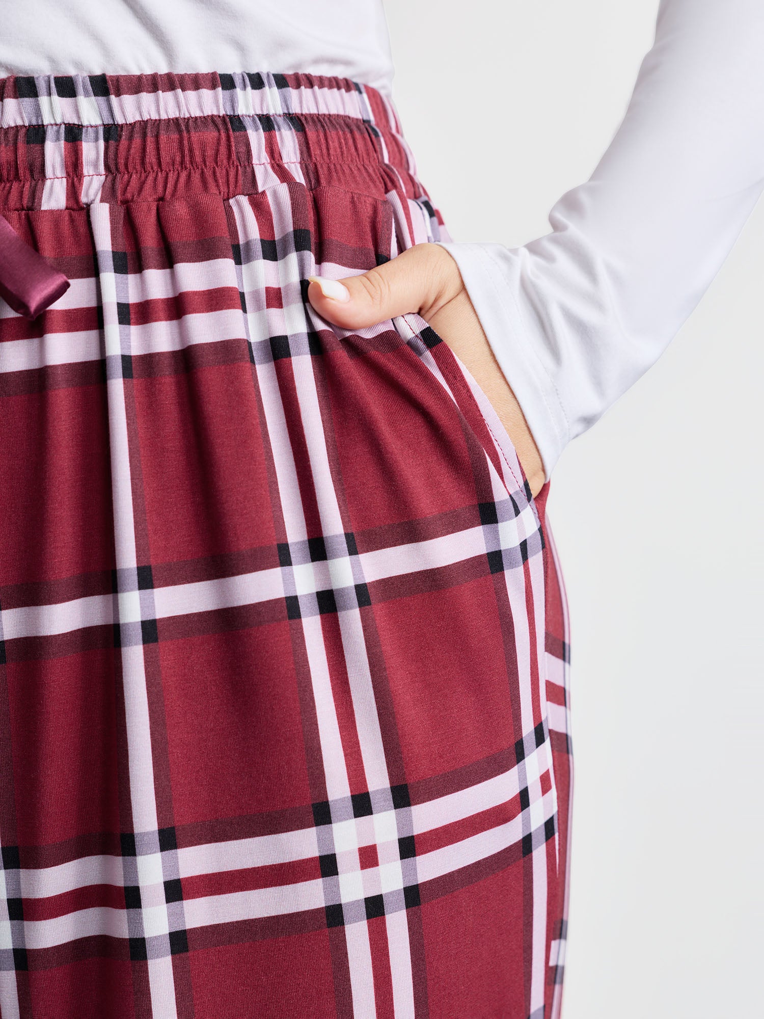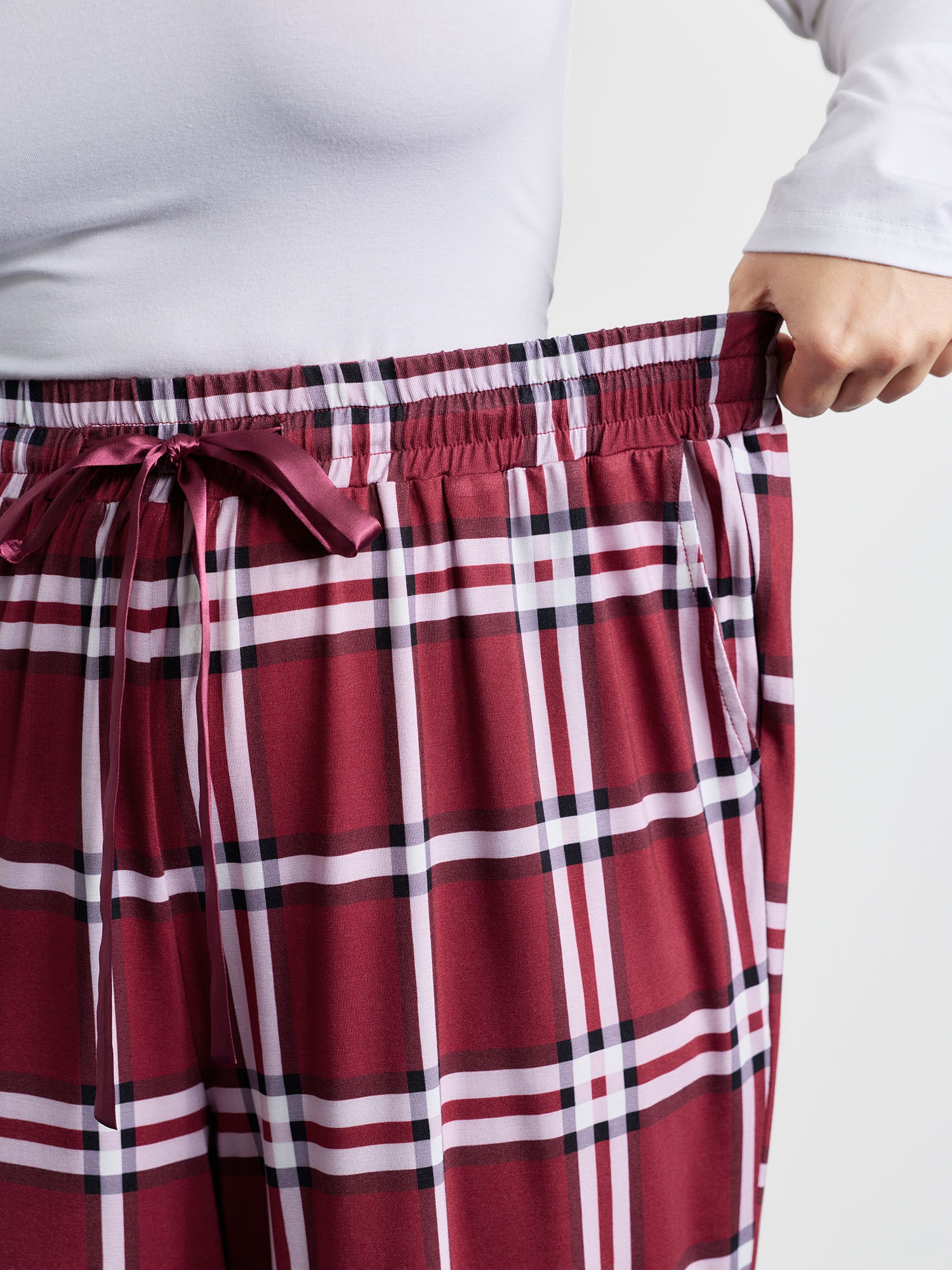 Shop Plaid Drawstring Wide Waistband Lounge Bottoms now and redefine your style with confidence at BloomChic. Tailored for mid and plus-size women. This trendy Loungewear Women, sizes 10-30. Color:Deepred;Style:Leisure;Neckline:Non;Sleeve Type:Sleeveless;Prints:Plaid;Details:Drawstring;Pocket:Slanted pocket;Belt:No-belt;Closure Type:Non