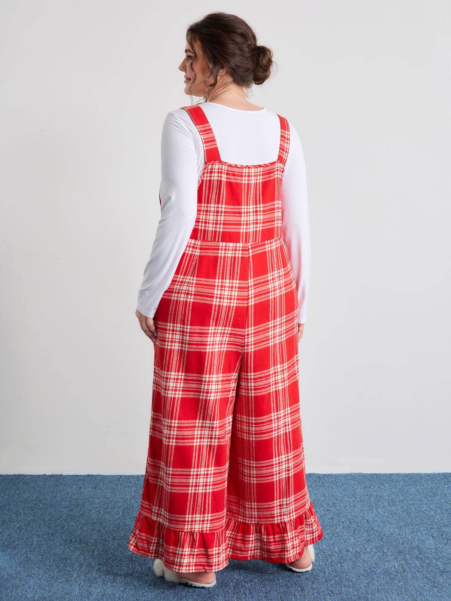 Shop Pure Cotton Adjustable Overall Strap Sleep Jumpsuit now and redefine your style with confidence at BloomChic. Tailored for mid and plus-size women. This trendy Loungewear Women, sizes 10-30. Color:Brightred;Neckline:Non;Sleeve Type:Sleeveless;Prints:Plaid;Details:Button, Ruffles;Pocket:Side seam pocket;Belt:No-belt;Closure Type:Non